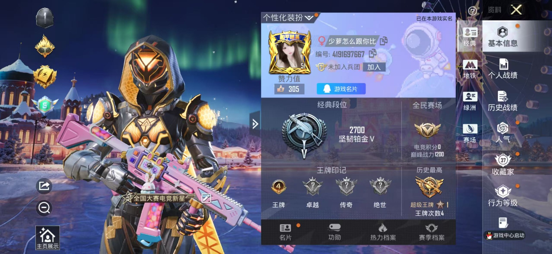 1粉装 2特效呛 4印记 可二次 可修改实名 【热门装扮】创世·救赎动感兔斯基胖达圆圆鹰眼刺客 【稀有呛皮】kar98k-巳巳如意m416电玩时刻 【五级特效呛】五级kar98k-巳巳如意五级m416-电玩时刻 【紫色装扮】ss30特训套装ss31特训套装探宝勇士极速红龙橘黑制服