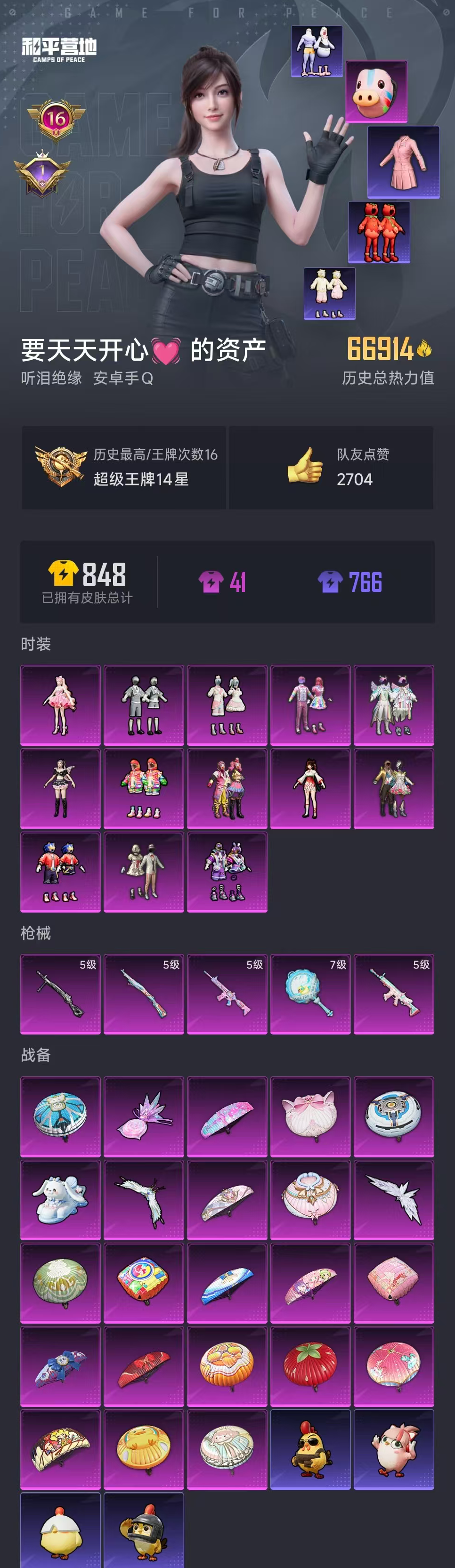 【和平精英】【lyhp19490】地铁满天赋 6.6w热力值高印记精品女号 13粉装5特效呛 老101 小番茄 糯粉咩咩 猪妹 樱桃泡泡 蝶舞迷情 冷鸢歌者 满级平底锅 13粉装,5特效呛,0载具,历史最高段位:超级王牌14星 王牌印记16次 热力值:66914,172套装,213呛械,284装备,151战备;套装:套装-宝贝奶油派,套装-天使彩虹糖,套装-蝶舞迷情,套装-缤纷油彩,套装-山涧鹿灵,套装-闪耀律动,套装-岚岚物语,套装-音爆索尼克,角色-小可学妹,角色-白兰星,套装-炫光之旅,套装-蜜语绒猫,角色-樱桃泡泡,套装-特训学院,套装-红色运动,套装-黄色伏地魔,套装-白色伏地魔,套装-黑色伏地魔,套装-竞技名士,套装-酒红色名流,套装-湖蓝色名流,套装-黄色名流,套装-猛禽,套装-长空猛禽,套装-海岛探路者,套装-旭日情侣,套装-六六大吉,套装-冷焰舞者,套装-灼焰舞者,套装-特战装甲,套装-战地督导,套装-完美偶像,套装-人气偶像,套装-幻影武者,套装-街头潮人,套装-蓝彩潮人,套装-魅力单车,套装-绮丽涂鸦,套装-耀眼新星,套装-坚韧舞者,套装-竞技达人朋克,套装-野性战心,套装-破晓战魂,套装-都市魅力,套装-荣耀,套装-热血青春,套装-火箭少女101,套装-酷潮明星,套装-幻世战舞者,套装-血色贵族,套装-青涩时光,套装-缤纷果语,套装-滨海厨神,套装-龙魂突击队,套装-极速红龙,套装-格斗先锋,套装-麻辣教官,套装-初雨海棠,套装-金环蜂王,套装-粉红小猪,套装-破蛋小黄鸡,套装-蔷薇魔法师,套装-霓虹街区,套装-纯白誓言,套装-白熊同盟,套装-夏日音浪,套装-探宝勇士,套装-牛气满满,套装-战术大师,套装-牛气冲天,套装-耀粉歌者,套装-飞行日记,套装-热情海星,套装-纯真浪花,套装-吉莉礼服,套装-冰爽风暴,套装-ss19特训,套装-炫蓝之夏,套装-ss20特训,套装-猎梦纪元,套装-甜心亚梦,套装-虚音幻奏,套装-ss21特训,套装-萌趣咩咩,套装-娇憨猪猪,套装-红熊茄茄,套装-梦幻奶油,套装-樱桃黑巧,套装-玉兔迎春,套装-ss22特训,套装-和煦暖阳,套装-田园牧歌,套装-轻风白浪,套装-极光玫瑰,套装-星夜迷魅,套装-熠彩粉晶,套装-光之冒险,套装-绯格组合,套装-ss23特训,套装-香榭午后,套装-白兰地假日,套装-甜梦熊熊,套装-神气柴柴,套装-懵萌河马,套装-妙红点点,套装-幻彩翩翩,套装-糯粉咩咩,套装-王牌教练,套装-青玉碎影,套装-ss24特训,套装-皇家花园,套装-冥星暗影,套装-日照花林,套装-龟仙人,套装-涂山之恋,套装-ss25特训,套装-金戈铁马,套装-惊鸿侠骨,套装-锦衣飞扬,套装-绝对偶像,套装-香桃花海,套装-龙的传人,套装-冰河战士,套装-ss26特训,套装-快闪甜心,套装-春光漫游,套装-空岛之星,套装-贝斯之夜,玩偶服-超人强,套装-焰鹰斗篷,套装-幽夜迷踪,套装-幻羽潜行,套装-ss27特训,套装-恋语绒绒,套装-老实芭蕉,套装-ss28特训,角色-听雨铃兰,角色-银尘,套装-街头风暴,套装-海盐绵绵冰,套装-蝶变,套装-湖畔霞光,套装-小熊娃娃,套装-ss29特训,套装-雏菊兔兔,角色-狂花道·娜可露露,套装-萝兰蝴蝶,套装-异域银装,套装-星途旅人,套装-ss30特训,套装-青团波波,套装-糖糖葫芦,套装-小鸟芋圆,套装-绒宝小鹅,套装-ss31特训,角色-风玲,套装-ss33特训,套装-巳巳如意,套装-ss32特训,套装-顶瓜瓜,套装-大橘大利,套装-极速光影,套装-星渊小夜曲,套装-炫彩糖果,玩偶服-懒羊羊,套装-元气之梦,套装-ss34特训,套装-薄荷星砂,套装-ss35特训,套装-ss36特训,套装-雪国风尚,套装-萌鸡速递;呛皮:aug-天降萌叽,aug-异域银装,aug-冰晶雪宝,akm-涂鸦街区,akm-彩虹符号,akm-龙的传人,akm-霓彩脉冲,q-彩虹符号,q-洛神天依,q-纯真浪花,ac-val-甜心亚梦,ac-val-乌木金纹,ac-val-天降萌叽,ac-val-快闪甜心,5级scar-l-锦绣绵绵,scar-l-夜灯,scar-l-夏日绵绵冰,scar-l-彩虹符号,scar-l-玉兔迎春,scar-l-星途旅人,scar-l-海盐豹豹,m16a4-甜心亚梦,m16a4-幻世战舞者,m16a4-冰河战士,famas-霓彩脉冲,famas-乌木金纹,m762-绯红前夜,m762-暗夜鎏金,m762-天降萌叽,m762-雏菊兔兔,groza-林间仙鹿,groza-蓝莓炮弹,groza-甜蜜草莓,groza-田园牧歌,groza-懵萌河马,groza-海盐豹豹,蜜獾-娇憨猪猪,蜜獾-垂柳戏鸭,蜜獾-天降萌叽,蜜獾-精灵梦叶罗丽,蜜獾-糖糖葫芦,蜜獾-乌木金纹,5级m416-电玩时刻,m416-绯红前夜,m416-糯团青竹,g36c-懵萌河马,g36c-星穹咏叹调,mk47-乌木金纹,mk47-妙红点点,mk47-炫光之旅,awm-炙焰牛王,awm-焰鹰斗篷,awm-纯真浪花,5级kar98k-巳巳如意,kar98k-彩虹符号,kar98k-炫彩节奏,kar98k-洛神天依,kar98k-蓝莓炮弹,kar98k-星穹咏叹调,m24-乌木金纹,win94-夏日绵绵冰,win94-乌木金纹,amr-妙红点点,amr-白勺歌姬,amr-乌木金纹,莫辛纳甘-乌木金纹,莫辛纳甘-懵萌河马,svd-冷漠罗丽,m200-惊鸿侠骨,m200-乌木金纹,mk14-乌木金纹,mk14-冰河战士,mk14-阳光菠萝,mk14-紫晶流影,mini14-梦幻火箭,mini14-筑梦精灵,mini14-彩虹嘻嘻猴,mini14-涂山之恋,mini14-香桃花海,mini14-雏菊兔兔,mini14-鸡智如我,mk20-h-快闪甜心,mk20-h-糖糖葫芦,mk20-h-狂鲨锋刃,mk20-h-乌木金纹,slr-娇憨猪猪,slr-甜蜜草莓,slr-彩虹符号,slr-守护天翼,slr-霓彩脉冲,mk12-乌木金纹,vss-粉色回忆,vss-田园牧歌,vss-香桃花海,sks-未来歌姬,sks-夜幕颂歌,m417-惊鸿侠骨,m417-玩趣呆呆,mp5k-甜蜜誓约,mp5k-乌木金纹,汤姆逊-耀粉歌者,汤姆逊-炫彩节奏,汤姆逊-天降萌叽,汤姆逊-纯真浪花,uzi-娇憨猪猪,uzi-天降萌叽,uzi-冰河战士,uzi-啾咪啾咪,uzi-炫彩糖果,ump45-夜灯,ump45-生命誓言,ump45-粉色回忆,ump45-涂山之恋,ump45-猪猪侠,ump45-海盐豹豹,ump45-糖糖葫芦,p90-快闪甜心,p90-玩