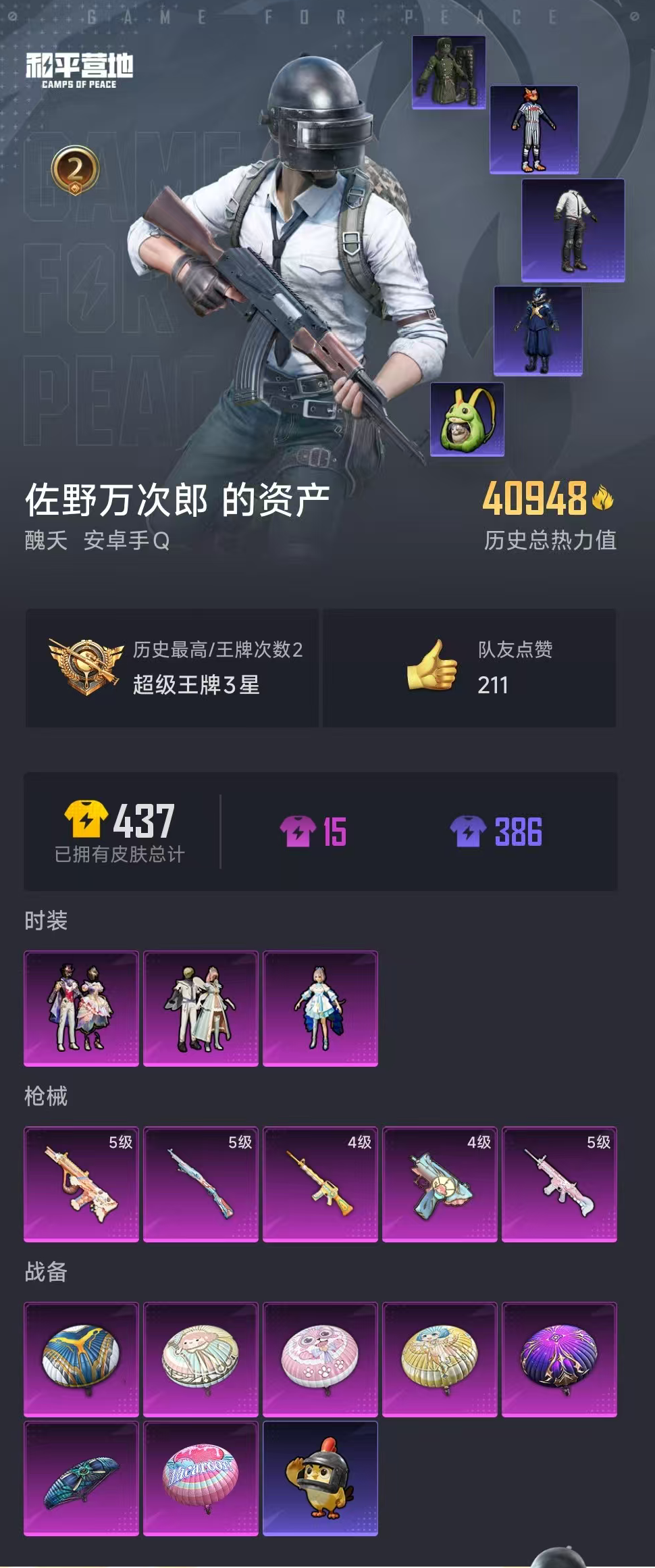【和平精英】【lyhp19506】地铁满天赋 3粉装5特效呛 洛天依 满级暖阳aug 5级甜梦小狐死噶 3粉装,5特效呛,0载具,历史最高段位:超级王牌3星 王牌印记2次 热力值:40948,88套装,129呛械,143装备,55战备;套装:角色-洛天依,套装-筑梦精灵,套装-星穹咏叹调,套装-特训学院,套装-猎鹰,套装-橘黑制服,套装-黄色运动,套装-黄色伏地魔,套装-白色伏地魔,套装-黑色伏地魔,套装-骑行爱好者,套装-竞技名士,套装-深蓝色名流,套装-黄色名流,套装-猛禽,套装-长空猛禽,套装-竞技勇士朋克,套装-蓝色守护者,套装-灼焰舞者,套装-特战装甲,套装-沙漠毒蛇,套装-幻影武者,套装-蓝彩潮人,套装-千禧之恋,套装-神秘领域,套装-怒火燎原,套装-魅力单车,套装-破晓战魂,套装-都市魅力,套装-雪山精英,套装-幻世战舞者,套装-冰川特警,套装-格斗先锋,套装-麻辣教官,套装-破蛋小黄鸡,套装-疯狂小兔子,套装-北国孤狼,套装-ss6特训,套装-萌黄之夏,套装-夏日音浪,套装-探宝勇士,套装-蓝甜马卡龙,套装-诡谋托雷基亚,套装-原初圣火,套装-逆风勇士,套装-战术大师,套装-ss12特训,套装-牛气冲天,套装-ss18特训,套装-银白舞王,套装-治愈之星,套装-科技之星,套装-ss14特训,套装-电音精灵,角色-赛罗奥特曼,套装-吉莉礼服,套装-ss17特训,套装-智慧隐士,套装-瑞龙福将,套装-团圆交子,套装-冰川谧蓝,套装-焰山流火,套装-灵符少年,套装-福星高照,套装-雪兔飞飞,套装-虎虎生威吉莉,角色-军刀雅典娜,套装-异彩先驱,套装-霓虹极客,套装-落日神探,套装-空投萌叽,套装-ss19特训,套装-沁蓝冰爽,套装-飞驰魅影,套装-音速流光,套装-ss20特训,套装-王牌投手,套装-奶芙汪汪,套装-甜心亚梦,套装-虚音幻奏,套装-ss21特训,套装-萌趣咩咩,套装-娇憨猪猪,套装-玉兔迎春,套装-ss22特训,套装-ss29特训,套装-ss31特训,套装-ss32特训;呛皮:5级aug-暖羊咩咩,aug-凝视深渊,aug-灵符少年,aug-流星咚咚,aug-乌木金纹,m762-镭射皇者,m762-瑞龙福将,m762-天降萌叽,m416-蓝色火焰,m416-红色方程式,m416-暗星紫秘,4级m16a4-垂柳戏鸭,m16a4-红色方程式,m16a4-甜心亚梦,m16a4-幻世战舞者,groza-马卡龙,groza-治愈之星,groza-异彩先驱,groza-恐龙拽拽,akm-灼热熔岩,akm-破晓战魂,akm-锦绣火鲤,akm-彩虹符号,akm-虎虎生威,akm-恐龙拽拽,akm-环太平洋,akm-筑梦精灵,akm-王牌投手,ac-val-甜心亚梦,ac-val-天降萌叽,q-原初圣火,q-彩虹符号,q-飞驰魅影,5级scar-l-甜梦小狐,scar-l-炫彩节奏,scar-l-暗夜玫瑰,scar-l-玉兔迎春,蜜獾-娇憨猪猪,蜜獾-垂柳戏鸭,蜜獾-乌木金纹,mk47-乌木金纹,g36c-乌木金纹,5级kar98k-巳巳如意,kar98k-梦幻火箭,kar98k-彩虹符号,kar98k-飞驰魅影,kar98k-乌木金纹,m24-奇异狩猎者,m24-治愈之星,m24-炫彩节奏,m24-乌木金纹,awm-恐龙拽拽,awm-炙焰牛王,awm-乌木金纹,莫辛纳甘-炙焰牛王,m200-乌木金纹,win94-瑞龙福将,slr-娇憨猪猪,mk14-童趣迷兔,mk14-治愈之星,mk14-暗星紫秘,mk14-乌木金纹,sks-夜灯,vss-镭射皇者,vss-碧影闪光,mini14-梦幻火箭,mini14-原初圣火,mini14-异彩先驱,mini14-筑梦精灵,mini14-香桃花海,4级uzi-筑梦精灵,uzi-红色方程式,uzi-炫彩节奏,uzi-娇憨猪猪,汤姆逊-耀粉歌者,汤姆逊-异彩先驱,汤姆逊-环太平洋,汤姆逊-甜梦小狐,汤姆逊-乌木金纹,p90-飞驰魅影,p90-筑梦精灵,p90-玩趣呆呆,p90-巳巳如意,p90-乌木金纹,ump45-夜灯,ump45-蓝色火焰,ump45-生命誓言,ump45-灵符少年,野牛-夜灯,野牛-乌木金纹,vect-生命誓言,vect-治愈之星,vect-乌木金纹,mp5k-异彩先驱,s1897-潮汐统领,s1897-镭射皇者,s1897-炫彩节奏,s1897-碧影闪光,s1897-飞驰魅影,s12k-破晓战魂,s12k-瑞龙福将,s12k-娇憨猪猪,s12k-垂柳戏鸭,s12k-玩趣呆呆,dbs-暗星紫秘,dbs-甜心亚梦,dbs-乌木金纹,s686-红色方程式,spas-12-乌木金纹,m249-镭射皇者,m249-乌木金纹,dp-28-原初圣火,dp-28-甜心亚梦,mg3-瑞龙福将,mg3-甜梦小狐,mg3-幻世战舞者,mg3-乌木金纹,p18c-原初圣火,平底锅-原初圣火,平底锅-镭射皇者,平底锅-治愈之星,平底锅-瑞龙福将,平底锅-风花雪月,平底锅-异彩先驱,平底锅-飞驰魅影,平底锅-甜心亚梦,平底锅-娇憨猪猪,撬棍-环太平洋,破片手留单-圣诞大吉;降落伞:粉色滑翔尾迹; 详情看图