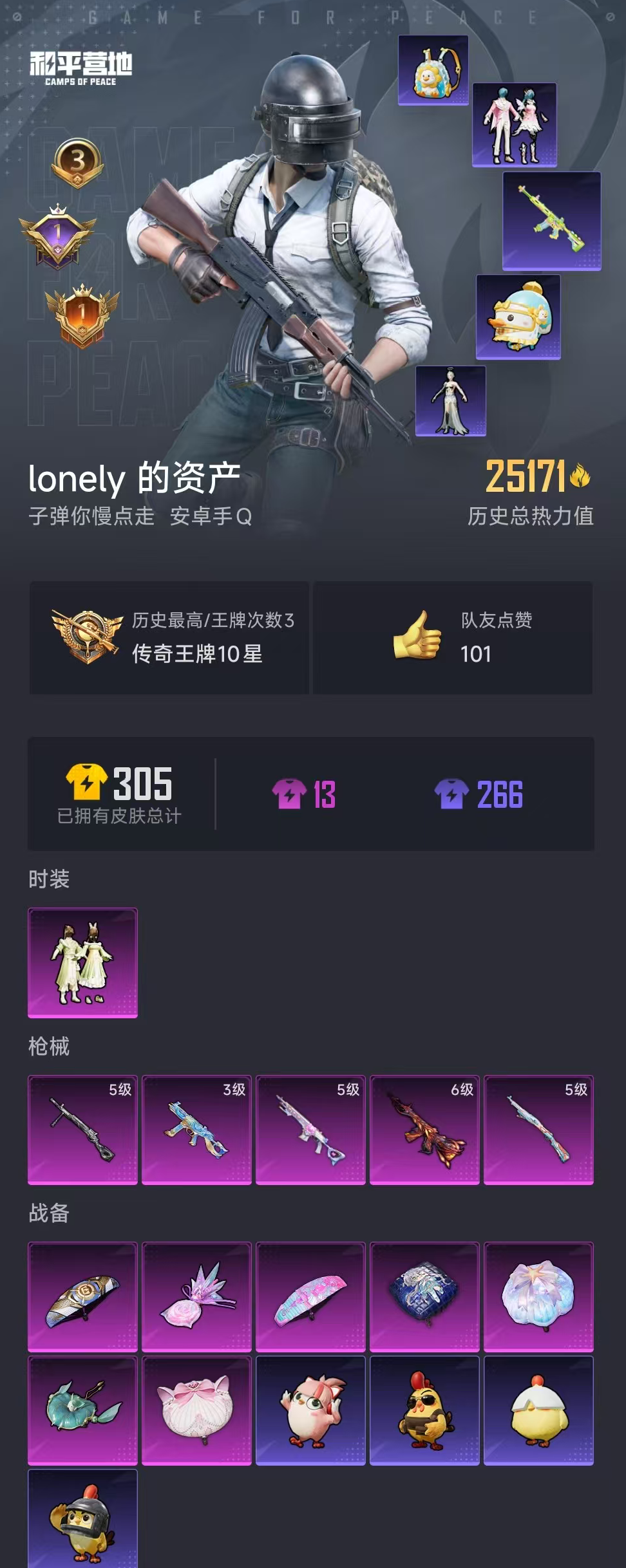 【和平精英】【lyhp19569】地铁满天赋 1粉装5特效呛 3级宁雨蝶ump 6级风花雪月m4 满级妹控 1粉装,5特效呛,0载具,历史最高段位:传奇王牌10星 王牌印记3次 热力值:25171,50套装,88呛械,99装备,50战备;套装:套装-闲梦青缨,套装-红色运动,套装-竞技名士,套装-海岛探路者,套装-沙漠毒蛇,套装-魅力单车,套装-森林游猎者,套装-极地朋克,套装-缤纷果语,套装-冰川特警,套装-战术大师,套装-玉兔迎春,套装-青玉碎影,套装-锦衣飞扬,套装-漫游都市,套装-恋语绒绒,套装-街头风暴,角色-无面战甲,套装-异域银装,套装-星途旅人,套装-ss30特训,套装-青团波波,套装-糖糖葫芦,套装-ss31特训,套装-鱼渊荷华,套装-燕燕于飞,套装-智谋强哥,角色-海琴烟,套装-紫幽梦,套装-粉恋花,套装-ss33特训,套装-云朵鹅,套装-巳巳如意,套装-ss32特训,套装-彩虹兔,套装-蓝冰羽,套装-顶瓜瓜,套装-雪绒豹,套装-大橘大利,套装-星渊小夜曲,套装-炫彩糖果,套装-蓝海鲸歌,套装-元气之梦,套装-ss34特训,套装-擎苍青焰,套装-朱霞炽焰,套装-凌霄紫焰,套装-薄荷星砂,套装-ss35特训,套装-ss36特训;呛皮:蜜獾-糖糖葫芦,蜜獾-鸡智如我,蜜獾-乌木金纹,akm-涂鸦街区,akm-江南烟雨,scar-l-夜灯,scar-l-炫彩节奏,scar-l-玉兔迎春,scar-l-星途旅人,famas-乌木金纹,6级m416-风花雪月,m416-红色方程式,m416-萌萌史莱姆,aug-异域银装,m762-彩虹符号,m762-第五大道,m762-天降萌叽,m762-云朵鹅,arx-凌霄紫焰,groza-无面战甲,g36c-星穹咏叹调,m16a4-千金淑猫,win94-乌木金纹,m200-乌木金纹,5级kar98k-巳巳如意,kar98k-顶峰精英,awm-天降萌叽,svd-云朵鹅,mk20-h-糖糖葫芦,mk20-h-乌木金纹,5级mk14-甜梦熊击,mk14-治愈之星,mk14-紫幽梦,mk14-薄荷星砂,mini14-香桃花海,mini14-鸡智如我,mk12-乌木金纹,sks-炫彩节奏,vss-香桃花海,汤姆逊-天降萌叽,aks-74u-鸡智如我,aks-74u-乌木金纹,js9-凌霄紫焰,uzi-啾咪啾咪,uzi-炫彩糖果,p90-巳巳如意,vect-燕燕于飞,3级ump45-宁雨蝶,ump45-夜灯,ump45-生命誓言,ump45-海盐豹豹,ump45-糖糖葫芦,野牛-燕燕于飞,spas-12-燕燕于飞,spas-12-狂鲨锋刃,spas-12-云朵鹅,spas-12-乌木金纹,s1897-紫幽梦,s1897-糯团青竹,s12k-霓彩脉冲,s686-彩虹符号,s686-千金淑猫,s686-巳巳如意,pkm-啾咪啾咪,pkm-紫幽梦,mg3-蓝晶绮麟,mg-36-凌霄紫焰,m249-无面战甲,5级dp-28-豹影疾电,dp-28-彩虹符号,蝎式手呛-燕燕于飞,p92-紫幽梦,p92-凌霄紫焰,p18c-糖糖葫芦,p1911-无面战甲,沙墨之鹦-云朵鹅,平底锅-糖糖葫芦,平底锅-紫幽梦,平底锅-凌霄紫焰,大砍刀-云朵鹅,盐雾蛋-冰氧夏日,破片手留单-星途旅人,破片手留单-海盐豹豹,破片手留单-巳巳如意,破片手留单-爆破雪人,十子怒-燕燕于飞,十子怒-异域银装,铝热弹-炫彩糖果;降落伞:桃源时光飞行器,炫彩糖果飞行器,异域银装飞行器,破刃行动尾迹; 详情看图