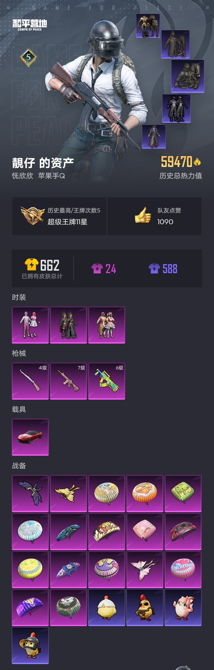 【和平精英】【lyhp19518】3粉装3特效呛1载具 天使彩虹糖 黑色刀锋 金羽特工 7级m4心之恋语 3粉装,3特效呛,1载具,历史最高段位:超级王牌11星 王牌印记5次 热力值:59470,166套装,180呛械,179装备,111战备;套装:套装-天使彩虹糖,套装-深渊皇后,套装-草莓生巧,套装-特训学院,套装-猎鹰,套装-青年教官,套装-橘黑制服,套装-红色运动,套装-黄色运动,套装-蓝色运动,套装-黄色伏地魔,套装-白色伏地魔,套装-黑色伏地魔,套装-骑行爱好者,套装-竞技名士,套装-深蓝色名流,套装-酒红色名流,套装-湖蓝色名流,套装-黄色名流,套装-猛禽,套装-长空猛禽,套装-漫步者,套装-竞技勇士朋克,套装-黎明保卫者,套装-蓝色守护者,套装-破晓情侣,套装-六六大吉,套装-冷焰舞者,套装-灼焰舞者,套装-特战装甲,套装-战地菁英,套装-贵族骑装,套装-战地督导,套装-青春校园,套装-灰色格斗者,套装-迎春赐吉,套装-5.56爱好者,套装-滨海假日,套装-完美偶像,套装-人气偶像,套装-特战英豪,套装-蓝彩潮人,套装-千禧之恋,套装-神秘领域,套装-怒火燎原,套装-魅力单车,套装-绮丽涂鸦,套装-耀眼新星,套装-竞技达人朋克,套装-朋克治安官,套装-野性战心,套装-野性战魂,套装-金羽特工,套装-都市魅力,套装-丛林猎人,套装-派对绅士,套装-酷潮明星,套装-传奇侦探,套装-极地朋克,套装-幻世战舞者,套装-甜蜜菠萝,套装-半糖蓝莓,套装-奇异狩猎者,套装-金耀舞者,套装-弄潮海豚,套装-缤纷果语,套装-风暴特警,套装-冰川特警,套装-格斗先锋,套装-海上生明月,套装-麻辣教官,套装-梦魇先生,套装-粉红小猪,套装-疯狂小兔子,套装-舞夜骑士,套装-北国孤狼,套装-ss6特训,套装-拳皇97八神庵,套装-炽焰拳师,套装-格斗专家,套装-星光纪元,套装-奇迹天团,套装-云纹魔法士,套装-威严将相,套装-跃动心情,套装-ss7特训,套装-黑色刀锋,套装-核芯基因,套装-精神漫游,套装-银河圣歌,套装-闪耀星光,套装-霓虹街区,套装-纯白誓言,套装-激萌罗小黑,套装-ss10特训,套装-ss8特训,套装-萌黄之夏,套装-动感兔斯基人偶服,套装-夏日音浪,套装-风华少年志,套装-探宝勇士,套装-本愿之火,套装-辉星之火,套装-牛气满满,套装-白糯汤圆,套装-梦之呓语,套装-ss11特训,套装-青春冒险家,套装-潮流游乐家,套装-白虎圣者,套装-原初圣火,套装-逆风勇士,套装-静谧青瓷,套装-萌趣颜团子,套装-特种颜团子,套装-战术大师,套装-ss12特训,套装-ss18特训,套装-镭射皇者,套装-银白舞王,套装-治愈之星,套装-科技之星,套装-飞行日记,套装-ss13特训,套装-冰爽海盐,套装-浪漫樱花,套装-ss14特训,套装-星梦畅游,套装-鹤发童颜,套装-ss15特训,套装-ss16特训,套装-暴风机械师,套装-时空追击者,套装-暗夜魅影,套装-暗夜傀儡,套装-ss17特训,套装-瑞龙福将,套装-团圆交子,套装-福星高照,套装-虎虎生威吉莉,套装-异彩先驱,套装-霓虹极客,套装-空投萌叽,套装-ss19特训,套装-浓情蜜辣,套装-飞驰魅影,套装-音速流光,套装-炫蓝之夏,套装-ss20特训,套装-猎梦纪元,套装-甜心亚梦,套装-虚音幻奏,套装-ss21特训,套装-萌趣咩咩,套装-娇憨猪猪,套装-玉兔迎春,套装-ss22特训,套装-青玉碎影,套装-ss26特训,套装-空岛之星,套装-ss27特训,套装-ss28特训,套装-ss30特训,套装-ss31特训,套装-智谋强哥,套装-ss32特训;呛皮:scar-l-红色方程式,scar-l-黄金龙骨,scar-l-炫彩节奏,scar-l-暗夜玫瑰,scar-l-玉兔迎春,scar-l-海盐豹豹,scar-l-乌木金纹,aug-魔法学院,aug-青春冒险家,aug-怪笑疯兔,aug-天降萌叽,aug-异域银装,7级m416-心之恋语,m416-绯红前夜,m416-仓鼠灰灰,m416-滑板小狐,m416-糯团青竹,m416-乌木金纹,m762-绯红前夜,m762-奇异狩猎者,m762-诡娃娃,m762-甜心宝贝,m762-拳皇97,m762-牛气冲天,m762-镭射皇者,m762-瑞龙福将,m762-天降萌叽,m762-乌木金纹,m16a4-红色方程式,m16a4-凝视深渊,m16a4-夜灯,m16a4-甜心亚梦,m16a4-幻世战舞者,ac-val-甜心亚梦,ac-val-天降萌叽,akm-灼热熔岩,akm-生命誓言,akm-冰凉西瓜,akm-霓虹街区,akm-夜灯,akm-锦绣火鲤,akm-彩虹符号,akm-萌趣颜团子,akm-虎虎生威,蜜獾-娇憨猪猪,q-诡娃娃,q-原初圣火,q-彩虹符号,q-飞驰魅影,6级groza-香水柠檬,groza-黑色刀锋,groza-治愈之星,groza-彩虹符号,groza-异彩先驱,groza-乌木金纹,mk47-青春冒险家,mk47-乌木金纹,g36c-不夜海上花,g36c-时空追击者,g36c-暗夜玫瑰,g36c-乌木金纹,win94-瑞龙福将,4级kar98k-巳巳如意,kar98k-影袭,kar98k-古堡领主,kar98k-梦幻火箭,kar98k-彩虹符号,kar98k-飞驰魅影,kar98k-乌木金纹,m24-众神之王,m24-治愈之星,m24-香水柠檬,m24-炫彩节奏,m24-乌木金纹,awm-不夜海上花,awm-乌木金纹,amr-乌木金纹,m200-乌木金纹,vss-华贵君王,vss-黑色刀锋,vss-镭射皇者,vss-乌木金纹,mini14-原初圣火,mini14-炫彩节奏,mini14-海渊国主,mini14-异彩先驱,mini14-乌木金纹,sks-心之恋语,sks-时空追击者,sks-乌木金纹,qbu-不夜海上花,qbu-青春冒险家,qbu-烈焰拳霸,mk14-治愈之星,mk14-乌木金纹,slr-众神之王,slr-娇憨猪猪,vect-黑色刀锋,vect-彩虹符号,vect-治愈之星,vect-香水柠檬,vect-暗夜玫瑰,vect-乌木金纹,mp5k-异彩先驱,ump45-夜灯,ump45-生命誓言,ump45-天启纪元,ump45-时空追击者,ump45-猪猪侠,ump45-乌木金纹,uzi-逆行者qq,uzi-活力四射vivo,uzi-炫彩节奏,uzi-娇憨猪猪,uzi-乌木金纹,汤姆逊-诡面斩,汤姆逊-异彩先驱,汤姆逊-乌木金纹,p90-飞驰魅影,p90-乌木金纹,野牛-青春冒险家,野牛-乌木金纹,s686-奇异狩猎者,s686-生命誓言,s686-魔法学院,s686-不夜海上花,s686-乌木金纹,spas-12-乌木金纹,