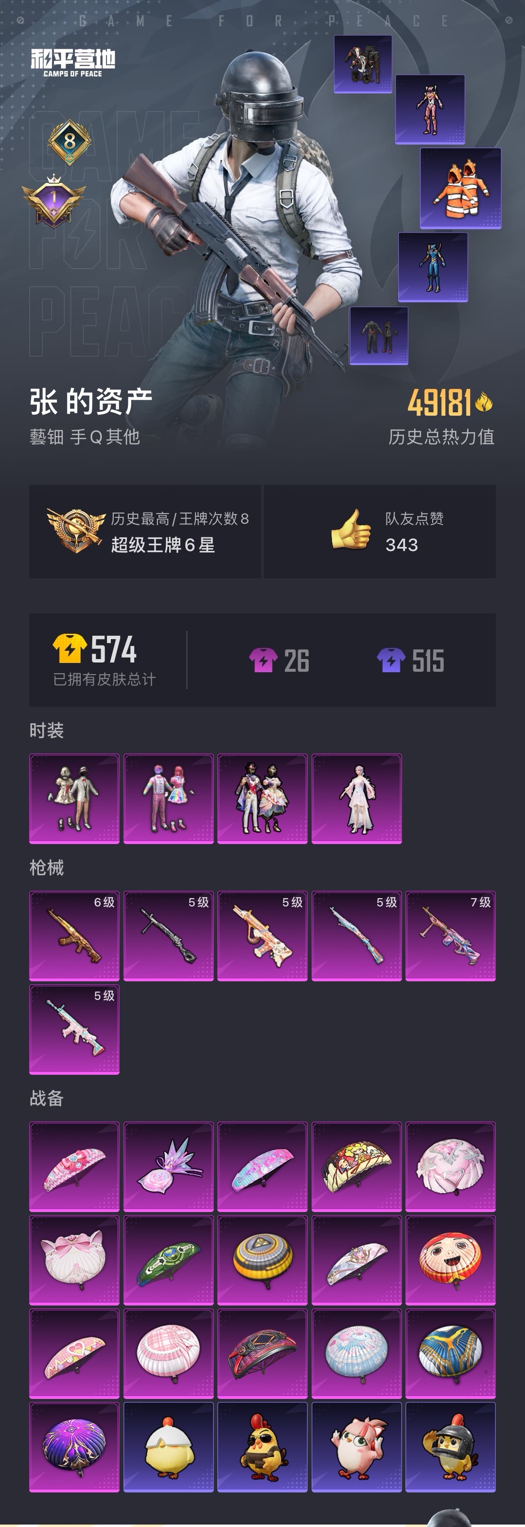 【和平精英】【lyhp19515】4粉装6特效呛 粉螳螂 蓝螳螂 天使彩虹糖 宝贝奶油派 6级ak甜心宝贝 4粉装,6特效呛,0载具,历史最高段位:超级王牌6星 王牌印记8次 热力值:49181,120套装,175呛械,174装备,89战备;套装:套装-宝贝奶油派,套装-天使彩虹糖,角色-烟云彩露,套装-星穹咏叹调,套装-特训学院,套装-黑色伏地魔,套装-骑行爱好者,套装-竞技名士,套装-长空猛禽,套装-蓝色守护者,套装-海岛探路者,套装-刚毅裁决者,套装-甜蜜告白,套装-滨海假日,套装-街头潮人,套装-蓝彩潮人,套装-怒火燎原,套装-魅力单车,套装-耀眼新星,套装-都市漫游者,套装-热血青春,套装-幻世战舞者,套装-蓝调潮人,套装-呆萌铁蟹,套装-缤纷果语,套装-龙魂突击队,套装-风暴特警,套装-冰川特警,套装-元素星魂,套装-海上生明月,套装-麻辣教官,套装-小丑鱼,套装-黑夜传说,套装-粉红小猪,套装-破蛋小黄鸡,套装-霓虹街区,套装-白熊同盟,套装-萌黄之夏,套装-夏日音浪,套装-探宝勇士,套装-牛气满满,套装-白糯汤圆,套装-战术大师,套装-牛气冲天,套装-ss18特训,套装-耀粉歌者,套装-飞行日记,套装-ss14特训,套装-吉莉礼服,套装-ss15特训,套装-ss16特训,套装-ss17特训,套装-瑞龙福将,套装-团圆交子,套装-冰川谧蓝,套装-福星高照,套装-虎虎生威吉莉,角色-军刀雅典娜,套装-异彩先驱,套装-霓虹极客,套装-ss19特训,套装-飞驰魅影,套装-音速流光,套装-ss20特训,套装-甜心亚梦,套装-虚音幻奏,套装-ss21特训,套装-萌趣咩咩,套装-娇憨猪猪,套装-玉兔迎春,套装-ss22特训,套装-光之冒险,套装-ss23特训,套装-莱茵河畔,套装-王牌教练,套装-柠萌假日,套装-ss24特训,套装-龟仙人,套装-涂山之恋,套装-ss25特训,套装-香桃花海,角色-2p战斗服款,套装-龙的传人,套装-冰河战士,套装-ss26特训,套装-空岛之星,套装-无暇誓言,套装-云魄琉璃,套装-ss27特训,套装-恋语绒绒,套装-ss28特训,角色-蝶吟花词,玩偶服-卖崽青蛙,角色-多纳泰罗,角色-8号机,角色-mark.06,套装-海盐绵绵冰,套装-ss29特训,角色-狂花道·娜可露露,角色-都市丽猫,套装-星途旅人,套装-旋风灵鼠,套装-ss30特训,套装-青团波波,套装-糖糖葫芦,套装-小鸟芋圆,套装-ss31特训,套装-鱼渊荷华,套装-燕燕于飞,套装-ss33特训,套装-巳巳如意,套装-ss32特训,套装-大橘大利,套装-炫彩糖果,套装-星影赞美诗,套装-ss34特训,套装-薄荷星砂,套装-ss35特训,套装-ss36特训,套装-萌鸡速递;呛皮:g36c-暗夜玫瑰,g36c-星穹咏叹调,g36c-乌木金纹,m16a4-红色方程式,m16a4-甜心亚梦,m16a4-幻世战舞者,m16a4-冰河战士,6级akm-甜心宝贝,akm-影袭,akm-破晓战魂,akm-夜灯,akm-虎虎生威,akm-龙的传人,akm-荧星灵猫,akm-霓彩节奏,akm-霓彩脉冲,m762-绯红前夜,m762-甜心宝贝,m762-瑞龙福将,m762-彩虹符号,m762-萌物绒绒,5级scar-l-锦绣绵绵,scar-l-红色方程式,scar-l-黄金龙骨,scar-l-玉兔迎春,scar-l-星途旅人,scar-l-海盐豹豹,蜜獾-娇憨猪猪,蜜獾-天降萌叽,蜜獾-糖糖葫芦,蜜獾-乌木金纹,m416-蓝色火焰,m416-绯红前夜,m416-红色方程式,m416-暗夜行者,m416-萌萌史莱姆,5级aug-暖羊咩咩,aug-甜蜜菠萝,aug-耀粉歌者,aug-天降萌叽,aug-紫晶流影,groza-异彩先驱,groza-恐龙拽拽,groza-2b战斗服款,groza-海盐豹豹,q-彩虹符号,q-飞驰魅影,mk47-乌木金纹,ac-val-甜心亚梦,ac-val-乌木金纹,famas-霓彩脉冲,famas-乌木金纹,awm-炙焰牛王,awm-圣堂之誓,m24-乌木金纹,5级kar98k-巳巳如意,kar98k-红色方程式,kar98k-彩虹符号,kar98k-飞驰魅影,kar98k-顶峰精英,kar98k-乌木金纹,m200-六号稻草人,m200-乌木金纹,莫辛纳甘-乌木金纹,amr-鬼刀,amr-乌木金纹,win94-瑞龙福将,win94-乌木金纹,svd-霓彩脉冲,vss-星之彼岸,vss-彩虹符号,vss-香桃花海,mk14-乌木金纹,mk14-冰河战士,mk20-h-墨染幽兰,mk20-h-星途旅人,mk20-h-糖糖葫芦,mk20-h-乌木金纹,mini14-炫彩节奏,mini14-异彩先驱,mini14-香桃花海,slr-娇憨猪猪,slr-霓彩脉冲,sks-迅猛狂鲨,uzi-红色方程式,uzi-炫彩节奏,uzi-娇憨猪猪,uzi-天降萌叽,uzi-冰河战士,uzi-啾咪啾咪,uzi-炫彩糖果,aks-74u-鬼刀,aks-74u-乌木金纹,汤姆逊-炫彩节奏,汤姆逊-异彩先驱,汤姆逊-环太平洋,ump45-夜灯,ump45-蓝色火焰,ump45-生命誓言,ump45-海盐豹豹,ump45-糖糖葫芦,ump45-极意拳锋,vect-彩虹符号,vect-燕燕于飞,p90-飞驰魅影,p90-玩趣呆呆,p90-巳巳如意,p90-乌木金纹,mp5k-异彩先驱,mp5k-乌木金纹,野牛-燕燕于飞,野牛-乌木金纹,s686-橘柚倾心,s686-千金淑猫,s686-巳巳如意,s1897-炫彩节奏,s1897-飞驰魅影,s1897-精灵梦叶罗丽,s1897-糯团青竹,s1897-乌木金纹,spas-12-燕燕于飞,spas-12-乌木金纹,aa12-g-炫光之旅,s12k-破晓战魂,s12k-童趣迷兔,s12k-瑞龙福将,s12k-娇憨猪猪,s12k-幻世战舞者,s12k-是爱神辣,s12k-霓彩脉冲,dbs-甜心亚梦,dbs-彩虹甜喵,dbs-彩虹符号,dbs-圣堂之誓,dbs-乌木金纹,7级pkm-守护天翼,pkm-啾咪啾咪,m249-破晓战魂,m249-无面战甲,m249-萌萌史莱姆,m249-乌木金纹,mg3-瑞龙福将,mg3-乌木金纹,5级dp-28-豹影疾电,dp-28-甜心宝贝,dp-28-彩虹符号,dp-28-甜心亚梦,蝎式手呛-千金淑猫,蝎式手呛-燕燕于飞,p18c-百万伏特,p18c-糖糖葫芦,tmp-9-霓彩节奏,平底锅-绯红前夜,平底锅-瑞龙福将,平底锅-异彩先驱,平底锅-飞驰魅影,平底锅-甜心亚梦,平底锅-娇憨猪猪,平底锅-光之冒险,平底锅-空岛之星,平底锅-精灵梦叶罗丽,平底锅-糖糖葫芦,平底锅-属我最6,撬棍-甜心宝贝,撬棍-绯红前夜,撬棍-幻世战舞者,撬棍-突变脉冲,破片手留单-呆爆全场,破片手留单-星途旅人,破片手留单-海盐豹豹,破片手留单-拽到爆炸,破片手