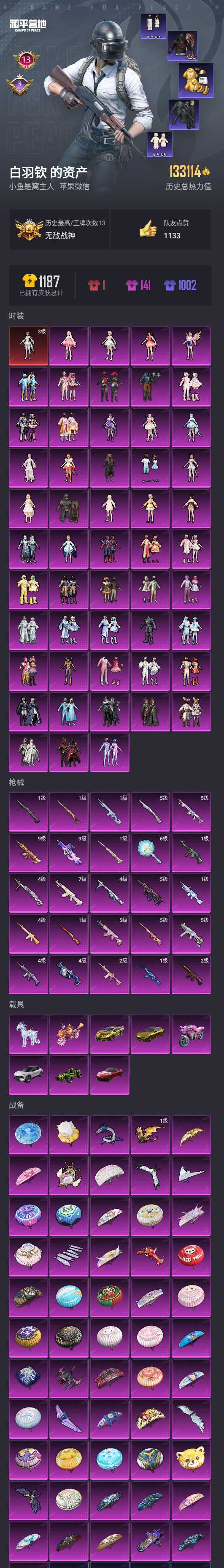 【和平精英】【lyhp19581】无敌战神 精品素材号 地铁满天赋 1红52粉25特效呛8载 3级欧若拉 怪诞小丑 雪国幻梦 都市猎人 赤蝎幽灵 派对舞王 极限特训 放克救赎 巧克力三姐妹 梦幻火箭 花间之火 甜梦小狐 缤纷油彩 软羊糯糯 软马卡龙 黄螳螂 洛天依 多呛型 满级m4至情 满级akm白芍歌姬 scar-l火箭 m762甜蜜誓言 多车型 三币玛莎 兰博基尼 合金龙骨 雪麒麟 国宝头盔 粉熊背包 战神框被收回介意勿拍 52粉装,25特效呛,8载具,历史最高段位:无敌战神 王牌印记13次 热力值:133114,245套装,293呛械,436装备,177战备;套装:镜域双华-欧若拉,套装-极限特训,套装-粉色回忆,套装-怪诞乔克,套装-荒野猎神,套装-甜心巧克力,套装-宝贝奶油派,套装-天使彩虹糖,套装-深渊皇后,套装-雪国幻梦,套装-梦幻火箭,套装-缤纷油彩,套装-放客神游,套装-花间之火,套装-馨动时刻,套装-冰霜白皇,套装-童趣迷兔,套装-炙焰红王,套装-暗翼战神,套装-星夜魔法师,角色-洛天依,套装-相思残雪,套装-星之彼岸,角色-零号机款机体服,套装-吟月归客,角色-复仇流浪者,套装-绒雪飘舞,套装-傲雪凌霜,套装-霁雪冰心,套装-霞光圣骑,套装-寒光使者,套装-甜梦小狐,套装-垂柳戏鸭,套装-灵感创作师,套装-彩虹甜喵,套装-朗月武圣,套装-桃夭倾城,角色-歌者泠鸢,角色-小可学妹,角色-呆萌星弥,角色-白勺歌姬,套装-仲夏莫吉托,角色-圣堂之誓,角色-小叽联名款,角色-烟云彩露,角色-脉冲星,角色-小蓝,角色-美雪,角色-美琪,角色-严莉莉,套装-冠军兔兔,角色-樱桃泡泡,角色-彩虹独角兽,套装-蓝色运动,套装-骑行爱好者,套装-冰川格斗者,套装-竞技名士,套装-湖蓝色名流,套装-黄色名流,套装-长空猛禽,套装-漫步者,套装-竞技勇士朋克,套装-赤蝎幽灵,套装-都市猎人,套装-水银刺客,套装-浪漫天命,套装-特战装甲,套装-战地菁英,套装-贵族骑装,套装-青春校园,套装-灰色格斗者,套装-活力之心,套装-甜蜜告白,套装-龙腾端午,套装-鹰眼刺客,套装-冰冻风暴,套装-冷酷挑战者,套装-摇滚战魂,套装-摇滚舞王,套装-神秘领域,套装-怒火燎原,套装-魅力单车,套装-狂战萌兔,套装-雪山征服者,套装-荣耀,套装-派对舞王,套装-火舞潮人,套装-雪山精英,套装-传奇侦探,套装-幻世战舞者,套装-奇异狩猎者,套装-暗影哥特,套装-弄潮海豚,套装-迅捷狂鲨,套装-呆萌铁蟹,套装-深海小丑鱼,套装-缤纷果语,套装-滨海厨神,套装-alan walker,套装-龙魂突击队,套装-格斗先锋,套装-太极红客,套装-小丑鱼,套装-初雨海棠,套装-金环蜂王,套装-粉红小猪,套装-疯狂小兔子,套装-森林猎手,套装-ss5特训,套装-圣诞大吉,套装-冰原使者,套装-凛冬战士,套装-北国孤狼,套装-ss6特训,套装-拳皇97草薙京,套装-炽焰拳师,套装-格斗专家,套装-奇迹天团,套装-跃动心情,套装-ss7特训,套装-鹤鸣,套装-霓虹街区,套装-激萌罗小黑,套装-潮萌小黄鸭,套装-白熊同盟,套装-萌黄之夏,套装-摇滚狂鲨,套装-海洋之心,套装-深海来使,套装-夏日音浪,套装-探宝勇士,套装-红红火火,套装-牛气满满,套装-韶华初心,套装-梦之呓语,套装-怪笑疯兔,套装-诡面顽熊,套装-玄武圣者,套装-白虎圣者,套装-浪客战士,套装-原初圣火,套装-逆风勇士,套装-战术大师,套装-ss12特训,套装-牛气冲天,套装-暗影爵士,套装-暗黑裁决,套装-飞行日记,套装-ss13特训,套装-曼妙人鱼,套装-热情海星,套装-纯真浪花,套装-天籁歌者,套装-电音精灵,套装-吉莉礼服,角色-零款战斗服,角色-明日香款战斗服,套装-快乐星愿,套装-星梦畅游,套装-ste追光队服,套装-ss16特训,套装-暴风机械师,套装-时空追击者,套装-暗夜魅影,角色-英勇保护者,套装-ss17特训,套装-水晶王族,套装-福星高照,角色-军刀雅典娜,套装-ss19特训,套装-兔兔白日梦,套装-极速竞梦,套装-飞驰魅影,套装-音速流光,套装-炫蓝之夏,套装-ss20特训,套装-粉团憨憨,套装-猎梦纪元,套装-甜心亚梦,套装-虚音幻奏,套装-ss21特训,套装-暖心熊熊,套装-萌趣咩咩,套装-娇憨猪猪,套装-夏雨游龙,套装-荷畔雨呱,套装-俏皮奶喵,套装-暖心橘喵,套装-玉兔迎春,套装-ss22特训,套装-和煦暖阳,套装-田园牧歌,套装-轻风白浪,套装-星夜迷魅,套装-光之冒险,套装-ss23特训,套装-白兰地假日,套装-龙舌兰冰茶,套装-神气柴柴,套装-懵萌河马,套装-妙红点点,套装-幻彩翩翩,套装-糯粉咩咩,套装-王牌教练,套装-柠萌假日,套装-青玉碎影,套装-ss24特训,套装-软软马卡龙,套装-龟仙人,套装-涂山之恋,套装-冰河战士,套装-ss26特训,套装-快闪甜心,套装-春光漫游,套装-空岛之星,套装-无暇誓言,套装-明鸳圣池,角色-星际旅行,套装-贝斯之夜,套装-焰鹰斗篷,套装-幽夜迷踪,套装-幻羽潜行,套装-ss27特训,套装-恋语绒绒,套装-老实芭蕉,套装-ss28特训,玩偶服-卖崽青蛙,角色-白光莹,角色-情公主,角色-冰公主,套装-海盐绵绵冰,套装-蝶变,套装-创世·追猎,角色-蜜桃派对,角色-糖霜甜心,套装-绒绒粉兔,套装-ss31特训,套装-鱼渊荷华,套装-燕燕于飞,套装-紫幽梦,套装-巳巳如意,套装-ss32特训,套装-蓝冰羽,套装-大橘大利,套装-ss34特训;呛皮:1级akm-百合蜜语,7级akm-白勺歌姬,akm-影袭,akm-百万伏特,akm-四圣焕新,akm-阿狸红,akm-星之彼岸,akm-彩虹符号,akm-环太平洋,akm-小鹦鹉bebe,groza-影袭,groza-银河战甲,groza-暗夜武装,groza-田园牧歌,groza-懵萌河马,groza-绯红回忆,q-银河战甲,q-潮汐统领,q-原初圣火,q-彩虹符号,q-暗翼战神,q-洛神天依,q-飞驰魅影,q-纯真浪花,4级scar-