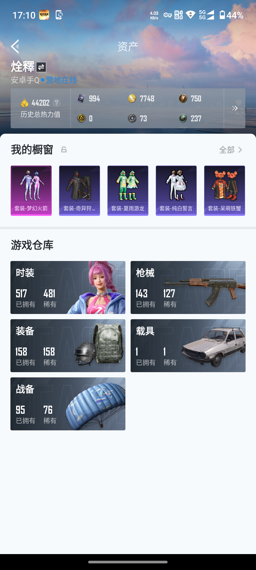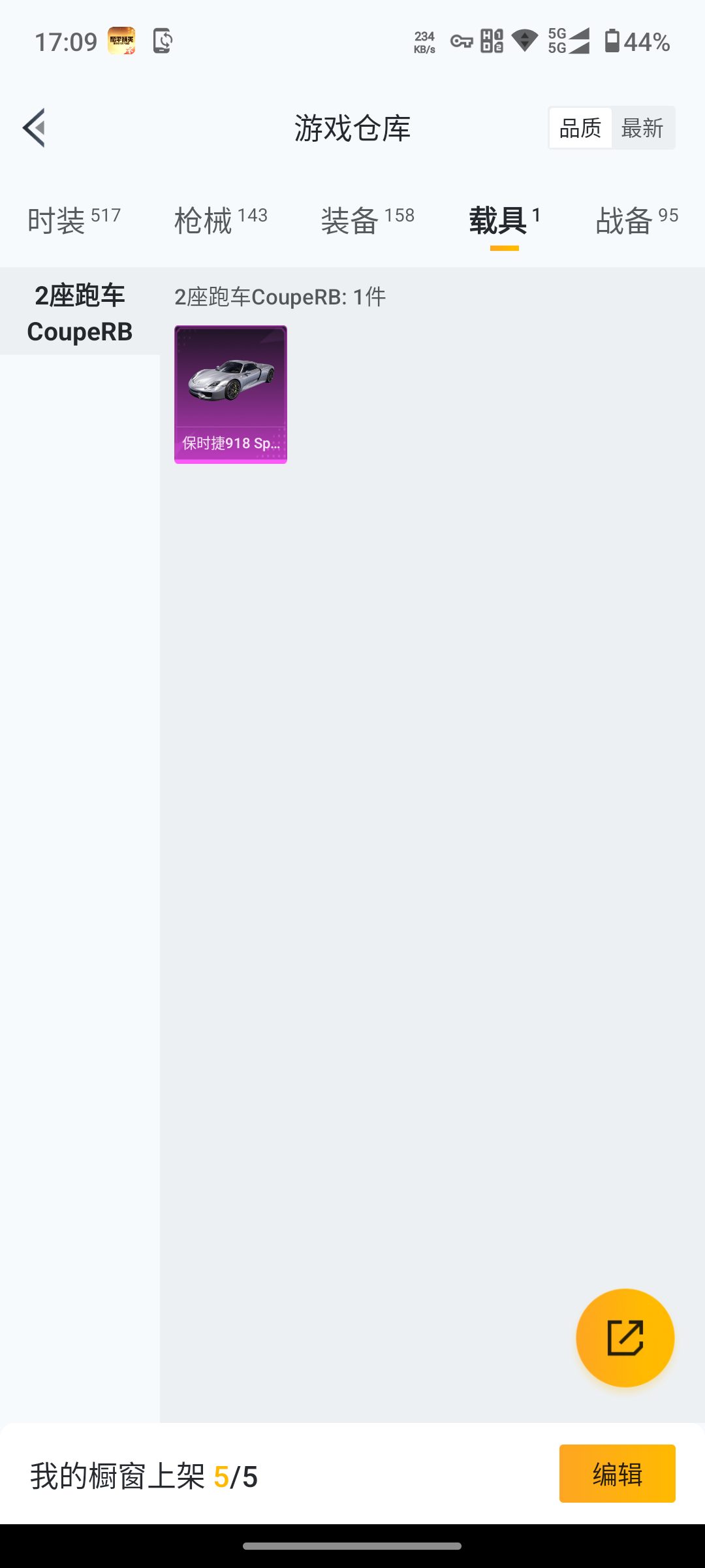 【梦幻火箭 都市猎人 哥特 深海小丑鱼 无二不包快刷新了】6王牌印记-2粉装-6特效呛-143呛皮-119套装-1载具 【1载具】 保时捷918 sper液态银 【2粉装】 雪月幻音 梦幻火箭 【6特效呛】 aug-暖羊咩咩 m762-青锋波束 groza-镜光银凌 dp-28-豹影疾电 kar98k-巳巳如意 mk14-闲梦青缨 【5飞行器】 炫彩糖果飞行器 破刃行