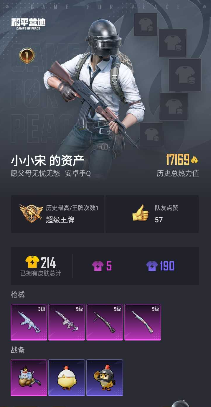 【和平精英】【lyhp19544】4特效呛 5级arx无垠阁 3级aks-74u无垠阁 0粉装,4特效呛,0载具,历史最高段位:超级王牌 王牌印记1次 热力值:17169,36套装,67呛械,72装备,29战备;套装:套装-黄色运动,套装-白色伏地魔,套装-黑色伏地魔,套装-竞技名士,套装-长空猛禽,套装-海岛探路者,套装-特战装甲,套装-冷酷挑战者,套装-魅力单车,套装-幻世保卫者,套装-龙魂突击队,套装-破蛋小黄鸡,套装-疯狂小兔子,套装-战术大师,套装-ss21特训,套装-玉兔迎春,套装-ss22特训,套装-光之冒险,套装-王牌教练,套装-云魄琉璃,套装-蝶变,套装-星途旅人,角色-夜瞳黯灵,套装-ss33特训,玩偶服-美羊羊,套装-元气之梦,套装-ss34特训,套装-擎苍青焰,套装-朱霞炽焰,套装-凌霄紫焰,套装-薄荷星砂,套装-ss35特训,套装-粉黛兰香,套装-ss36特训,套装-雪国风尚,套装-萌鸡速递;呛皮:m416-蓝色火焰,scar-l-夜灯,scar-l-炫彩节奏,scar-l-玉兔迎春,mk47-乌木金纹,5级arx-无垠阁,arx-凌霄紫焰,m16a4-冰河战士,aug-耀粉歌者,aug-异域银装,aug-紫晶流影,akm-破晓战魂,akm-涂鸦街区,akm-霓彩脉冲,akm-绿洲时空,famas-霓彩脉冲,famas-乌木金纹,m762-天降萌叽,amr-鸡智如我,win94-乌木金纹,awm-天降萌叽,5级kar98k-巳巳如意,svd-冷漠罗丽,m200-乌木金纹,mk12-乌木金纹,mini14-香桃花海,mini14-鸡智如我,mk14-冰河战士,mk14-薄荷星砂,mk14-紫晶流影,vss-香桃花海,mk20-h-狂鲨锋刃,mk20-h-乌木金纹,sks-炫彩节奏,slr-霓彩脉冲,3级aks-74u-无垠阁,aks-74u-乌木金纹,汤姆逊-天降萌叽,uzi-影袭,uzi-冰河战士,js9-凌霄紫焰,p90-巳巳如意,ump45-夜灯,dbs-乌木金纹,spas-12-狂鲨锋刃,spas-12-乌木金纹,s1897-炫彩节奏,s12k-夜灯,s12k-霓彩脉冲,s686-彩虹符号,mg3-幻世战舞者,mg3-乌木金纹,m249-彩虹符号,m249-糯团青竹,5级dp-28-豹影疾电,pkm-啾咪啾咪,mg-36-凌霄紫焰,p92-凌霄紫焰,电击呛-喜羊羊与灰太狼,平底锅-许七安,平底锅-凌霄紫焰,大砍刀-黑金刀,爆炸猎弓-喜羊羊与灰太狼,盐雾蛋-冰氧夏日,铝热弹-炫彩糖果,破片手留单-拽到爆炸,十子怒-异域银装;降落伞:极意拳锋飞行器,异域银装飞行器,顶峰精英尾迹,狂鲨锋刃飞行器,鸡智如我飞行器,登顶巅峰飞行器; 详情看图
