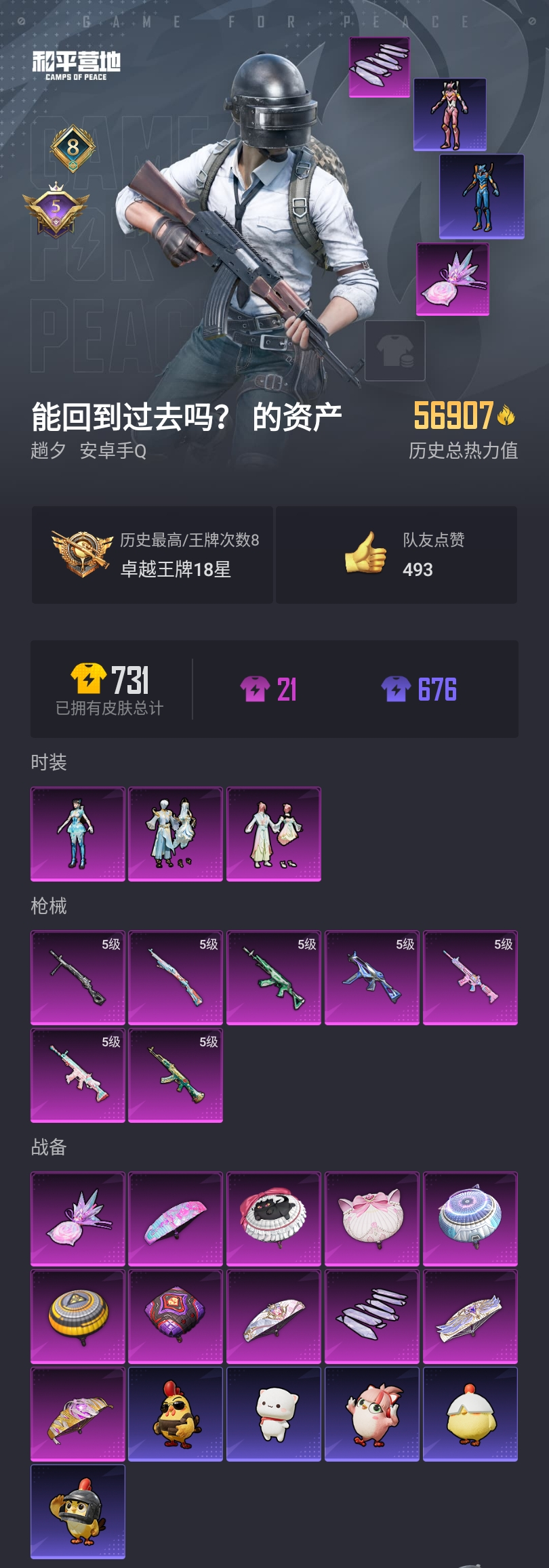 【和平精英】【lyhp19624】3粉装7特效呛 蓝螳螂 粉螳螂 3粉装,7特效呛,0载具,历史最高段位:卓越王牌18星 王牌印记8次 热力值:56907,149套装,194呛械,254装备,114战备;套装:套装-莲影清波,套装-金丰海韵,角色-异瞳寒姬,套装-特训学院,套装-青年教官,套装-红色运动,套装-黄色运动,套装-蓝色运动,套装-黄色伏地魔,套装-白色伏地魔,套装-黑色伏地魔,套装-冰川格斗者,套装-竞技名士,套装-深蓝色名流,套装-酒红色名流,套装-湖蓝色名流,套装-黄色名流,套装-猛禽,套装-长空猛禽,套装-漫步者,套装-海岛探路者,套装-雨林探路者,套装-旭日情侣,套装-冷焰舞者,套装-灼焰舞者,套装-特战装甲,套装-活力之心,套装-春日漫步,套装-鹰眼刺客,套装-冰冻风暴,套装-幻影武者,套装-街头潮人,套装-暗金炫舞,套装-蓝彩潮人,套装-魅力单车,套装-绮丽涂鸦,套装-耀眼新星,套装-超能勇士,套装-破晓战魂,套装-森林游猎者,套装-都市魅力,套装-荣耀,套装-沙漠兵团,套装-夏日倾情,套装-缤纷果语,套装-滨海厨神,套装-龙魂突击队,套装-冰川特警,套装-元素星魂,套装-霓虹街区,套装-顽皮玉兔,套装-白糯汤圆,套装-战术大师,套装-牛气冲天,套装-耀粉歌者,套装-竞技角斗士,套装-曼妙人鱼,套装-热情海星,套装-纯真浪花,套装-ss21特训,套装-玉兔迎春,套装-ss22特训,套装-光之冒险,套装-绯格组合,套装-ss23特训,套装-王牌教练,套装-柠萌假日,套装-ss24特训,套装-ss25特训,套装-惊鸿侠骨,套装-锦衣飞扬,套装-晨曦薄雾,套装-香桃花海,套装-龙的传人,套装-冰河战士,套装-ss26特训,套装-快闪甜心,套装-春光漫游,套装-漫游都市,套装-空岛之星,套装-无暇誓言,角色-星际旅行,角色-舰行太空,套装-童真绒兔,套装-云魄琉璃,套装-贝斯之夜,套装-焰鹰斗篷,套装-幽夜迷踪,套装-幻羽潜行,套装-ss27特训,套装-恋语绒绒,套装-老实芭蕉,套装-ss28特训,套装-alan walker电音教主,角色-情公主,角色-8号机,角色-mark.06,套装-街头风暴,套装-海盐绵绵冰,套装-蝶变,套装-创世·幻影,套装-小熊娃娃,套装-ss29特训,套装-雏菊兔兔,套装-萝兰蝴蝶,角色-绯色魅影,角色-无面战甲,套装-先驱飞行员,套装-异域银装,套装-星途旅人,套装-ss30特训,套装-青团波波,套装-棉花软糖,套装-糖糖葫芦,套装-ss31特训,套装-鱼渊荷华,套装-石蕴玉辉,套装-燕燕于飞,套装-智谋强哥,角色-风玲,角色-瑰梦爱神,套装-紫幽梦,套装-粉恋花,套装-ss33特训,套装-云朵鹅,套装-巳巳如意,套装-ss32特训,套装-蓝冰羽,套装-顶瓜瓜,套装-雪绒豹,套装-狂鲨锋刃,套装-大橘大利,角色-时希公主,套装-炫彩糖果,套装-元气之梦,套装-ss34特训,套装-擎苍青焰,套装-朱霞炽焰,套装-游乐,套装-凌霄紫焰,套装-薄荷星砂,套装-ss35特训,套装-午间小调,套装-秘语星愿,套装-风迹短诗,套装-粉黛兰香,套装-ss36特训,套装-雪国风尚,套装-萌鸡速递;呛皮:5级m416-电玩时刻,m416-蓝色火焰,m416-红色方程式,m416-糯团青竹,5级scar-l-锦绣绵绵,scar-l-红色方程式,scar-l-夜灯,scar-l-炫彩节奏,scar-l-彩虹符号,scar-l-玉兔迎春,scar-l-星途旅人,scar-l-海盐豹豹,groza-影袭,groza-海盐豹豹,groza-绿洲幻境,groza-无面战甲,m16a4-冰河战士,m16a4-天使羽翼,aug-耀粉歌者,aug-天降萌叽,aug-异域银装,aug-冰晶雪宝,aug-紫晶流影,ac-val-乌木金纹,ac-val-闲梦青缨,ac-val-快闪甜心,5级akm-绿萝繁花,akm-影袭,akm-破晓战魂,akm-霓虹街区,akm-涂鸦街区,akm-龙的传人,akm-江南烟雨,akm-霓彩脉冲,akm-绿洲时空,q-纯真浪花,famas-霓彩脉冲,famas-乌木金纹,5级m762-青锋波束,m762-镭射皇者,m762-彩虹符号,m762-天降萌叽,m762-雏菊兔兔,m762-滑板物语,m762-云朵鹅,蜜獾-天降萌叽,蜜獾-糖糖葫芦,蜜獾-风迹短诗,蜜獾-乌木金纹,mk47-乌木金纹,mk47-风迹短诗,arx-凌霄紫焰,莫辛纳甘-乌木金纹,莫辛纳甘-风迹短诗,amr-鸡智如我,amr-鬼刀,amr-乌木金纹,5级kar98k-巳巳如意,kar98k-影袭,kar98k-彩虹符号,kar98k-顶峰精英,m200-惊鸿侠骨,m200-滑板物语,m200-乌木金纹,m24-影袭,awm-天降萌叽,awm-焰鹰斗篷,awm-纯真浪花,svd-云朵鹅,win94-乌木金纹,vss-彩虹符号,vss-香桃花海,mk20-h-快闪甜心,mk20-h-星途旅人,mk20-h-糖糖葫芦,mk20-h-狂鲨锋刃,mk20-h-乌木金纹,mk12-风迹短诗,mk12-乌木金纹,mk14-冰河战士,mk14-紫幽梦,mk14-薄荷星砂,mini14-梦幻火箭,mini14-香桃花海,mini14-雏菊兔兔,m417-惊鸿侠骨,m417-玩趣呆呆,slr-守护天翼,slr-霓彩脉冲,aks-74u-鬼刀,aks-74u-鸡智如我,aks-74u-乌木金纹,js9-凌霄紫焰,5级ump45-量子极限,ump45-涂山之恋,ump45-海盐豹豹,ump45-糖糖葫芦,ump45-极意拳锋,ump45-绿洲时空,vect-彩虹符号,vect-焰鹰斗篷,vect-英伦信使,vect-燕燕于飞,p90-快闪甜心,p90-玩趣呆呆,p90-竞速先锋,p90-巳巳如意,p90-乌木金纹,uzi-影袭,uzi-冰河战士,uzi-啾咪啾咪,uzi-炫彩糖果,汤姆逊-天降萌叽,汤姆逊-纯真浪花,汤姆逊-智耀战神,mp5k-乌木金纹,野牛-沙丘之主,野牛-雏菊兔兔,野牛-燕燕于飞,spas-12-燕燕于飞,spas-12-狂鲨锋刃,spas-12-云朵鹅,spas-12-乌木金纹,s686-生命誓言,s686-彩虹符号,s686-巳巳如意,dbs-圣堂之誓,dbs-焰鹰斗篷,dbs-风迹短诗,dbs-乌木金纹,s1897-紫幽梦,s1897-糯团青竹,s12k-音爆索尼克,s12k-玩趣呆呆,s12k-霓彩脉冲,aa12-g-纯真浪花,pkm-拂晓神骑,pkm-啾咪啾咪,pkm-紫幽梦,mg3-乌木金纹,mg3-惊鸿侠骨,mg3-霓彩脉冲,m249-彩虹符号,m249-糯团青竹,m249-沙丘之主,m249-无面战甲,m249-冰晶雪宝,mg-36-凌霄紫焰,mg-36-薄荷星砂,5级dp-28-豹影疾电,dp-28-焰鹰斗篷,信号呛-异瞳寒姬,蝎式手呛-闲梦青缨,蝎式手呛-奶