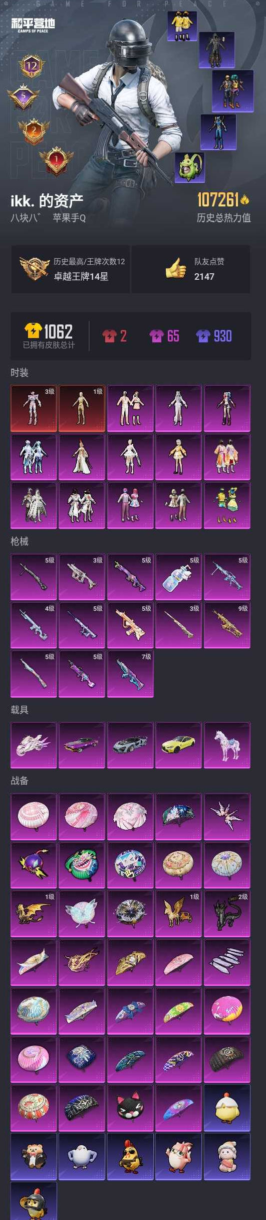 【和平精英】【lyhp19626】2红13粉13特效呛5载 3级图卡盟 1级机甲 花间之火 自由不羁 小丑女 多呛型 满级scar-l金蛇 满级akm梦华 五车型 宝马m4 晶梦马 13粉装,13特效呛,5载具,历史最高段位:卓越王牌14星 王牌印记12次 热力值:107261,213套装,285呛械,362装备,168战备;套装:沙丘之主-图卡盟,最终圣卫者-帕修斯,套装-宝贝奶油派,套装-天使彩虹糖,套装-花间之火,套装-冰霜白皇,套装-香水柠檬,套装-俏雪含霜,角色-呆萌星弥,套装-第五大道,角色-千金淑猫,角色-萨利娅,角色-狂魅哈莉,套装-幻彩电音,角色-冷漠罗丽,套装-特训学院,套装-白色伏地魔,套装-冰川格斗者,套装-竞技名士,套装-湖蓝色名流,套装-猛禽,套装-长空猛禽,套装-漫步者,套装-竞技勇士朋克,套装-黎明保卫者,套装-雪鹰学院,套装-海岛探路者,套装-雨林探路者,套装-旭日情侣,套装-六六大吉,套装-冷焰舞者,套装-浪漫天命,套装-特战装甲,套装-战地菁英,套装-浪漫假日,套装-特殊使命,套装-灰色格斗者,套装-甜蜜告白,套装-迎春赐吉,套装-燃烧卡路里,套装-沙漠毒蛇,套装-鹰眼刺客,套装-冰冻风暴,套装-特战英豪,套装-蓝彩潮人,套装-千禧之恋,套装-魅力单车,套装-绮丽涂鸦,套装-耀眼新星,套装-狂战萌兔,套装-雪山征服者,套装-坚韧舞者,套装-朋克治安官,套装-野性战心,套装-狂沙舞者,套装-破晓战魂,套装-热血青春,套装-沙漠兵团,套装-丛林猎人,套装-ss2特训,套装-雪山精英,套装-酷潮明星,套装-传奇侦探,套装-极地朋克,套装-半糖蓝莓,套装-自由不朽乐队,套装-暗影哥特,套装-精密机核,套装-迅捷狂鲨,套装-深海小丑鱼,套装-青涩时光,套装-缤纷果语,套装-风暴特警,套装-冰川特警,套装-元素星魂,套装-胖达团团,套装-格斗先锋,套装-旷野奇兵,套装-粉红小猪,套装-破蛋小黄鸡,套装-疯狂小兔子,套装-深蓝冒险家,套装-迷域探索者,套装-机械英豪,套装-机械征服者,套装-ss5特训,套装-圣诞大吉,套装-冰原使者,套装-凛冬战士,套装-北国孤狼,套装-ss6特训,套装-拳皇97草薙京,套装-炽焰拳师,套装-格斗专家,套装-跃动心情,套装-ss7特训,套装-黑色刀锋,套装-核芯基因,套装-精神漫游,套装-霓虹街区,套装-暗夜契约,套装-五号元素,套装-ss10特训,套装-潮萌小黄鸭,套装-ss8特训,套装-神秘黑猫,套装-软萌银虎,套装-超能拳王,套装-夏日音浪,套装-ss9特训,套装-神奈川冲浪里,套装-本愿之火,套装-牛气满满,套装-ss11特训,套装-青龙圣者,套装-原初圣火,套装-逆风勇士,套装-娴静芝兰,套装-萌趣颜团子,套装-战术大师,套装-ss12特训,套装-牛气冲天,套装-ss18特训,套装-耀粉歌者,套装-治愈之星,套装-科技之星,套装-ss13特训,套装-ss14特训,角色-真嗣款战斗服,套装-ss15特训,套装-ss16特训,套装-ss17特训,套装-瑞龙福将,套装-团圆交子,套装-福星高照,套装-虎虎生威吉莉,套装-空投萌叽,套装-ss19特训,套装-飞驰魅影,套装-音速流光,套装-炫蓝之夏,套装-ss21特训,套装-ss22特训,套装-香榭午后,套装-龟仙人,套装-ss25特训,套装-香桃花海,套装-龙的传人,套装-ss26特训,套装-空岛之星,套装-焰鹰斗篷,套装-幻羽潜行,套装-ss27特训,套装-恋语绒绒,套装-老实芭蕉,角色-湖雨初晴,角色-mark.06,套装-街头风暴,套装-小熊娃娃,套装-ss29特训,套装-雏菊兔兔,套装-萝兰蝴蝶,角色-紫俏灵猫,套装-异域银装,角色-摩登魅猫,角色-临安公主,套装-ss30特训,套装-青团波波,套装-棉花软糖,套装-糖糖葫芦,套装-小鸟芋圆,套装-诡诞巡游,套装-ss31特训,套装-鱼渊荷华,套装-燕燕于飞,套装-智谋强哥,套装-晶灵使者,角色-海琴烟,套装-紫幽梦,套装-粉恋花,套装-晶辉守护,套装-ss33特训,角色-猎影月神,套装-云朵鹅,套装-巳巳如意,套装-ss32特训,套装-彩虹兔,套装-蓝冰羽,套装-雪绒豹,套装-狂鲨锋刃,套装-混沌火种,套装-大橘大利,套装-极速光影,角色-时希公主,角色-灵公主,套装-星渊小夜曲,套装-霓虹热舞,套装-星影赞美诗,角色-乐音,套装-元气之梦,套装-ss34特训,套装-薄荷星砂,套装-ss35特训,套装-午间小调,套装-风迹短诗,套装-琴音绮想,套装-粉黛兰香,套装-画境星梦,套装-书海巡游,角色-甜心蒙太奇,套装-ss36特训,套装-雪国风尚,套装-萌鸡速递;呛皮:7级akm-梦之光华,akm-影袭,akm-玉龙,akm-破晓战魂,akm-涂鸦街区,akm-彩虹符号,akm-萌趣颜团子,akm-龙的传人,akm-霓彩脉冲,akm-乌木金纹,akm-绿洲时空,m762-绯红前夜,m762-拳皇97,m762-深海曼妙,m762-牛气冲天,m762-瑞龙福将,m762-第五大道,m762-天降萌叽,m762-雏菊兔兔,m762-云朵鹅,m762-乌木金纹,groza-影袭,groza-生命誓言,groza-春暖花开,groza-黑色刀锋,groza-治愈之星,groza-恐龙拽拽,groza-海盐豹豹,groza-乌木金纹,famas-镜域双华,famas-霓彩脉冲,famas-乌木金纹,m416-夜灯,m416-蓝色火焰,m416-红色方程式,m416-罗小黑,m416-潮汐统领,m416-糯团青竹,m416-萌萌史莱姆,m416-乌木金纹,5级aug-暖羊咩咩,aug-甜蜜菠萝,aug-耀粉歌者,aug-异域银装,aug-金蛇镇世,aug-绝对恒星,aug-乌木金纹,9级scar-l-金蛇镇世,scar-l-红色方程式,scar-l-黄金龙骨,scar-l-甜蜜誓约,scar-l-夜灯,scar-l-王牌四分卫,scar-l-炫彩节奏,scar-l-彩虹符号,scar-l-玉兔迎春,scar-l-星途旅人,scar-l-冷漠罗丽,scar-l-乌木金纹,蜜獾-垂柳戏鸭,蜜獾-天降萌叽,蜜獾-糖糖葫芦,蜜獾-风迹短诗,蜜獾-乌木金纹,m16a4-夜灯,m16a4-机械英豪,m16a4-幻世战舞者,m16a4-千金淑猫,m16a4-最终圣卫者,m16a4-乌木金纹,q-神秘黑猫,q-原初圣火,q-洛神天依,q-飞驰魅影,q-乌木金纹,ac-val-天降萌叽,ac-val-时光之