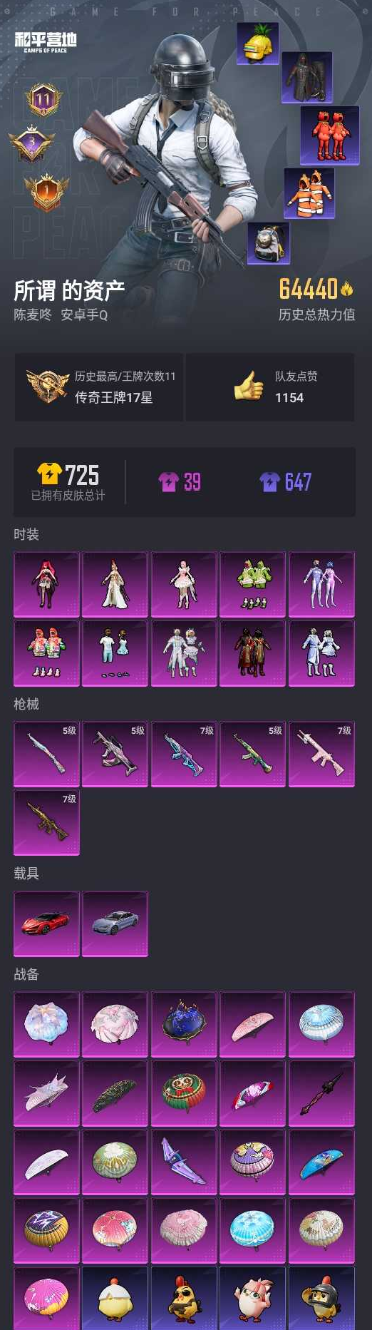 【和平精英】【lyhp19619】10粉6特效呛2载 梦幻火箭 红茄熊熊 炫光之旅 绯红妖姬 多呛型 满级m4金龙 满级akm梦华 满级m417第五 仰望轿车 红超跑 猫包 10粉装,6特效呛,2载具,历史最高段位:传奇王牌17星 王牌印记11次 热力值:64441,132套装,202呛械,246装备,122战备;套装:套装-梦幻火箭,套装-彩虹鹿灵,套装-恐龙拽拽,套装-霓裳武神,套装-霁雪冰心,套装-仲夏莫吉托,套装-炫光之旅,角色-美雪,角色-绯穹魔姬,角色-萨利娅,套装-特训学院,套装-猎鹰,套装-黑色伏地魔,套装-竞技名士,套装-长空猛禽,套装-海岛探路者,套装-浪漫假日,套装-贵族骑装,套装-战地督导,套装-活力之心,套装-甜蜜告白,套装-龙腾端午,套装-滨海假日,套装-沙漠毒蛇,套装-千禧之恋,套装-怒火燎原,套装-魅力单车,套装-都市漫游者,套装-奇异狩猎者,套装-暗影哥特,套装-迅捷狂鲨,套装-缤纷果语,套装-风暴特警,套装-冰川特警,套装-冷血极客,套装-麻辣教官,套装-小丑鱼,套装-军械专家,套装-鹤鸣,套装-霓虹街区,套装-纯白誓言,套装-白熊同盟,套装-萌黄之夏,套装-夏日音浪,套装-牛气满满,套装-骁骑迪迦,套装-战术大师,套装-牛气冲天,套装-ss18特训,套装-飞行日记,套装-热情海星,套装-纯真浪花,套装-ss14特训,套装-吉莉礼服,套装-快乐星愿,套装-ss15特训,套装-ss17特训,套装-醒狮腾龙,套装-瑞龙福将,套装-团圆交子,套装-福星高照,套装-豚鼠丹丹,套装-雪兔飞飞,套装-虎虎生威吉莉,套装-空投萌叽,套装-ss19特训,套装-飞驰魅影,套装-音速流光,套装-炫蓝之夏,套装-ss20特训,套装-ss21特训,套装-萌趣咩咩,套装-娇憨猪猪,套装-红熊茄茄,套装-玉兔迎春,套装-ss22特训,套装-和煦暖阳,套装-田园牧歌,套装-轻风白浪,套装-碧波幻想,套装-光之冒险,套装-绯格组合,套装-ss23特训,套装-妙红点点,套装-幻彩翩翩,套装-王牌教练,套装-柠萌假日,套装-青玉碎影,套装-ss24特训,套装-龟仙人,套装-涂山之恋,套装-ss25特训,套装-惊鸿侠骨,套装-锦衣飞扬,套装-晨曦薄雾,套装-绝对偶像,套装-香桃花海,套装-龙的传人,套装-ss26特训,套装-快闪甜心,套装-春光漫游,套装-空岛之星,套装-无暇誓言,套装-明鸳圣池,套装-焰鹰斗篷,套装-幻羽潜行,套装-ss27特训,套装-老实芭蕉,套装-ss28特训,角色-白光莹,套装-街头风暴,套装-海盐绵绵冰,角色-狂花道·娜可露露,角色-都市丽猫,角色-俏兔智灵,套装-ss30特训,套装-青团波波,角色-绛羽幽主,套装-糖糖葫芦,套装-ss31特训,套装-鱼渊荷华,套装-燕燕于飞,套装-智谋强哥,套装-晶辉守护,套装-ss33特训,套装-云朵鹅,套装-巳巳如意,套装-ss32特训,套装-雪绒豹,套装-元气之梦,套装-ss34特训,套装-ss35特训;呛皮:aug-耀粉歌者,aug-闲梦青缨,aug-辉耀战甲,aug-异域银装,5级groza-镜光银凌,groza-影袭,groza-彩虹符号,groza-田园牧歌,groza-海盐豹豹,m762-奇异狩猎者,m762-瑞龙福将,m762-绒雪飘舞,m762-第五大道,m762-天降萌叽,m762-萌物绒绒,m762-云朵鹅,蜜獾-娇憨猪猪,蜜獾-垂柳戏鸭,蜜獾-天降萌叽,蜜獾-精灵梦叶罗丽,蜜獾-糖糖葫芦,蜜獾-乌木金纹,q-飞驰魅影,q-纯真浪花,scar-l-红色方程式,scar-l-炫彩节奏,scar-l-玉兔迎春,scar-l-甜蜜旋律,scar-l-海盐豹豹,7级akm-梦之光华,5级akm-绿萝繁花,akm-奇异狩猎者,akm-缤纷海域,akm-夜灯,akm-彩虹符号,akm-虎虎生威,akm-龙的传人,akm-江南烟雨,mk47-百万伏特,mk47-乌木金纹,mk47-妙红点点,mk47-摩登王国,ac-val-乌木金纹,ac-val-天降萌叽,ac-val-快闪甜心,m16a4-夜灯,m16a4-幻世战舞者,m16a4-冰河战士,7级m416-五爪金龙,m416-蓝色火焰,m416-红色方程式,m416-糯团青竹,g36c-冷魅冰骑,g36c-乌木金纹,famas-乌木金纹,5级kar98k-巳巳如意,kar98k-梦幻火箭,kar98k-彩虹符号,kar98k-炫彩节奏,kar98k-飞驰魅影,kar98k-顶峰精英,莫辛纳甘-炙焰牛王,莫辛纳甘-乌木金纹,莫辛纳甘-银碳小老虎,amr-妙红点点,amr-镜光幻境,amr-乌木金纹,awm-垂柳戏鸭,awm-飒粉甜心,awm-焰鹰斗篷,awm-纯真浪花,svd-冷漠罗丽,svd-云朵鹅,m24-乌木金纹,m200-惊鸿侠骨,m200-乌木金纹,win94-瑞龙福将,mk14-乌木金纹,7级m417-第五大道,m417-惊鸿侠骨,m417-玩趣呆呆,mk20-h-快闪甜心,mk20-h-星途旅人,mk20-h-糖糖葫芦,mk20-h-乌木金纹,sks-迅猛狂鲨,sks-炫彩节奏,sks-糯团青竹,mini14-穿刺龙虾,mini14-梦幻火箭,mini14-炫彩节奏,mini14-耀粉歌者,mini14-香桃花海,vss-田园牧歌,vss-香桃花海,slr-娇憨猪猪,slr-彩虹符号,p90-飞驰魅影,p90-快闪甜心,p90-玩趣呆呆,p90-巳巳如意,p90-乌木金纹,ump45-夜灯,ump45-蓝色火焰,ump45-仲夏莫吉托,ump45-繁龙极客,ump45-糖糖葫芦,vect-生命誓言,vect-彩虹符号,vect-田园牧歌,vect-音爆索尼克,vect-焰鹰斗篷,vect-燕燕于飞,aks-74u-鬼刀,aks-74u-乌木金纹,uzi-炫彩节奏,uzi-娇憨猪猪,uzi-墨染幽兰,uzi-天降萌叽,uzi-啾咪啾咪,汤姆逊-耀粉歌者,汤姆逊-炫彩节奏,汤姆逊-纯真浪花,mp5k-梨园星光,mp5k-乌木金纹,野牛-燕燕于飞,野牛-乌木金纹,spas-12-太空嘟嘟,spas-12-田园牧歌,spas-12-燕燕于飞,spas-12-云朵鹅,spas-12-乌木金纹,s1897-百万伏特,s1897-春暖花开,s1897-炫光贝贝,s1897-炫彩节奏,s1897-飞驰魅影,s1897-乌木金纹,aa12-g-炫光之旅,aa12-g-纯真浪花,s12k-龙宫之主,s12k-瑞龙福将,s12k-娇憨猪猪,s12k-垂柳戏鸭,dbs-甜心亚梦,dbs-圣堂之誓,dbs-焰鹰斗篷,dbs-幻彩电音,dbs-乌木金纹,s686-红色方程式,s686-巳巳如意,m249-百万伏特,m249-星之彼岸,m249-月影鸳鸯,m249-冷魅冰骑,m249-彩虹符号,m249-糯团青竹,m249-妙红点点,m249-莲影清波,m249-无面战甲,m249-乌木金纹,pkm-拂晓神骑,mg3-瑞龙福将,mg3-乌