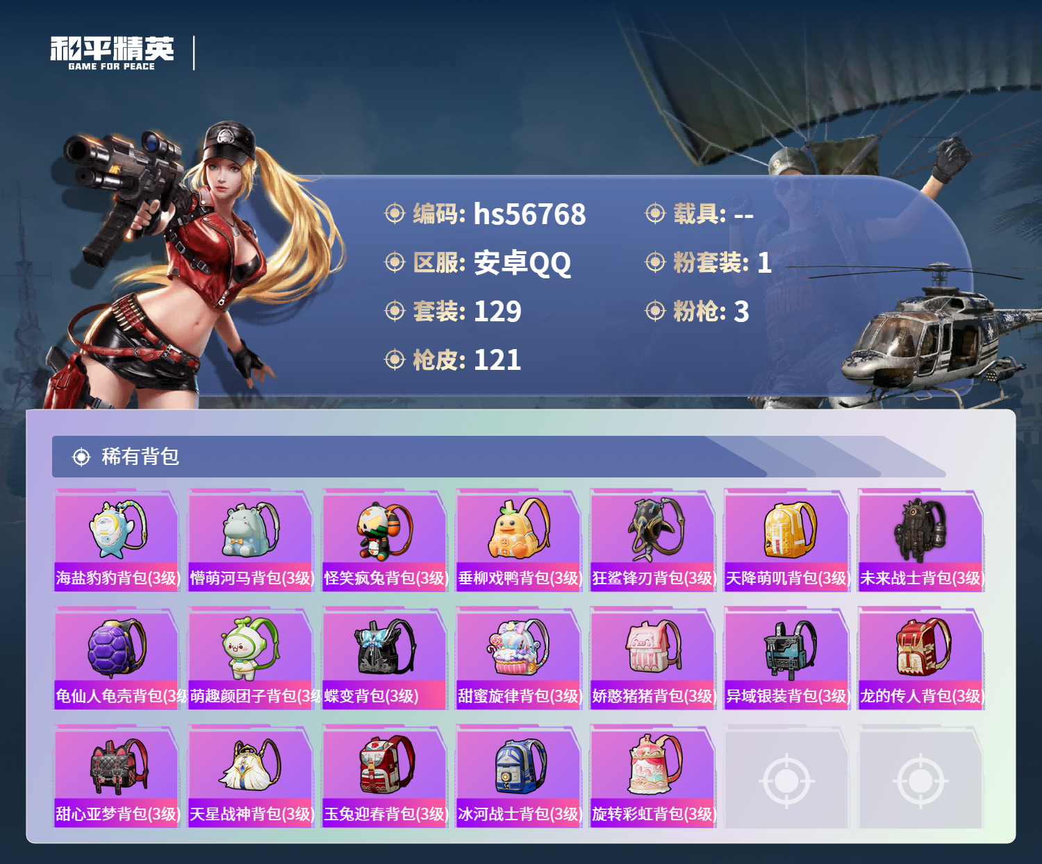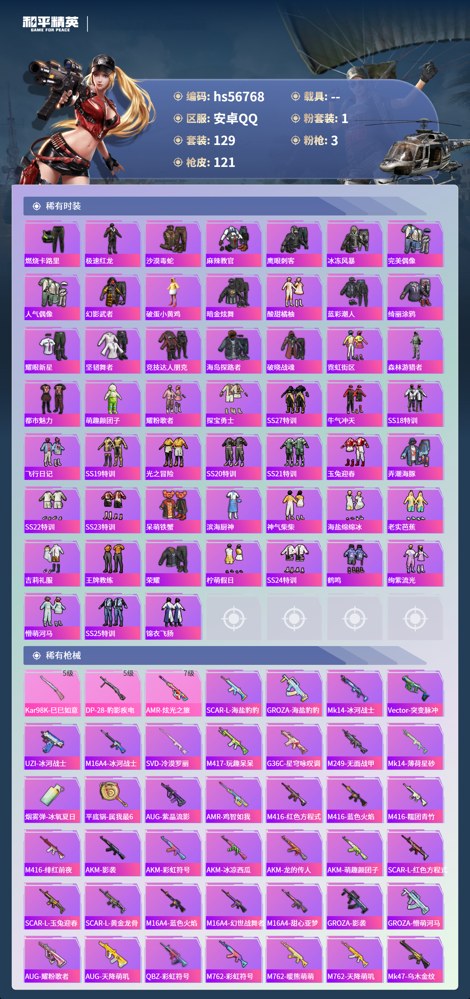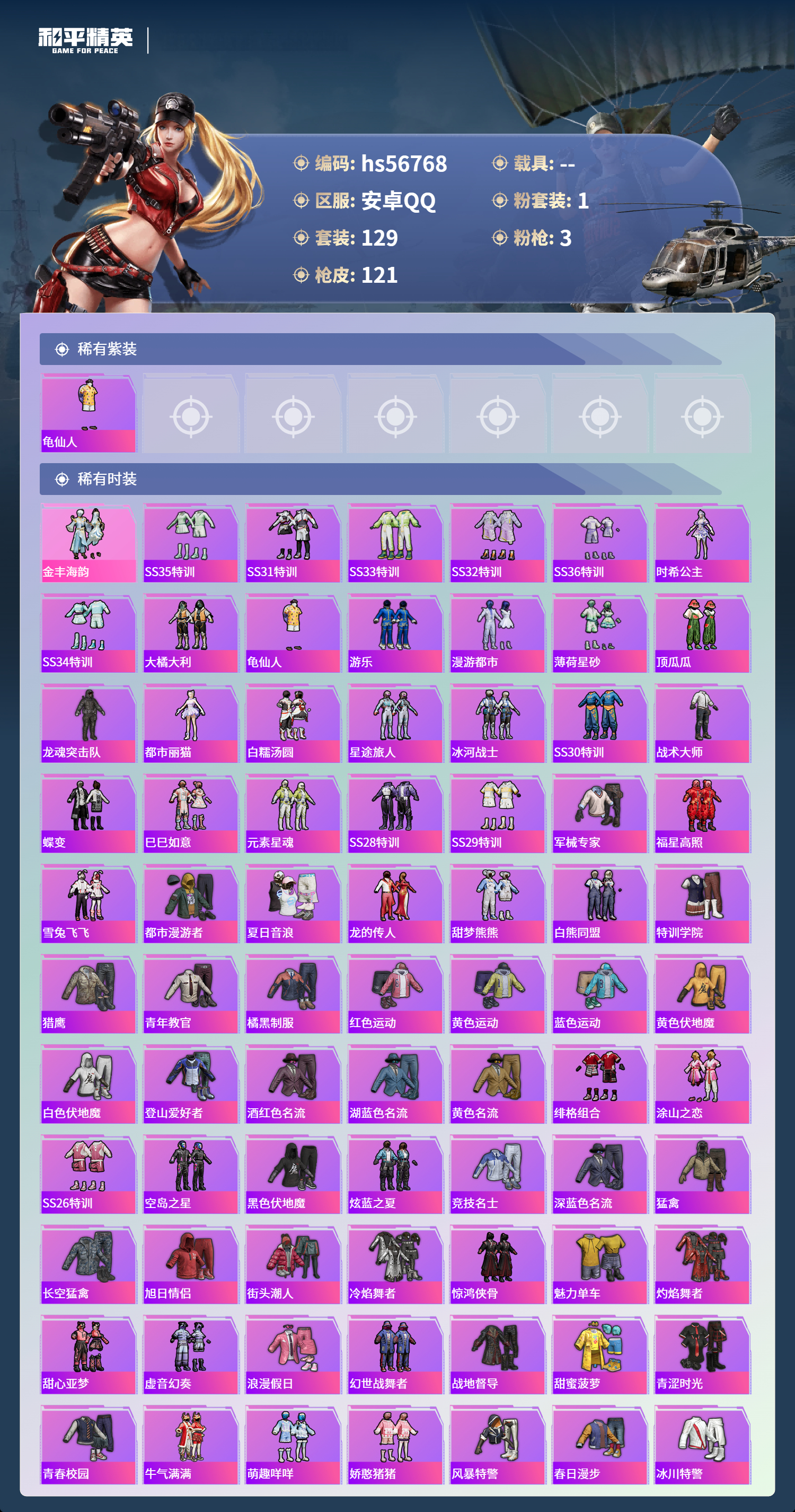 hs56768 安卓手q-13王牌印记-1粉装-3特效呛-35568热力值-129套装-121呛皮-1卓越印记【1粉装】套装-金丰海韵【3特效呛】dp-28-豹影疾电/5级amr-炫光之旅/7级kar98k-巳巳如意/5级【1稀有紫装】龟仙人【129稀有时装】ss35特训ss31特训ss33特训ss32特训ss36特训时希公主ss34特训大橘大利龟仙人游乐漫游都市