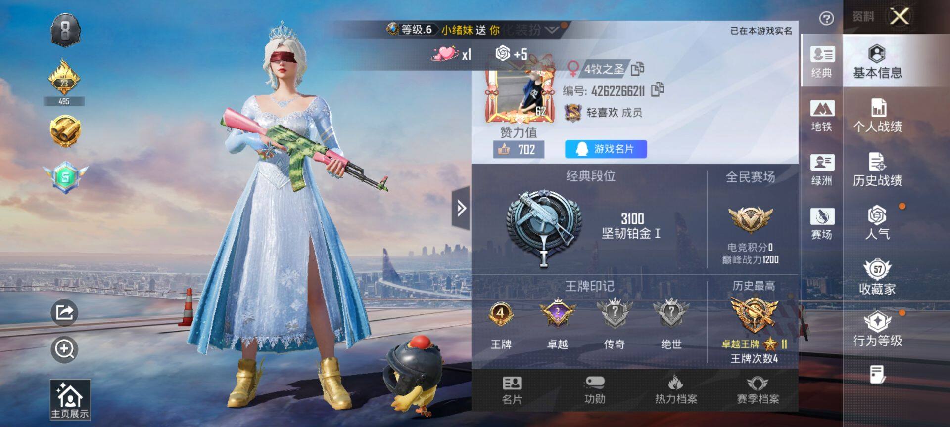 0载具-154套装-188呛皮-可二次-安卓q-3稀有3粉装7特效呛7热门【精品身法素材号 雪国 金鞋 浅蓝色牛仔外套 绯夜呢喃眼罩 双马尾 红眼罩 蓝螳螂 天命 雪国精灵背包头盔全套 千金淑猫头盔】153套装187呛皮 53719热力值 4印记 历史卓越王牌11星 【3稀有】 浪漫天命 派对舞王 派对舞王(金靴子) 【3粉装】 雪国幻梦 荧海星豚 深渊皇后 【7特效呛】 p90-冷漠罗丽 7级 kar98k-巳巳如意 5