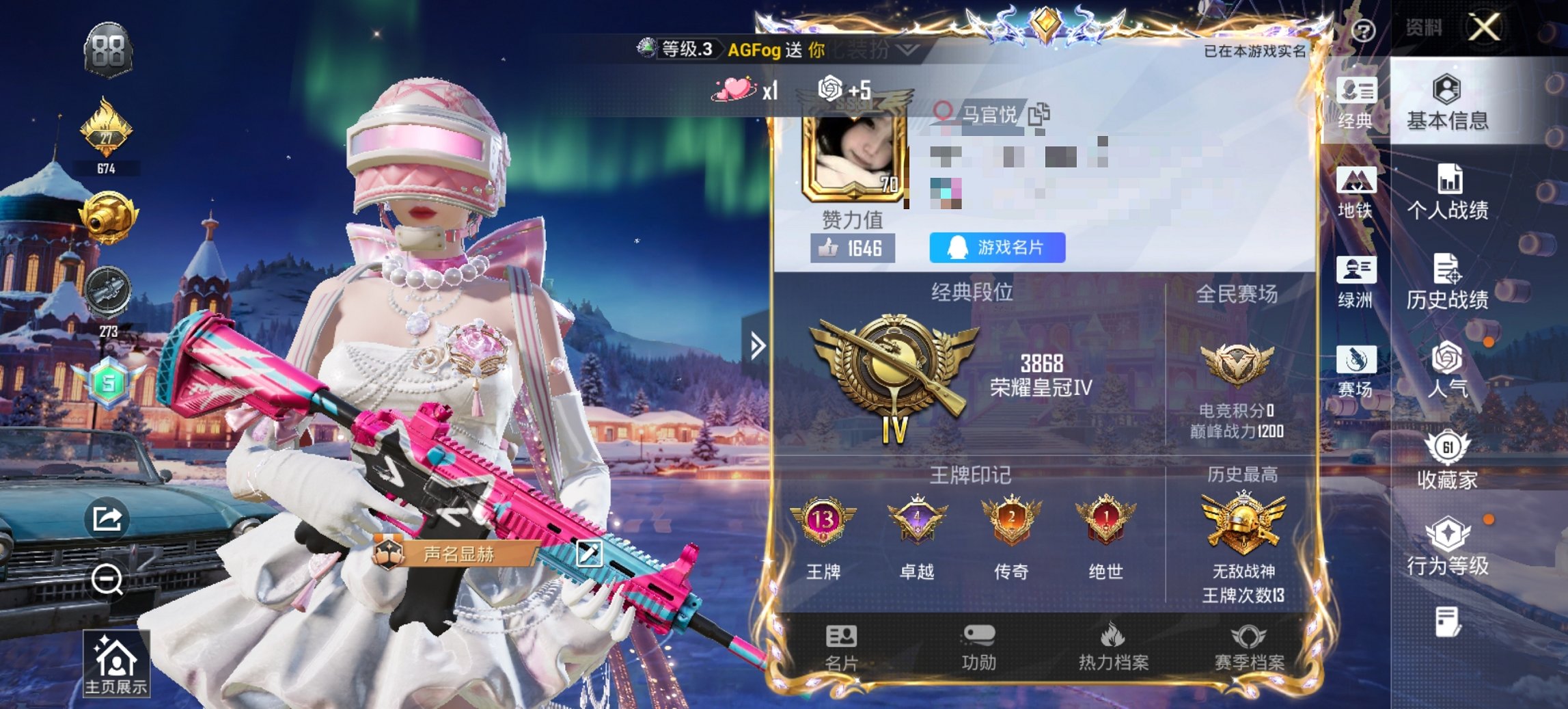 0载具-197套装-199呛皮-【战神框暗夜之虎满级scar-l梦幻火箭3粉装4特效呛 秒换绑不用等】 安卓q区-63733热力值-13印记-历史最高段位:无敌战神-197套装-199呛皮 【1稀有】 暗夜之虎【3粉装】 傲雪凌霜 深渊皇后 角色-千金淑猫【4特效呛】 scar-l-梦幻火箭7级 kar98k-巳巳如意5级 aug-暖羊咩咩5级 dp-28-豹影疾电5级【209热门】 雪山精英