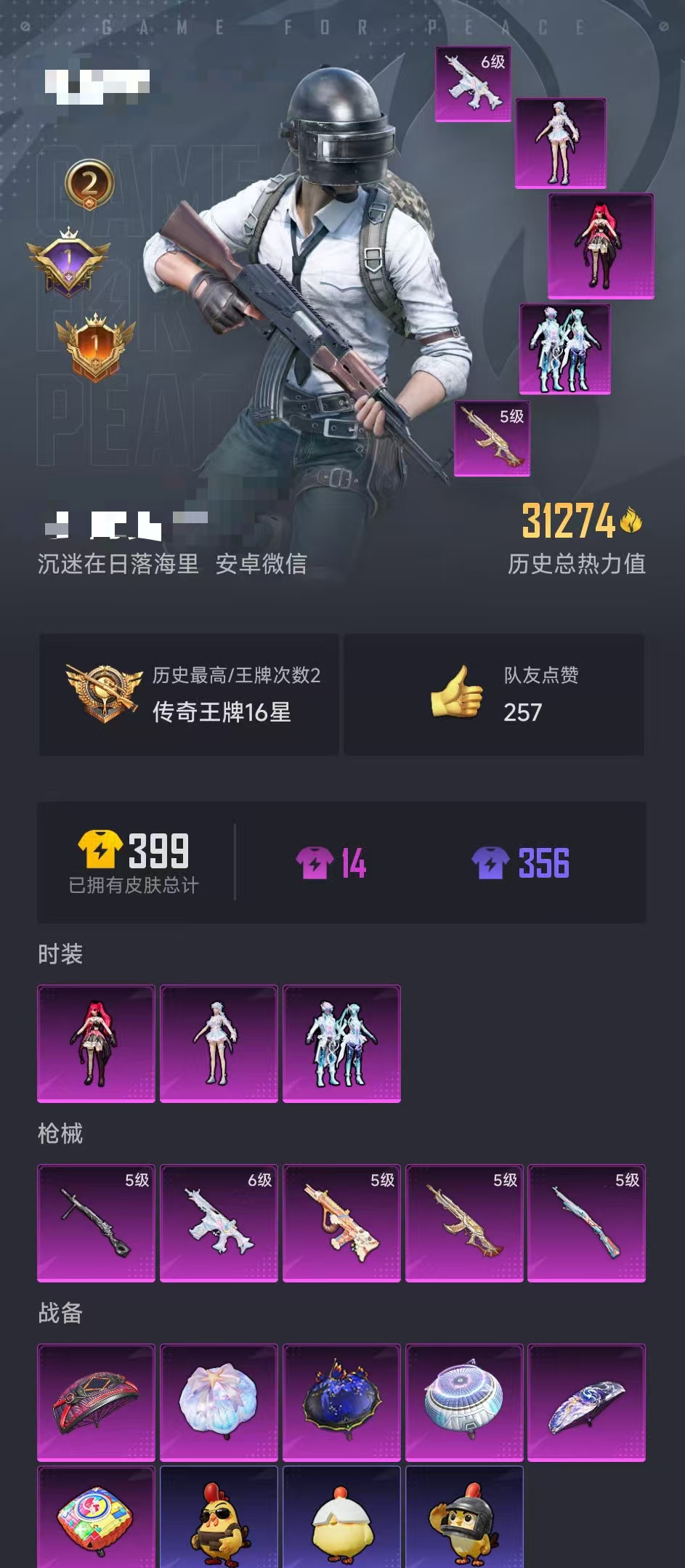 可二次【3粉装5特效呛】 安卓v区-31274热力值-2印记-80套装-110呛皮 【3粉装】 幻彩电音 角色-荧海星豚 角色-绯穹魔姬【5特效呛】 蜜獾-荧海星豚6级 kar98k-巳巳如意5级 dp-28-豹影疾电5级 aug-暖羊咩咩5级 m762-鬼刀5级【13热门】 长空猛禽 s686-奇异狩猎者 风暴特警 浪漫天命 鹰眼刺客 破蛋小黄鸡 暗影哥特红眼罩 白色伏地魔 ss27特训 ss26特训 ss25特训 m249-彩虹符号 mg3-幻世战舞者【2飞行器】 粉色滑翔尾迹 空岛之星尾迹 营地id:991415616