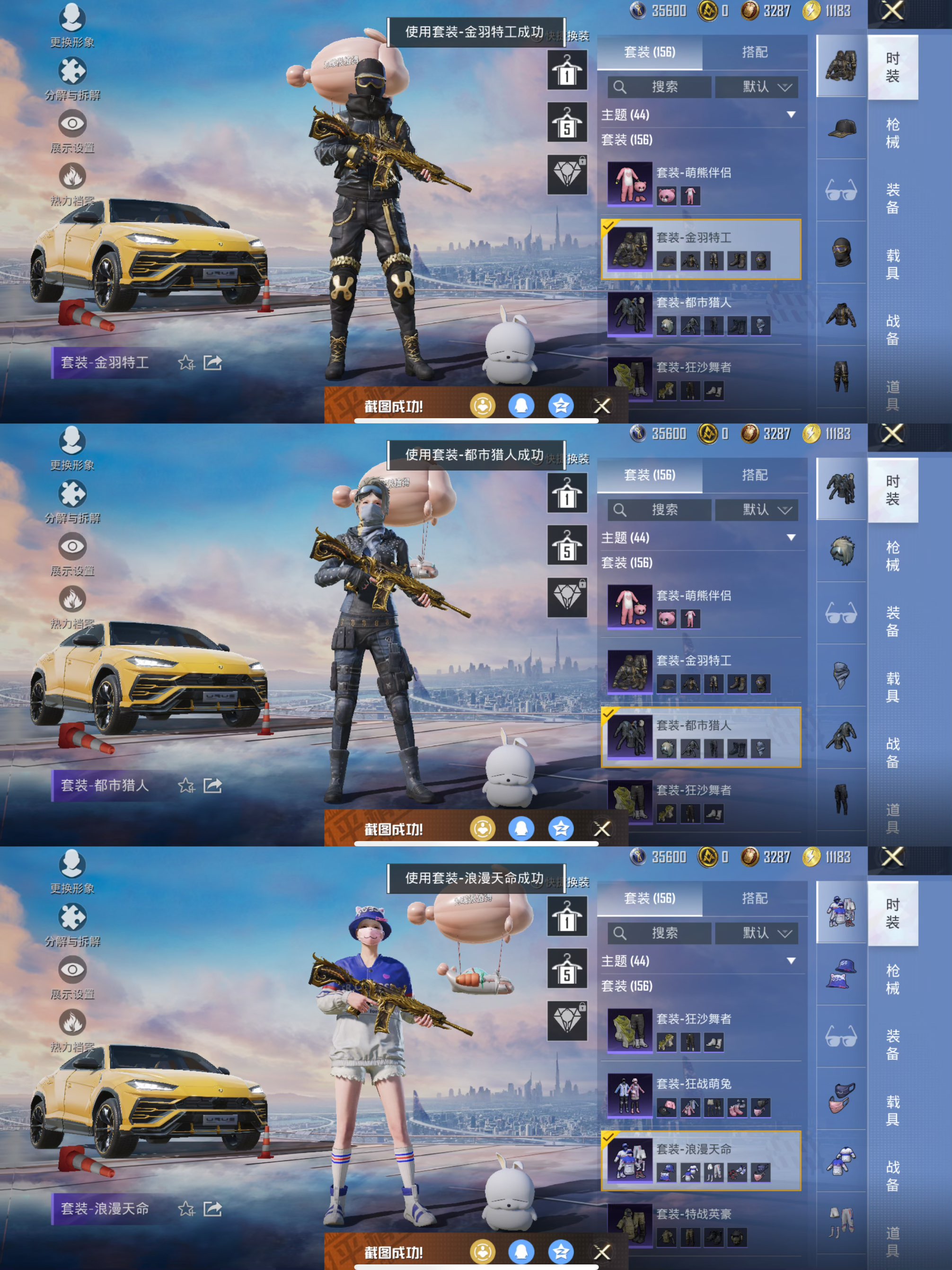 【男神素材身法号 6粉装3特效1载具 星际漫游 宝贝奶油派 深海小丑鱼 奇异狩猎者 太空漫步 胖达圆圆 胖达团团 金羽特工 暗影哥特 西部牛仔 浪漫天命 都市猎人 灰熊背包 粉熊背包】1王牌印记-6粉装-3特效呛-149呛皮-156套装-1载具 【1载具】 兰博suv黄色 【6粉装】 宝贝奶油派 天使彩虹糖 星际漫游者 黄伞悠悠 海渊国主 未来战士 【3特效呛】 m416-五爪金龙 m249-蓝