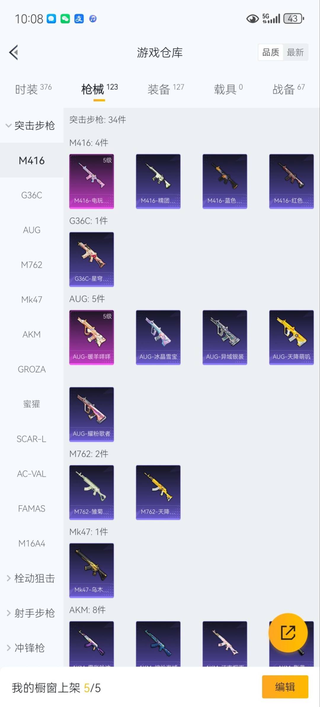 1粉装 6特效呛 10印记 可二次 可修改实名 【热门装扮】:幻彩电音迅捷狂鲨鹰眼刺客呆萌铁蟹都市猎人 【稀有呛皮】:aug-暖羊咩咩aks-74u-星穹咏叹调kar98k-巳巳如意m416电玩时刻dp-28-豹影疾电scar-l-锦绣绵绵 【七级特效呛】:七级aks-74u-星