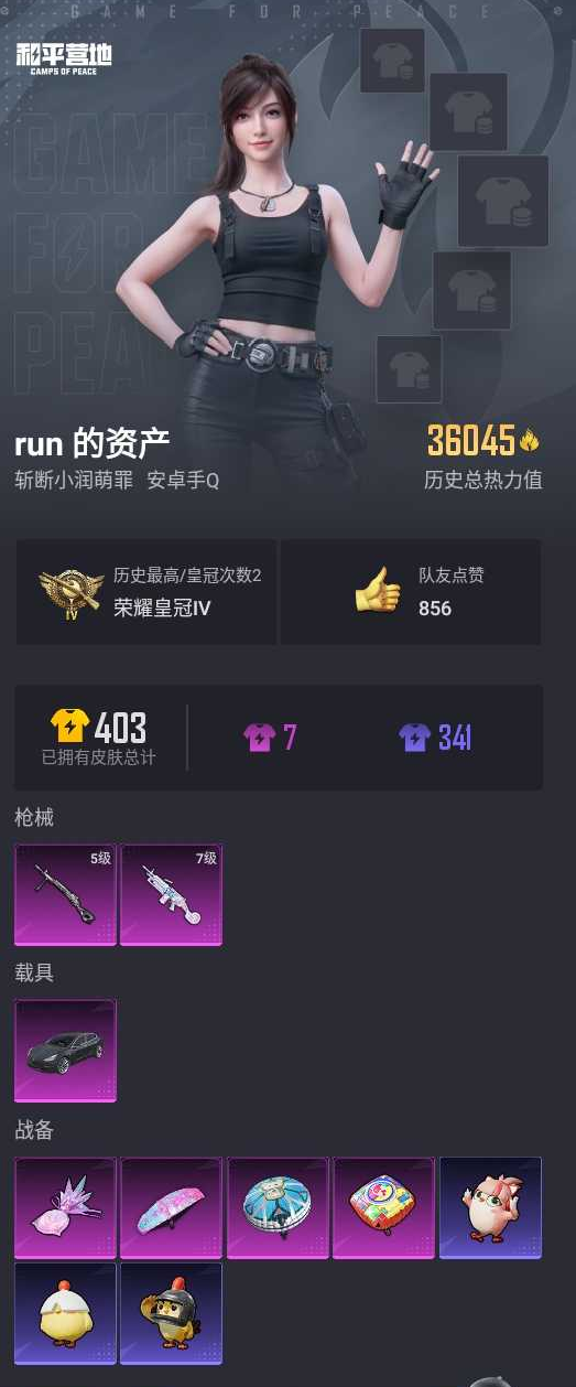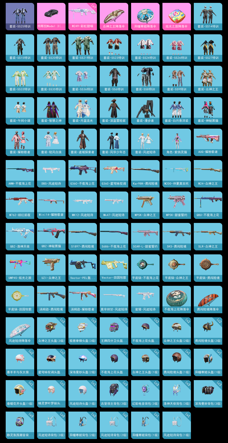 【和平精英】【lyhp19701】2特效呛1载 满级大菠萝 特斯拉 0粉装,2特效呛,1载具,历史最高段位:荣耀皇冠ⅳ 王牌印记-1次 热力值:36045,101套装,122呛械,99装备,54战备;套装:套装-特训学院,套装-黄色运动,套装-蓝色运动,套装-黄色伏地魔,套装-白色伏地魔,套装-黑色伏地魔,套装-骑行爱好者,套装-登山爱好者,套装-竞技名士,套装-湖蓝色名流,套装-游猎者,套装-长空猛禽,套装-漫步者,套装-竞技勇士朋克,套装-海岛探路者,套装-破晓情侣,套装-冷焰舞者,套装-刚毅裁决者,套装-战地菁英,套装-特殊使命,套装-青春校园,套装-黄色格斗者,套装-甜蜜告白,套装-春日漫步,套装-幻影武者,套装-街头潮人,套装-怒火燎原,套装-决胜时刻,套装-魅力单车,套装-绮丽涂鸦,套装-坚韧舞者,套装-夜莺强袭者,套装-野性战魂,套装-破晓战魂,套装-ss2特训,套装-雪山精英,套装-幻世战舞者,套装-青涩时光,套装-缤纷果语,套装-元素星魂,套装-极速红龙,套装-格斗先锋,套装-海上生明月,套装-破蛋小黄鸡,套装-疯狂小兔子,套装-深蓝冒险家,套装-迷域探索者,套装-ss5特训,套装-北国孤狼,套装-ss6特训,套装-跃动心情,套装-霓虹街区,套装-ss8特训,套装-众神之王,套装-智慧之神,套装-神秘黑猫,套装-萌黄之夏,套装-夏日音浪,套装-ss9特训,套装-风华少年志,套装-白月香洋装,套装-牛气满满,套装-白糯汤圆,套装-牛气冲天,套装-耀粉歌者,套装-ss14特训,套装-吉莉礼服,套装-ss15特训,套装-月蓝流光,套装-ss20特训,套装-ss21特训,套装-轻风白浪,套装-绯格组合,套装-ss23特训,套装-王牌教练,套装-柠萌假日,套装-ss24特训,套装-龟仙人,套装-涂山之恋,套装-ss25特训,套装-龙的传人,套装-ss26特训,套装-空岛之星,套装-云魄琉璃,套装-ss27特训,套装-街头风暴,套装-海盐绵绵冰,角色-紫俏灵猫,套装-ss33特训,套装-ss32特训,套装-顶瓜瓜,套装-大橘大利,套装-炫彩糖果,套装-元气之梦,套装-ss34特训,套装-薄荷星砂,套装-ss35特训,套装-午间小调,套装-风迹短诗,套装-ss36特训,套装-萌鸡速递;呛皮:aug-耀粉歌者,aug-冰晶雪宝,aug-乌木金纹,q-神秘黑猫,q-彩虹符号,q-洛神天依,q-乌木金纹,akm-灼热熔岩,akm-破晓战魂,akm-夜灯,akm-涂鸦街区,akm-虎虎生威,akm-龙的传人,akm-霓彩脉冲,akm-乌木金纹,groza-生命誓言,groza-海盐豹豹,groza-乌木金纹,蜜獾-鸡智如我,蜜獾-风迹短诗,蜜獾-乌木金纹,ac-val-乌木金纹,m762-绯红前夜,m762-牛气冲天,m762-天降萌叽,m762-乌木金纹,famas-霓彩脉冲,famas-乌木金纹,m16a4-幻世战舞者,m16a4-乌木金纹,scar-l-红色方程式,scar-l-甜蜜誓约,scar-l-夜灯,scar-l-乌木金纹,g36c-不夜海上花,g36c-星穹咏叹调,g36c-乌木金纹,m416-夜灯,m416-蓝色火焰,m416-红色方程式,m416-糯团青竹,m416-乌木金纹,mk47-风迹短诗,莫辛纳甘-乌木金纹,莫辛纳甘-风迹短诗,kar98k-红色方程式,kar98k-勇闯险境,kar98k-彩虹符号,m24-众神之王,amr-鸡智如我,amr-乌木金纹,svd-霓彩脉冲,m200-仲夏莫吉托,awm-不夜海上花,win94-乌木金纹,mini14-炫彩节奏,mini14-耀粉歌者,mini14-乌木金纹,qbu-不夜海上花,slr-众神之王,slr-霓彩脉冲,sks-夜灯,sks-勇闯险境,sks-炫彩节奏,sks-乌木金纹,mk14-乌木金纹,mk14-紫晶流影,mk12-风迹短诗,mk12-乌木金纹,mk20-h-狂鲨锋刃,vss-乌木金纹,ump45-夜灯,ump45-蓝色火焰,ump45-生命誓言,ump45-炫光之旅,ump45-乌木金纹,vect-pel轰鸣竞梦者,vect-彩虹符号,vect-田园牧歌,vect-乌木金纹,mp5k-甜蜜誓约,mp5k-众神之王,mp5k-乌木金纹,uzi-生命誓言,uzi-众神之王,uzi-炫彩糖果,uzi-乌木金纹,汤姆逊-勇闯险境,汤姆逊-耀粉歌者,汤姆逊-天降萌叽,汤姆逊-乌木金纹,p90-倾城蜜语,p90-乌木金纹,aks-74u-乌木金纹,s686-生命誓言,s686-不夜海上花,s686-乌木金纹,dbs-彩虹符号,dbs-风迹短诗,spas-12-狂鲨锋刃,s1897-勇闯险境,s1897-乌木金纹,s12k-破晓战魂,s12k-夜灯,s12k-玩趣呆呆,s12k-霓彩脉冲,s12k-乌木金纹,5级dp-28-豹影疾电,dp-28-乌木金纹,7级m249-彩虹甜喵,m249-破晓战魂,m249-乌木金纹,mg3-幻世战舞者,平底锅-勇闯险境,平底锅-众神之王,平底锅-不夜海上花,平底锅-田园牧歌,平底锅-光之冒险,平底锅-空岛之星,铝热弹-炫彩糖果,破片手留单-呆爆全场,破片手留单-拽到爆炸;载具:特斯拉model 3冷光银;降落伞:炫彩糖果飞行器,异域银装飞行器,鸡智如我飞行器,登顶巅峰飞行器; 详情看图