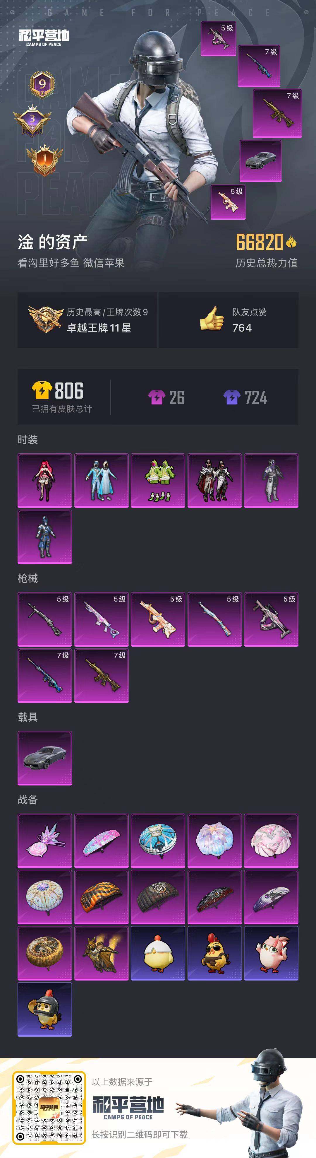 2379320-连体安卓王者-和平苹果地铁满天赋 微信-6粉装-7特效呛-1载具-2粉色飞行器-66820热力值-9王牌印记-149套装-209呛皮 【热门品类】:粉装-雪国幻梦,套装-忍者信条,套装-浪漫波比 【粉色套装】:粉装-幻影战神,粉装-水曜玄武,粉装-雪国幻梦,粉装-沙场疾风,粉装-恐龙拽拽,角色-绯穹魔姬 【粉色呛皮等级】:m416-五爪金龙七级,groza-镜光银凌五级