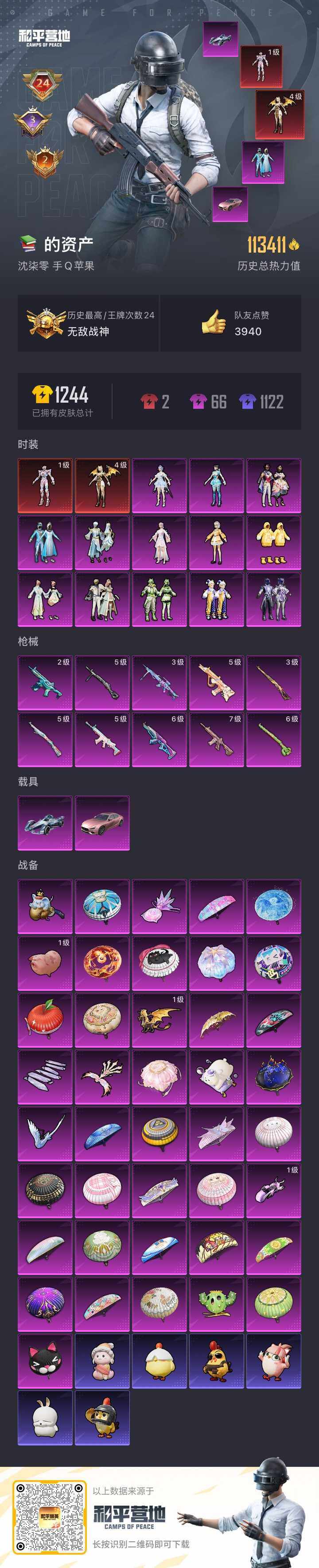 2379333-苹果q-可二次-地铁满天赋-连体王者荣耀-穿越火线-火影忍者v10账号-无敌战神框-2神装-13粉装-10特效呛-2载具-10粉色飞行器-113531热力值-24王牌印记-231套装-308呛皮 【红色神装等级】:最终圣卫者-帕修斯一级,圣域龙灵-瑞拉四级 【红色角色神装】:最终圣卫者-帕修斯,圣域龙灵-瑞拉 【热门品类】:粉装-雪国幻梦,套装-浪漫天命,套装-都市猎