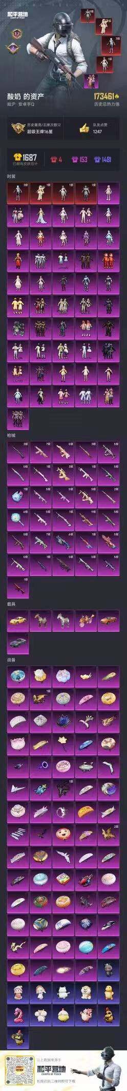 [15459233]时装数: 295 载具数: 6 呛械数: 443 战备数: 304 神级装扮: 银呛赵云镜域双华-欧若拉精灵之光-露米娜灵猫魔法师-塞维尔 热门装扮: 呆萌铁蟹快乐主宰深海小丑鱼缤纷油彩新星烈龙星之彼岸暗夜玫瑰洛天依暗星紫秘紫电风暴赤焰黑爵橘柚倾心复仇流浪者冰川红玫冰川幽秘激萌罗小黑动感兔斯基兔兔白日梦派对舞王仲夏莫吉托第五大道超级赛亚人孙悟空飒粉甜心黄族统领小可学妹白勺歌姬呆萌星弥天星战神璀璨巨星猩猩队长炫光之旅暗夜魅影勇猛狮王射星猎手无畏白羊宙之时溯暖暖奶龙紫钛骑兵冰炎战车熔岩统帅圣堂之誓小叽联名款猪猪侠繁龙极客烟云彩露严莉莉美雪美琪小蓝鸢尾晶梦千金淑猫智耀战神星穹咏叹调羊梦糖心 载具: 空客h135-蔚蓝之翼鬼马风驰兰博基尼estoque银翼灰宾利欧陆gt敞篷火焰橘赤兔照夜玉狮子拉轰奶龙龙 稀有呛皮: akm-绿萝繁花五级,scar-l-青春物语五级,scar-l-锦绣绵绵五级,m416-风花雪月一级,m416-至情至圣九级,m416-电玩时刻五级,groza-焦糖拿铁五级,groza-精灵之光三级,groza-镜光银凌五级,aug-星之彼岸五级,aug-暖羊咩咩五级,m762-青锋波束五级,ump45-相思残雪七级,vect-环太平洋六级,汤姆逊-怪笑疯兔五级,aks-74u-星穹咏叹调七级,p90-能量风暴五级,kar98k-巳巳如意五级,kar98k-圣域龙灵三级,m24-镜域双华二级,mk14-精灵梦叶罗丽五级,slr-暗夜玫瑰一级,amr-炫光之旅一级,m417-第五大道一级,dp-28-圣堂之誓一级,dp-28-千金淑猫一级,dp-28-豹影疾电三级,mg3-洛神天依五级,pkm-天星战神五级,平底锅-仲夏莫吉托六级