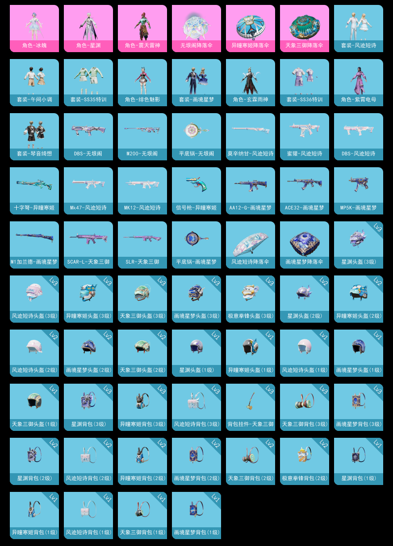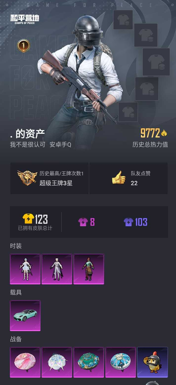 【和平精英】【lyhp19730】3粉装,0特效呛,1载具,历史最高段位:超级王牌3星 王牌印记1次 热力值:9772,16套装,27呛械,54装备,15战备;套装:角色-星渊,角色-冰魄,角色-震天雷神,套装-魅力单车,套装-王牌教练,角色-绯色魅影,套装-绒宝小鹅,套装-ss35特训,套装-午间小调,套装-风迹短诗,套装-琴音绮想,套装-画境星梦,角色-玄霖雨神,套装-ss36特训,角色-紫霄电母,套装-雪国风尚;呛皮:ace32-画境星梦,蜜獾-风迹短诗,m416-错位像素,scar-l-红色方程式,scar-l-天象三御,mk47-风迹短诗,akm-破晓战魂,m200-无垠阁,win94-乌木金纹,莫辛纳甘-风迹短诗,slr-天象三御,m1加兰德-画境星梦,mk20-h-狂鲨锋刃,mk12-风迹短诗,mk12-乌木金纹,mp5k-画境星梦,ump45-绒宝小鹅,aa12-g-画境星梦,dbs-无垠阁,dbs-风迹短诗,s12k-破晓战魂,信号呛-异瞳寒姬,平底锅-无垠阁,平底锅-画境星梦,破片手留单-爆破雪人,突击盾牌-绝对恒星,十子怒-异瞳寒姬;载具:保时捷panamera梦幻青;降落伞:登顶巅峰飞行器; 详情看图3粉装1载具 冰魄 星渊 保时捷