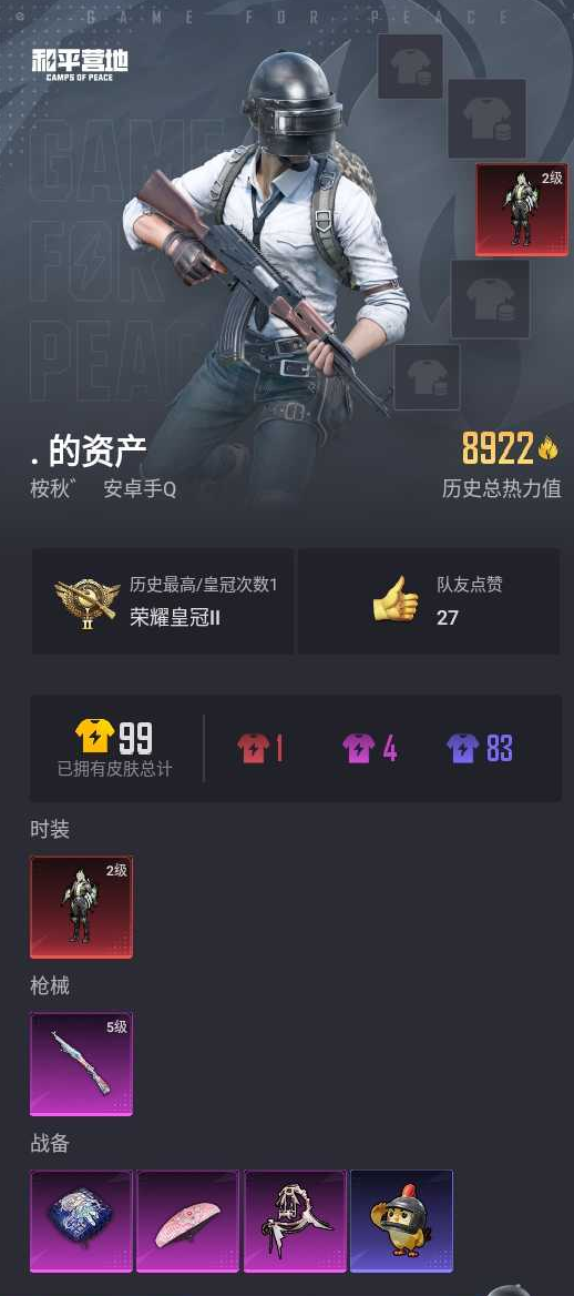 【和平精英】【lyhp19623】1红1特效呛 2级维塔 0粉装,1特效呛,0载具,历史最高段位:荣耀皇冠ⅱ 王牌印记-1次 热力值:8922,15套装,26呛械,35装备,14战备;套装:幽焰骑士-维塔,套装-长空猛禽,套装-森林游猎者,套装-鹤鸣,套装-战术大师,套装-电音精灵,套装-ss31特训,套装-鱼渊荷华,套装-燕燕于飞,套装-智谋强哥,套装-巳巳如意,套装-ss35特训,套装-琴音绮想,套装-画境星梦,套装-ss36特训;呛皮:ace32-画境星梦,q-洛神天依,groza-治愈之星,ac-val-天降萌叽,scar-l-玉兔迎春,5级kar98k-巳巳如意,m200-乌木金纹,m1加兰德-画境星梦,mk12-乌木金纹,vss-镭射皇者,mp5k-画境星梦,ump45-绒宝小鹅,野牛-燕燕于飞,vect-创世·救赎,vect-燕燕于飞,spas-12-燕燕于飞,aa12-g-画境星梦,mg-36-薄荷星砂,m249-冰晶雪宝,mg3-幻世战舞者,pkm-啾咪啾咪,dp-28-彩虹符号,蝎式手呛-燕燕于飞,大砍刀-脆鲨七海,平底锅-画境星梦,十子怒-燕燕于飞;降落伞:牡丹亭・游园飞行器; 详情看图