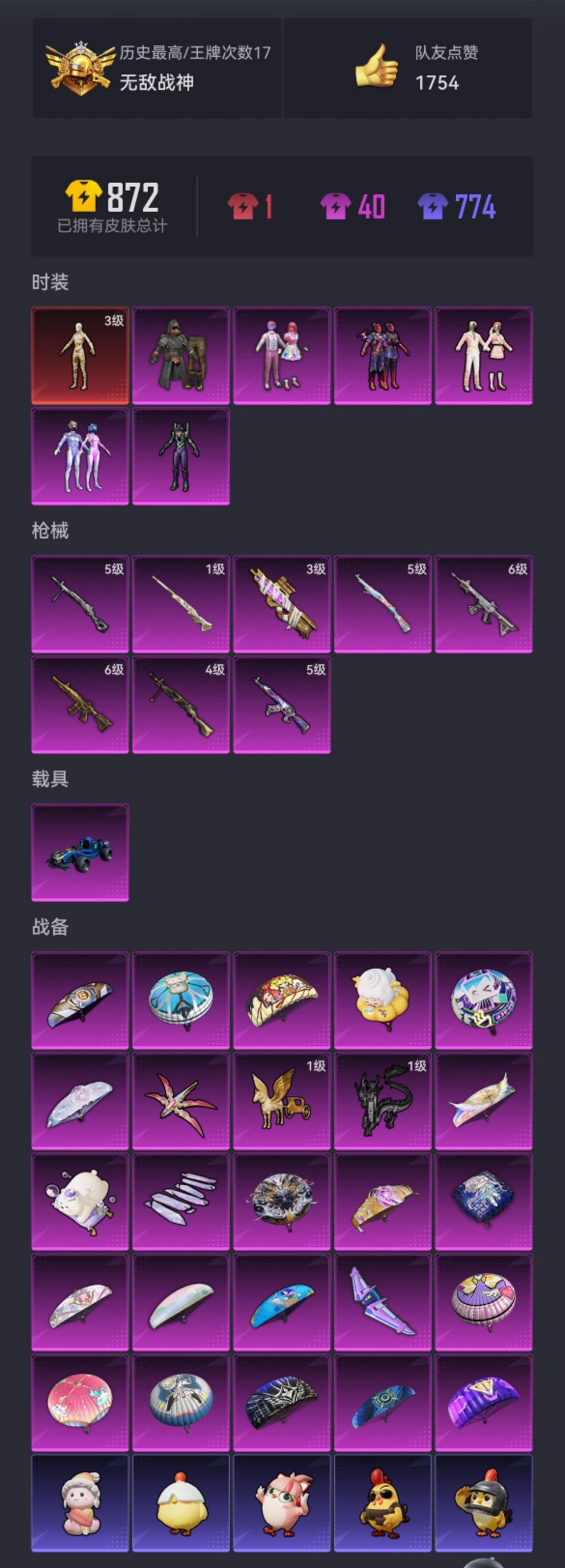 1载具-176套装-241呛皮-【3级图卡盟战神框m4超新星8特效呛6粉装1载具金鞋都市男神小熊背包猫包m4星际漫游身法素材号】 苹果v区-83503热力值-17印记-历史最高段位:无敌战神-176套装-241呛皮 【1红装】 沙丘之主-图卡盟3级【1载具】 合金龙骨蓝色【6稀有】 派对舞王 m416-星际漫游 派对舞王(金靴子) 都市猎人 萌熊伴侣背包(小熊背包) 百万伏待背包(猫包)【6粉装】 初号机