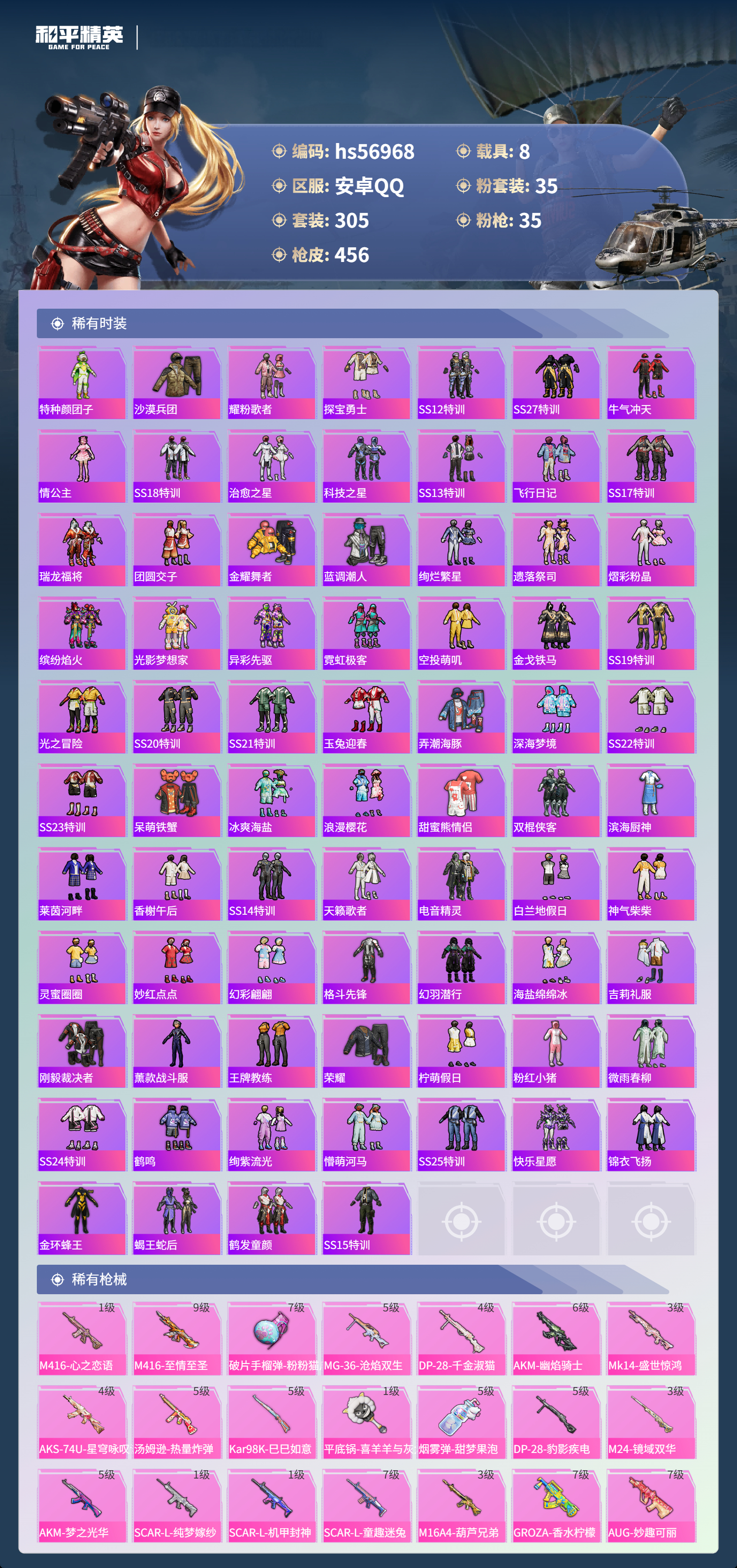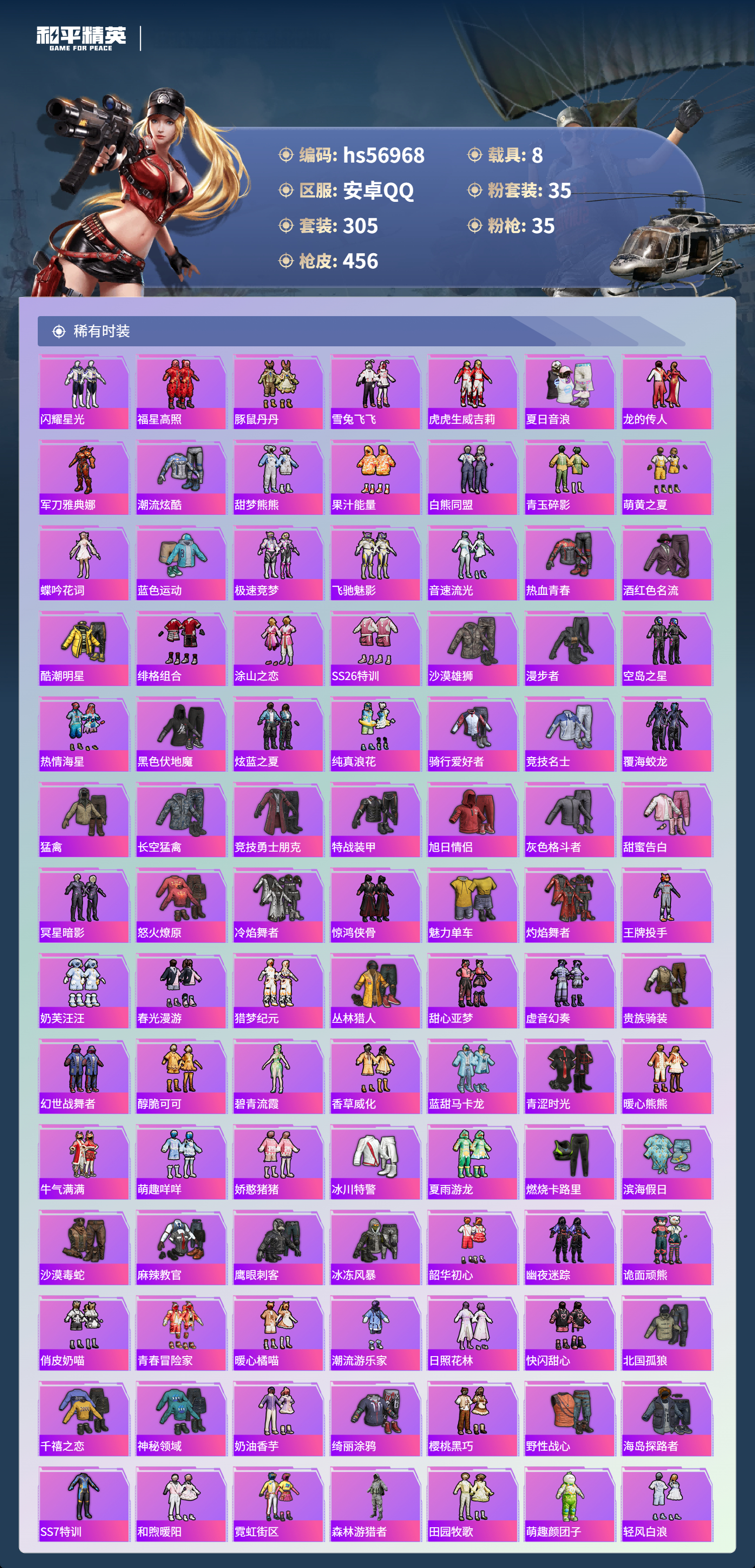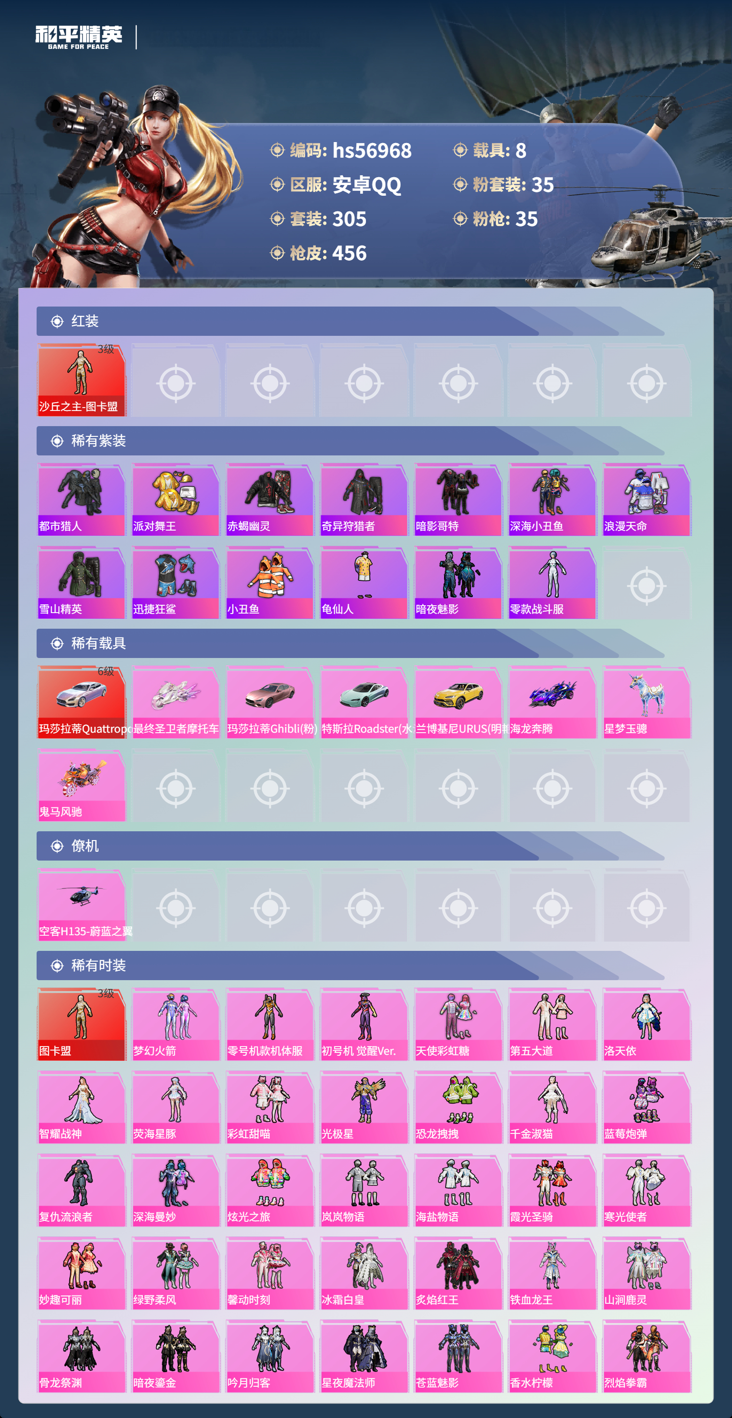 8载具-305套装-456呛皮-hs56968 安卓手q-19王牌印记-1红装-35粉装-35特效呛-8载具-热力值-305套装-456呛皮-9卓越印记-5传奇印记【1红装】沙丘之主-图卡盟/3级【35粉装】角色-荧海星豚套装-骨龙祭渊套装-天使彩虹糖套装-烈焰拳霸套装-苍蓝魅影套装-冰霜白皇套装-蓝莓炮弹角色-复仇流浪者套装-香水柠檬角色-零号机款机体服角色-智耀战神套装-炙焰红王套装-