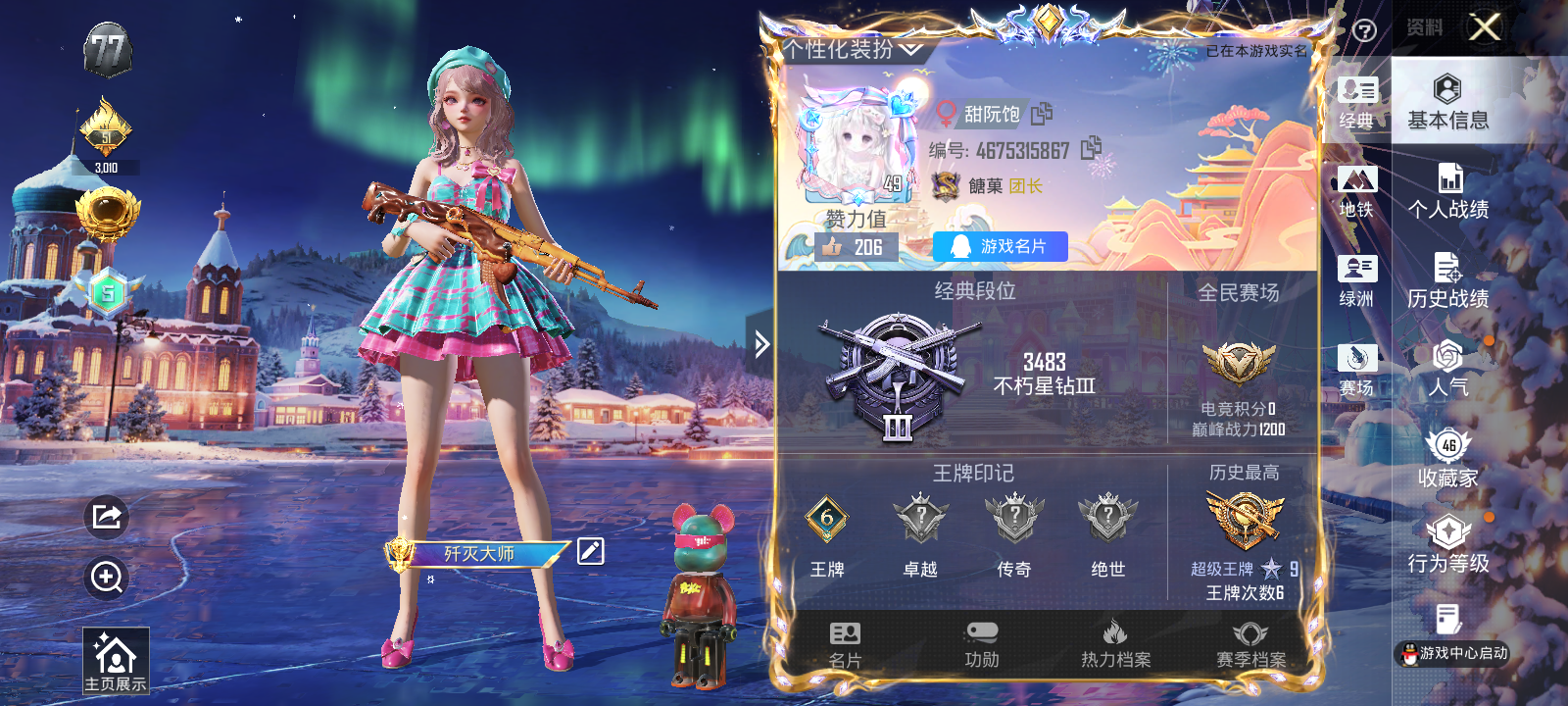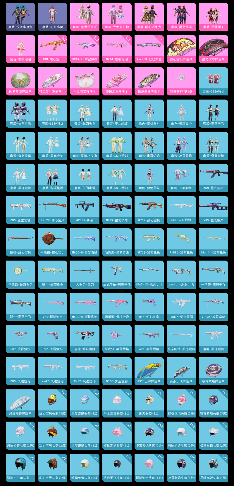 【和平精英】【txhp5966】6粉装,6特效呛,0载具,历史最高段位:超级王牌9星 王牌印记6次 热力值:32183,57套装,99呛械,111装备,61战备;套装:套装-甜心巧克力,套装-宝贝奶油派,套装-天使彩虹糖,套装-星之彼岸,套装-勇猛狮王,角色-樱桃泡泡,套装-黄色伏地魔,套装-白色伏地魔,套装-黑色伏地魔,套装-竞技名士,套装-长空猛禽,套装-旭日情侣,套装-特战装甲,套装-魅力单车,套装-深海小丑鱼,套装-缤纷果语,套装-粉红小猪,套装-破蛋小黄鸡,套装-战术大师,套装-快乐星愿,套装-光之冒险,套装-ss26特训,套装-空岛之星,套装-恋语绒绒,套装-ss29特训,套装-雏菊兔兔,套装-萝兰蝴蝶,角色-紫俏灵猫,套装-异域银装,角色-蜜桃派对,套装-星途旅人,角色-糖霜甜心,套装-ss30特训,套装-ss31特训,套装-鱼渊荷华,套装-燕燕于飞,套装-智谋强哥,套装-晶辉守护,套装-ss33特训,套装-巳巳如意,套装-ss32特训,套装-顶瓜瓜,套装-大橘大利,套装-星渊小夜曲,套装-炫彩糖果,套装-ss34特训,套装-擎苍青焰,套装-朱霞炽焰,套装-凌霄紫焰,套装-薄荷星砂,套装-ss35特训,套装-午间小调,套装-秘语星愿,套装-风迹短诗,套装-ss36特训,套装-超能元气,套装-萌鸡速递;呛皮:groza-影袭,groza-荧海星豚,aug-异域银装,aug-紫晶流影,famas-霓彩脉冲,famas-乌木金纹,3级scar-l-时空协奏,scar-l-炫彩节奏,scar-l-星途旅人,scar-l-海盐豹豹,m416-糯团青竹,m762-甜心宝贝,m762-天降萌叽,m762-雏菊兔兔,蜜獾-绯穹魔姬,蜜獾-鸡智如我,蜜獾-风迹短诗,蜜獾-乌木金纹,arx-凌霄紫焰,g36c-霁蓝缠春,7级akm-甜心宝贝,akm-星之彼岸,akm-霓彩脉冲,mk47-风迹短诗,m16a4-幻世战舞者,amr-鸡智如我,amr-乌木金纹,m24-樱桃泡泡,svd-霓彩脉冲,m200-乌木金纹,5级kar98k-巳巳如意,莫辛纳甘-风迹短诗,win94-乌木金纹,mini14-香桃花海,mini14-雏菊兔兔,vss-星之彼岸,slr-霓彩脉冲,mk12-风迹短诗,mk12-乌木金纹,mk20-h-星梦奇缘,mk20-h-星途旅人,mk20-h-樱桃泡泡,mk20-h-狂鲨锋刃,mk20-h-乌木金纹,m417-玩趣呆呆,sks-未来歌姬,6级mk14-樱桃泡泡,mk14-薄荷星砂,ump45-生命誓言,ump45-海盐豹豹,ump45-绒宝小鹅,uzi-啾咪啾咪,uzi-炫彩糖果,汤姆逊-星梦奇缘,汤姆逊-樱桃泡泡,aks-74u-乌木金纹,野牛-雏菊兔兔,野牛-燕燕于飞,p90-巳巳如意,p90-乌木金纹,js9-凌霄紫焰,vect-燕燕于飞,s12k-玩趣呆呆,s12k-霓彩脉冲,dbs-圣堂之誓,dbs-风迹短诗,s1897-糯团青竹,s686-巳巳如意,spas-12-燕燕于飞,spas-12-乌木金纹,mg-36-凌霄紫焰,mg-36-薄荷星砂,mg3-霓彩脉冲,5级dp-28-豹影疾电,dp-28-甜心宝贝,m249-星之彼岸,m249-彩虹符号,m249-糯团青竹,pkm-啾咪啾咪,蝎式手呛-燕燕于飞,r45-幻彩电音,r1895-雏菊兔兔,p92-凌霄紫焰,平底锅-甜心宝贝,平底锅-雏菊兔兔,平底锅-属我最6,平底锅-凌霄紫焰,大砍刀-鬼刀,撬棍-甜心宝贝,铝热弹-炫彩糖果,盐雾蛋-冰氧夏日,7级破片手留单-热量炸弹,破片手留单-呆爆全场,破片手留单-星途旅人,破片手留单-海盐豹豹,破片手留单-拽到爆炸,破片手留单-巳巳如意,十子怒-燕燕于飞,十子怒-异域银装;降落伞:赛博古神飞行器,炫彩糖果飞行器,异域银装飞行器,顶峰精英尾迹,狂鲨锋刃飞行器,破刃行动尾迹,鸡智如我飞行器; 详情看图6王牌印记 3.2w热力值 6粉(三巧 樱桃泡泡 深海小丑鱼)6特(满级热量炸弹 时空协奏 满级甜心宝贝)