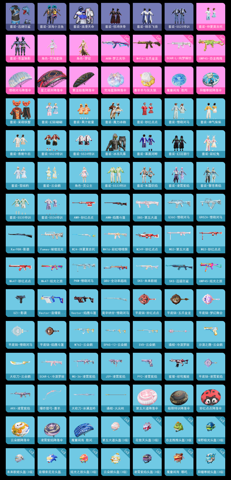 【和平精英】【txhp6006】4粉装,5特效呛,0载具,历史最高段位:超级王牌9星 王牌印记3次 热力值:29030,65套装,103呛械,121装备,40战备;套装:套装-苍蓝魅影,套装-仲夏莫吉托,角色-罗征,角色-荧海星豚,套装-特训学院,套装-白色伏地魔,套装-竞技名士,套装-长空猛禽,套装-海岛探路者,套装-浪漫天命,套装-冰冻风暴,套装-魅力单车,套装-耀眼新星,套装-都市漫游者,套装-野性战心,套装-幻世战舞者,套装-迅捷狂鲨,套装-呆萌铁蟹,套装-深海小丑鱼,套装-夏日倾情,套装-青涩时光,套装-缤纷果语,套装-梦魇先生,套装-破蛋小黄鸡,套装-鹤鸣,套装-魔力冰咖,套装-绯格组合,套装-ss23特训,角色-孙悟空,套装-莱茵河畔,套装-香榭午后,套装-神气柴柴,套装-懵萌河马,套装-妙红点点,套装-幻彩翩翩,套装-王牌教练,套装-柠萌假日,套装-ss24特训,套装-龟仙人,套装-ss25特训,套装-惊鸿侠骨,套装-锦衣飞扬,套装-果汁能量,套装-龙的传人,套装-漫游都市,套装-幻羽潜行,套装-街头风暴,角色-无面战甲,套装-ss33特训,套装-云朵鹅,套装-彩虹兔,套装-雪绒豹,角色-灵公主,套装-炫彩糖果,套装-元气之梦,套装-ss34特训,套装-擎苍青焰,套装-朱霞炽焰,套装-游乐,套装-凌霄紫焰,套装-薄荷星砂,套装-ss35特训,套装-ss36特训,套装-雪国风尚,套装-萌鸡速递;呛皮:groza-懵萌河马,groza-无面战甲,5级akm-梦之光华,akm-涂鸦街区,akm-龙的传人,akm-霓彩脉冲,akm-绿洲时空,m762-天降萌叽,m762-云朵鹅,mk47-妙红点点,mk47-炫光之旅,蜜獾-绯穹魔姬,5级m416-五爪金龙,m416-糯团青竹,m416-彩虹嘻嘻猴,5级scar-l-纯梦嫁纱,scar-l-夜灯,scar-l-彩虹符号,scar-l-冷漠罗丽,famas-璀璨流光,famas-霓彩脉冲,famas-乌木金纹,m16a4-蓝色火焰,m16a4-幻世战舞者,aug-天降萌叽,aug-异域银装,aug-紫晶流影,arx-凌霄紫焰,ac-val-乌木金纹,g36c-懵萌河马,svd-云朵鹅,svd-霓彩脉冲,莫辛纳甘-乌木金纹,莫辛纳甘-懵萌河马,m200-惊鸿侠骨,awm-天降萌叽,awm-焰鹰斗篷,amr-妙红点点,kar98k-影袭,m24-仲夏莫吉托,win94-乌木金纹,mk12-乌木金纹,qbu-全功率超战,sks-迅猛狂鲨,sks-未来歌姬,mk14-薄荷星砂,mini14-涂山之恋,mini14-鸡智如我,slr-霓彩脉冲,m417-惊鸿侠骨,m417-玩趣呆呆,mk20-h-狂鲨锋刃,vss-彩虹符号,aks-74u-鸡智如我,aks-74u-乌木金纹,4级ump45-恐龙拽拽,ump45-夜灯,ump45-生命誓言,ump45-炫光之旅,vect-音爆索尼克,vect-焰鹰斗篷,uzi-影袭,uzi-炫彩糖果,js9-凌霄紫焰,p90-乌木金纹,mp5k-乌木金纹,dbs-第五大道,dbs-彩虹符号,spas-12-狂鲨锋刃,spas-12-云朵鹅,s12k-夜灯,s12k-玩趣呆呆,s12k-霓彩脉冲,s1897-炫彩节奏,5级dp-28-豹影疾电,mg3-妙红点点,mg3-第五大道,mg3-惊鸿侠骨,pkm-懵萌河马,m249-妙红点点,m249-无面战甲,mg-36-凌霄紫焰,p1911-无面战甲,沙墨之鹦-云朵鹅,p92-凌霄紫焰,平底锅-五爪金龙,平底锅-妙红点点,平底锅-懵萌河马,平底锅-梦幻舞会,平底锅-惊鸿侠骨,平底锅-焰鹰斗篷,平底锅-凌霄紫焰,大砍刀-云朵鹅,大砍刀-冰澜龙吟,撬棍-冷漠罗丽,撬棍-火尖呛,爆炸猎弓-惊鸿侠骨,爆炸猎弓-喜羊羊与灰太狼,盐雾蛋-冰氧夏日,盐雾蛋-冰澜龙吟,铝热弹-炫彩糖果,破片手留单-拽到爆炸,破片手留单-火尖莲影;降落伞:炫彩糖果飞行器,鸡智如我飞行器,登顶巅峰飞行器; 详情看图3王牌印记 2.9w热力值 4粉 5特 莫吉托 盈海星豚 深海小丑鱼 5级五爪m4 5级纯梦scarl 5级梦之光华ak 4级恐龙拽拽ump45