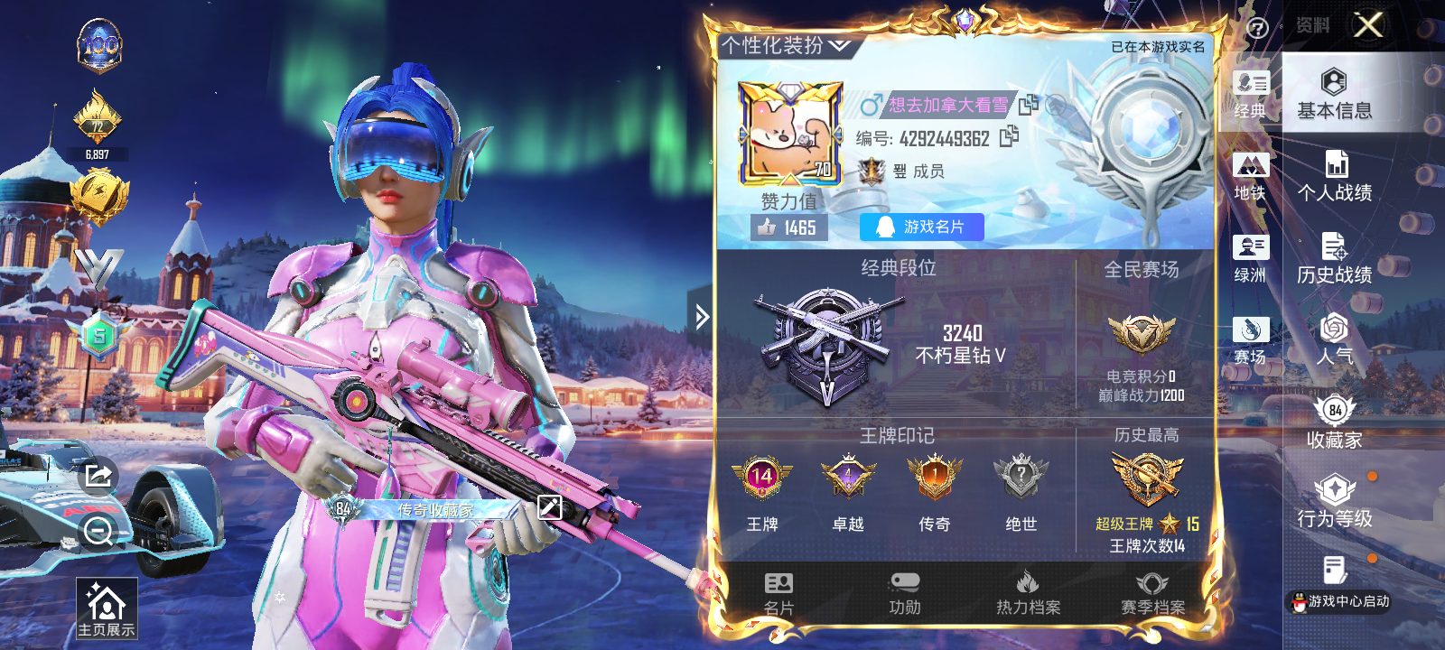 【和平精英】【txhp6004】16粉装,8特效呛,9载具,历史最高段位:超级王牌15星 王牌印记14次 热力值:123436,235套装,329呛械,483装备,173战备;套装:套装-深渊皇后,套装-梦幻火箭,套装-铁血龙王,套装-苍蓝魅影,角色-洛天依,角色-2号机款机体服,套装-暗星紫秘,角色-复仇流浪者,套装-旋转彩虹,套装-暗夜鎏金,套装-挚爱序曲,套装-第五大道,套装-未来歌姬,套装-金丰海韵,角色-异瞳寒姬,角色-星渊,套装-红色运动,套装-黄色运动,套装-蓝色运动,套装-骑行爱好者,套装-竞技名士,套装-湖蓝色名流,套装-黄色名流,套装-长空猛禽,套装-竞技勇士朋克,套装-黎明保卫者,套装-蓝色守护者,套装-海岛探路者,套装-旭日情侣,套装-冷焰舞者,套装-浪漫天命,套装-特战装甲,套装-战地菁英,套装-灰色格斗者,套装-春日漫步,套装-龙腾端午,套装-幻影武者,套装-海滨突袭者,套装-神秘领域,套装-魅力单车,套装-坚韧舞者,套装-夜莺强袭者,套装-都市漫游者,套装-野性战心,套装-野性战魂,套装-荣耀,套装-风行保卫者,套装-热血青春,套装-沙漠兵团,套装-雪山精英,套装-幻世战舞者,套装-暗影哥特,套装-甜蜜熊情侣,套装-青涩时光,套装-缤纷果语,套装-alan walker,套装-龙魂突击队,套装-灿烂千阳,套装-星河浪客,套装-元素星魂,套装-胖达圆圆,套装-冷血极客,套装-ss3特训,套装-粉红小猪,套装-破蛋小黄鸡,套装-疯狂小兔子,套装-深蓝冒险家,套装-迷域探索者,套装-ss5特训,套装-浪漫波比,套装-金鼠迎春,套装-北国孤狼,套装-ss6特训,套装-ss7特训,套装-鹤鸣,套装-霓虹街区,套装-ss8特训,套装-智慧之神,套装-神秘黑猫,套装-白熊同盟,套装-萌黄之夏,套装-超能拳王,套装-夏日音浪,套装-ss9特训,套装-探宝勇士,套装-辉星之火,套装-红红火火,套装-牛气满满,套装-ss11特训,套装-怪笑疯兔,套装-诡面顽熊,套装-青春冒险家,套装-潮流游乐家,套装-诡谋托雷基亚,套装-原初圣火,套装-逆风勇士,套装-萌趣颜团子,套装-特种颜团子,套装-战术大师,套装-ss12特训,套装-牛气冲天,套装-ss18特训,套装-镭射皇者,套装-银白舞王,套装-耀粉歌者,套装-暗黑裁决,套装-迅捷之星,套装-治愈之星,套装-科技之星,套装-飞行日记,套装-ss13特训,套装-曼妙人鱼,套装-热情海星,套装-纯真浪花,套装-冰爽海盐,套装-闪银刀客,套装-ss14特训,套装-天籁歌者,套装-电音精灵,套装-吉莉礼服,角色-明日香款战斗服,角色-真理款战斗服,角色-薰款战斗服,套装-暖风夏荷,套装-蝎王蛇后,套装-ss15特训,套装-ss16特训,套装-暴风机械师,套装-时空追击者,角色-英勇保护者,套装-ss17特训,套装-瑞龙福将,套装-团圆交子,套装-福星高照,套装-雪兔飞飞,套装-虎虎生威吉莉,套装-缤纷焰火,套装-异彩先驱,套装-霓虹极客,套装-魔力冰咖,套装-糖果砰砰,套装-绿野极光,套装-空投萌叽,套装-ss19特训,套装-沁蓝冰爽,套装-飞驰魅影,套装-音速流光,套装-炫蓝之夏,套装-ss20特训,套装-甜心亚梦,套装-虚音幻奏,套装-ss21特训,套装-暖心熊熊,套装-萌趣咩咩,套装-娇憨猪猪,套装-荷畔雨呱,套装-俏皮奶喵,套装-酸甜橘柚,套装-玉兔迎春,套装-ss22特训,套装-和煦暖阳,套装-田园牧歌,套装-轻风白浪,套装-碧波幻想,套装-绚烂繁星,套装-软萌比丢,套装-抹茶罗小黑,套装-萌酷罗小黑,套装-光之冒险,套装-绯格组合,套装-ss23特训,套装-摩登艾咪,套装-飞狐塔尔斯,套装-香榭午后,套装-甜梦熊熊,套装-神气柴柴,套装-懵萌河马,套装-灵蜜圈圈,套装-妙红点点,套装-幻彩翩翩,套装-跃动晴空,套装-王牌教练,套装-柠萌假日,套装-青玉碎影,套装-ss24特训,套装-绚紫流光,套装-华灯初上,套装-春野茶蘼,套装-青芒树下,套装-龟仙人,套装-涂山之恋,套装-ss25特训,套装-金戈铁马,套装-惊鸿侠骨,套装-锦衣飞扬,套装-绝对偶像,套装-元气发射,套装-龙的传人,套装-冰河战士,套装-焰鹰斗篷,套装-幽夜迷踪,套装-幻羽潜行,套装-ss27特训,套装-恋语绒绒,套装-老实芭蕉,套装-ss28特训,玩偶服-卖崽青蛙,角色-多纳泰罗,角色-白光莹,角色-银尘,套装-海盐绵绵冰,套装-ss29特训,角色-绯色魅影,套装-ss31特训,套装-鱼渊荷华,套装-石蕴玉辉,套装-燕燕于飞,套装-紫幽梦,套装-粉恋花,套装-ss33特训,套装-ss32特训,套装-蓝冰羽,套装-大橘大利,套装-星影赞美诗,玩偶服-懒羊羊,套装-ss34特训,套装-朱霞炽焰,套装-凌霄紫焰,套装-薄荷星砂,套装-ss35特训,套装-琴音绮想,套装-画境星梦,套装-书海巡游,套装-阳光菠萝,套装-ss36特训;呛皮:q-原初圣火,q-赛罗,q-彩虹符号,q-洛神天依,q-飞驰魅影,q-银碳小老虎,q-未来歌姬,q-纯真浪花,q-绒兔团圆,q-乌木金纹,7级akm-星际浪客,akm-生命誓言,akm-破晓战魂,akm-霓虹街区,akm-夜灯,akm-四圣焕新,akm-彩虹符号,akm-萌趣颜团子,akm-虎虎生威,akm-环太平洋,akm-筑梦精灵,akm-星兔领航员,akm-龙的传人,akm-乌木金纹,7级scar-l-梦幻火箭,scar-l-炫彩节奏,scar-l-玉兔迎春,scar-l-海盐豹豹,scar-l-乌木金纹,m762-绯红前夜,m762-牛气冲天,m762-镭射皇者,m762-瑞龙福将,m762-风花雪月,m762-暗夜鎏金,m762-天降萌叽,m762-乌木金纹,groza-黑色刀锋,groza-治愈之星,groza-彩虹符号,groza-异彩先驱,groza-恐龙拽拽,groza-田园牧歌,groza-懵萌河马,groza-海盐豹豹,groza-乌木金纹,m16a4-夜灯,m16a4-甜心亚梦,m16a4-幻世战舞者,m16a4-莲影清波,m16a4-冰河战士,m16a4-乌木金纹,5级m416-电玩时刻,m416-夜灯,m416-红色方程式,m416-滑板小狐,m416-糯团青竹,m416-绿野极光,m416-乌木金纹,aug-耀粉歌者,aug-青春冒险家,aug-