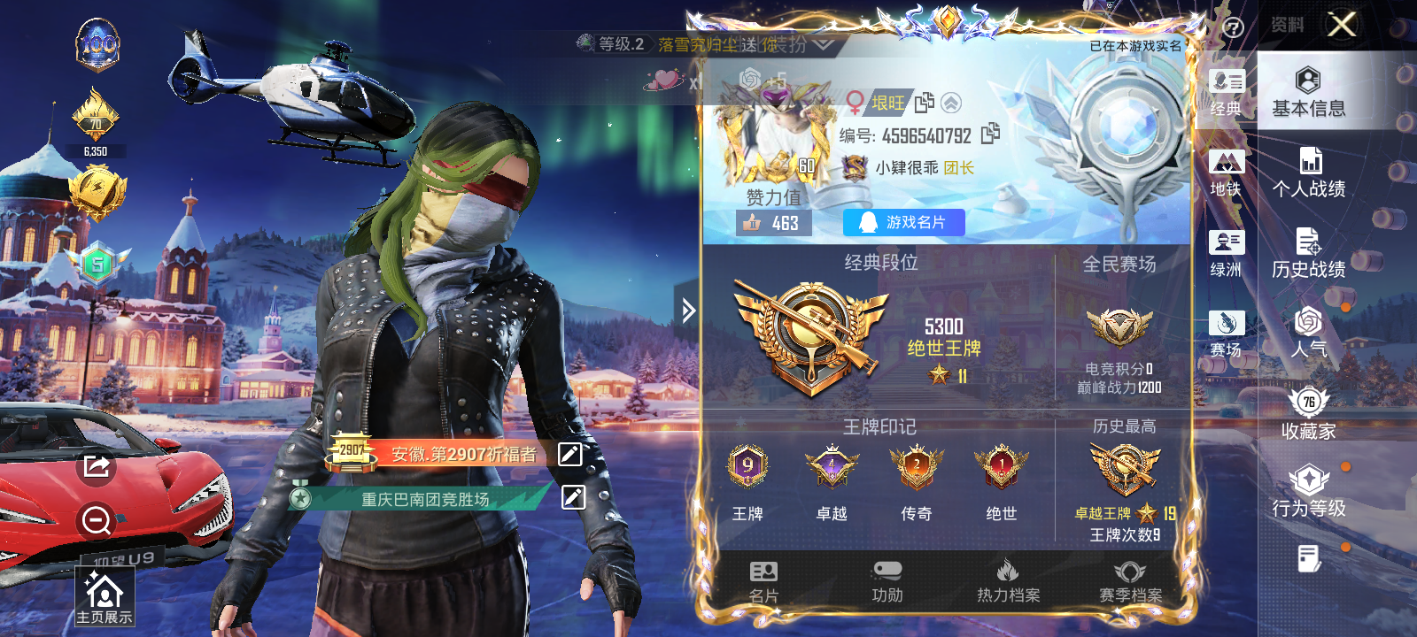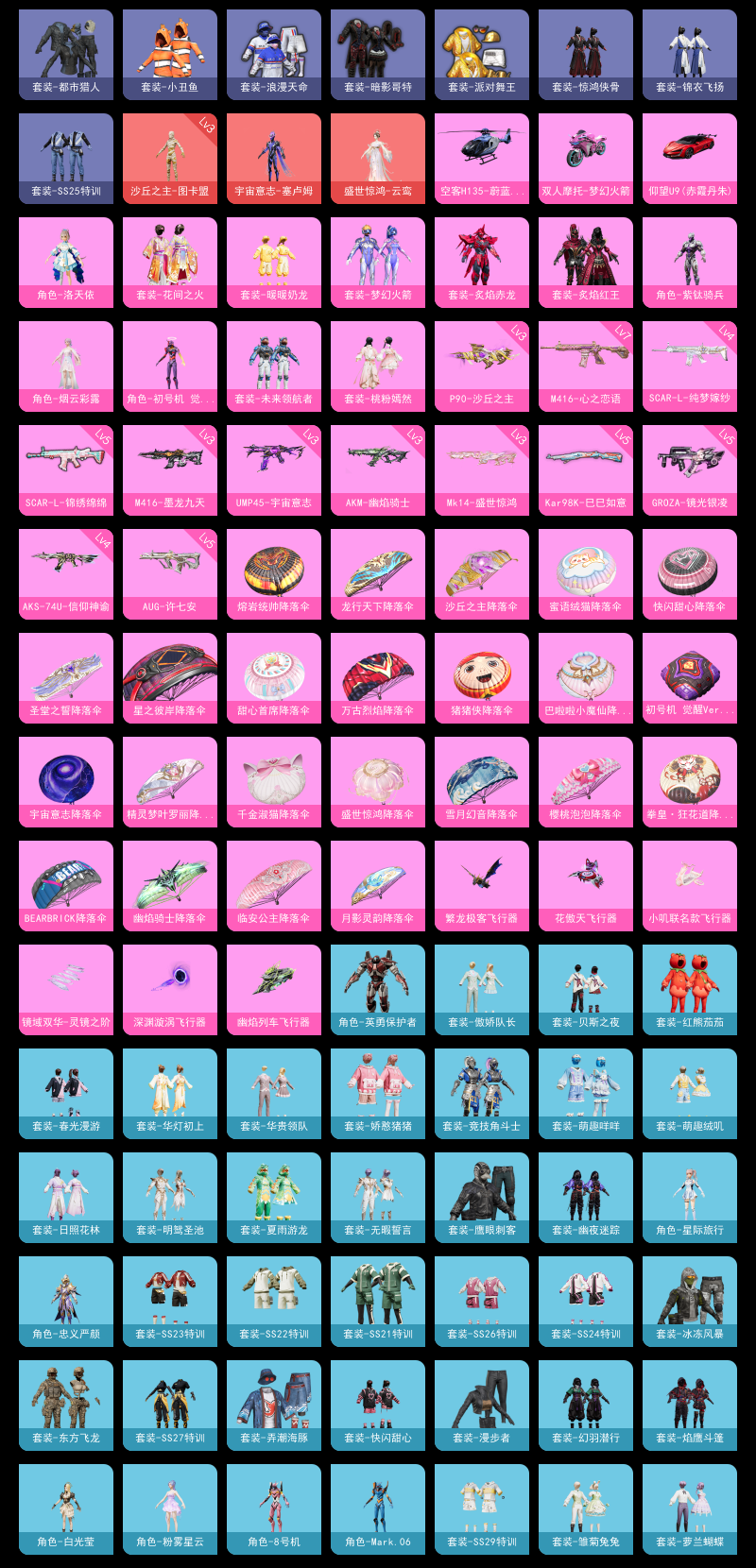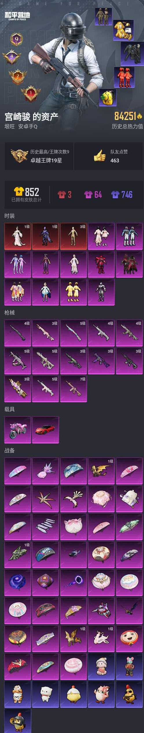 【和平精英】【lyhp19827】11粉装,13特效呛,2载具,历史最高段位:卓越王牌19星 王牌印记9次 热力值:84251,147套装,235呛械,308装备,133战备;套装:沙丘之主-图卡盟,宇宙意志-塞卢姆,盛世惊鸿-云鸾,套装-梦幻火箭,套装-花间之火,套装-炙焰红王,角色-洛天依,套装-炙焰赤龙,角色-紫钛骑兵,套装-暖暖奶龙,角色-烟云彩露,套装-桃粉嫣然,角色-初号机 觉醒ver.,套装-未来领航者,套装-蓝色运动,套装-竞技名士,套装-湖蓝色名流,套装-长空猛禽,套装-漫步者,套装-海岛探路者,套装-都市猎人,套装-浪漫天命,套装-甜蜜告白,套装-鹰眼刺客,套装-冰冻风暴,套装-千禧之恋,套装-魅力单车,套装-耀眼新星,套装-都市漫游者,套装-狂沙舞者,套装-派对舞王,套装-酷潮明星,套装-幻世战舞者,套装-清新柠檬,套装-暗影哥特,套装-弄潮海豚,套装-青涩时光,套装-缤纷果语,套装-龙魂突击队,套装-小丑鱼,套装-东方飞龙,套装-破蛋小黄鸡,套装-疯狂小兔子,套装-鹤鸣,套装-霓虹街区,套装-牛气满满,套装-战术大师,套装-飞行日记,套装-竞技角斗士,套装-曼妙人鱼,套装-热情海星,套装-纯真浪花,套装-吉莉礼服,角色-英勇保护者,套装-ss21特训,套装-萌趣咩咩,套装-娇憨猪猪,套装-夏雨游龙,套装-红熊茄茄,套装-ss22特训,套装-光之冒险,套装-绯格组合,套装-ss23特训,套装-王牌教练,套装-柠萌假日,套装-ss24特训,套装-华灯初上,套装-日照花林,套装-龟仙人,套装-涂山之恋,套装-ss25特训,套装-惊鸿侠骨,套装-锦衣飞扬,套装-香桃花海,套装-龙的传人,套装-冰河战士,套装-ss26特训,套装-快闪甜心,套装-春光漫游,套装-空岛之星,套装-无暇誓言,套装-明鸳圣池,角色-星际旅行,套装-萌趣绒叽,套装-傲娇队长,套装-华贵领队,套装-贝斯之夜,角色-忠义严颜,套装-焰鹰斗篷,套装-幽夜迷踪,套装-幻羽潜行,套装-ss27特训,套装-恋语绒绒,套装-老实芭蕉,套装-ss28特训,套装-alan walker电音教主,玩偶服-卖崽青蛙,角色-听雨铃兰,角色-迎夏光舞,角色-粉雾星云,角色-白光莹,角色-8号机,角色-mark.06,套装-街头风暴,套装-海盐绵绵冰,套装-蝶变,套装-湖畔霞光,套装-粉日山川,套装-小熊娃娃,套装-ss29特训,套装-雏菊兔兔,角色-狂花道·雅典娜,套装-萝兰蝴蝶,套装-滑板物语,角色-摩登魅猫,角色-蜜桃派对,套装-星途旅人,角色-许七安,角色-怀庆长公主,角色-临安公主,套装-ss30特训,套装-青团波波,套装-棉花软糖,角色-光矢逐梦,套装-糖糖葫芦,套装-裁决天象,套装-黑曜寓言,套装-绒宝小鹅,套装-ss31特训,套装-鱼渊荷华,套装-燕燕于飞,套装-智谋强哥,角色-瑰梦爱神,套装-紫幽梦,套装-粉恋花,套装-巳巳如意,套装-ss32特训,套装-蓝冰羽,套装-ss34特训,套装-ss35特训,套装-琴音绮想,套装-画境星梦,套装-书海巡游,角色-玄霖雨神,套装-阳光菠萝,套装-ss36特训,套装-雪国风尚;呛皮:4级scar-l-纯梦嫁纱,5级scar-l-锦绣绵绵,scar-l-红色方程式,scar-l-夜灯,scar-l-彩虹符号,scar-l-玉兔迎春,scar-l-是爱神辣,scar-l-粉锦千层,scar-l-星途旅人,scar-l-海盐豹豹,m16a4-幻世战舞者,m16a4-莲影清波,m16a4-冰河战士,m16a4-天使羽翼,3级akm-幽焰骑士,akm-影袭,akm-破晓战魂,akm-霓虹街区,akm-彩虹符号,akm-恐龙拽拽,akm-龙的传人,7级m416-心之恋语,3级m416-墨龙九天,m416-蓝色火焰,m416-红色方程式,m416-糯团青竹,蜜獾-娇憨猪猪,蜜獾-天降萌叽,蜜獾-精灵梦叶罗丽,蜜獾-糖糖葫芦,蜜獾-乌木金纹,ace32-画境星梦,5级groza-镜光银凌,groza-影袭,groza-黑色刀锋,groza-海盐豹豹,famas-突变脉冲,famas-墨龙九天,5级aug-许七安,aug-甜蜜菠萝,aug-耀粉歌者,aug-绝对恒星,ac-val-乌木金纹,ac-val-快闪甜心,ac-val-宇宙意志,m762-甜心宝贝,m762-彩虹符号,m762-天降萌叽,m762-萌物绒绒,m762-雏菊兔兔,m762-滑板物语,mk47-百万伏特,mk47-乌木金纹,q-纯真浪花,m24-影袭,m24-炫彩节奏,m24-天降萌叽,m24-乌木金纹,5级kar98k-巳巳如意,kar98k-红色方程式,kar98k-影袭,kar98k-彩虹符号,kar98k-顶峰精英,awm-焰鹰斗篷,awm-纯真浪花,awm-盛世惊鸿,莫辛纳甘-乌木金纹,莫辛纳甘-蜜语绒猫,莫辛纳甘-镭金极速,m200-惊鸿侠骨,m200-宇宙意志,m200-滑板物语,m200-乌木金纹,amr-超新星,amr-墨龙九天,amr-乌木金纹,win94-乌木金纹,slr-娇憨猪猪,slr-彩虹符号,slr-守护天翼,mk20-h-快闪甜心,mk20-h-星途旅人,mk20-h-糖糖葫芦,mk20-h-狂鲨锋刃,mk20-h-乌木金纹,sks-迅猛狂鲨,sks-心之恋语,sks-炫彩节奏,sks-糯团青竹,sks-冠军兔兔,mk12-乌木金纹,3级mk14-盛世惊鸿,mk14-乌木金纹,mk14-冰河战士,mk14-电糖天使,mk14-猪猪侠,mk14-紫幽梦,mk14-阳光菠萝,mini14-梦幻火箭,mini14-炫彩节奏,mini14-耀粉歌者,mini14-涂山之恋,mini14-香桃花海,mini14-雏菊兔兔,vss-香桃花海,m1加兰德-画境星梦,m417-惊鸿侠骨,qbu-全功率超战,野牛-沙丘之主,野牛-雏菊兔兔,野牛-燕燕于飞,3级ump45-宇宙意志,ump45-夜灯,ump45-蓝色火焰,ump45-涂山之恋,ump45-猪猪侠,ump45-糖糖葫芦,ump45-绒宝小鹅,uzi-红色方程式,uzi-影袭,uzi-幻影战神,uzi-娇憨猪猪,uzi-天降萌叽,uzi-冰河战士,uzi-啾咪啾咪,uzi-盛世惊鸿,uzi-月影灵韵,4级aks-74u-信仰神谕,aks-74u-乌木金纹,汤姆逊-幻影战神,汤姆逊-耀粉歌者,汤姆逊-炫彩节奏,汤姆逊-暗夜鎏金,汤姆逊-天降萌叽,汤姆逊-纯真浪花,汤姆逊-幽焰骑士,vect-生命誓言,vect-焰鹰斗篷,vect-英伦信使,vect-燕燕于飞,3级p90-沙丘之主,p90-快闪甜心,p90-玩趣呆呆,p90-巳巳如意,p90-乌木金纹,mp5k-画境星梦,mp5k-乌木金纹,s686-红色方程式,s686-彩虹符号,s686-蜜语绒猫,s686-巳巳如意,s12k-夜灯,s12k-娇憨猪