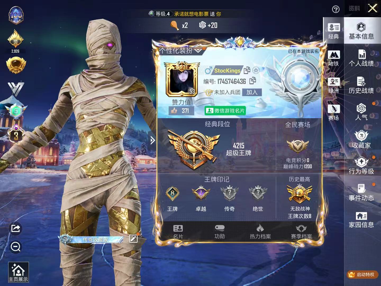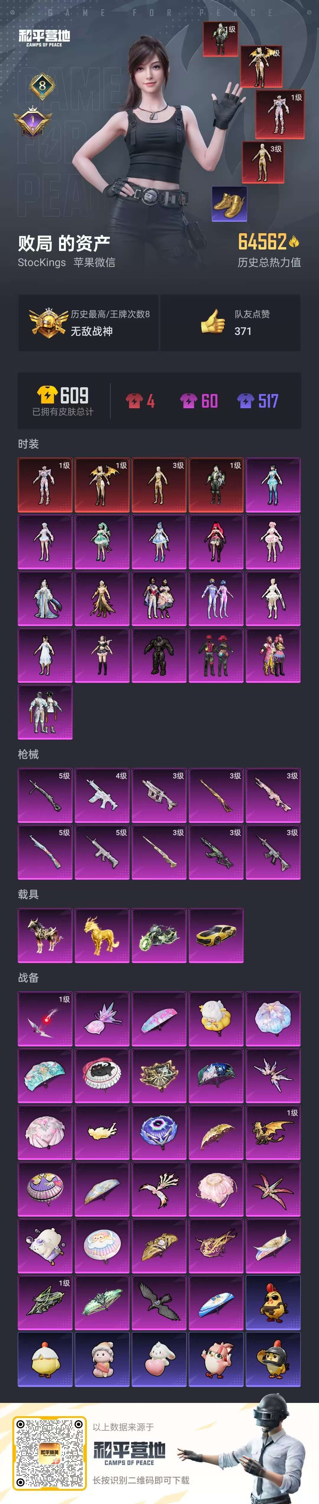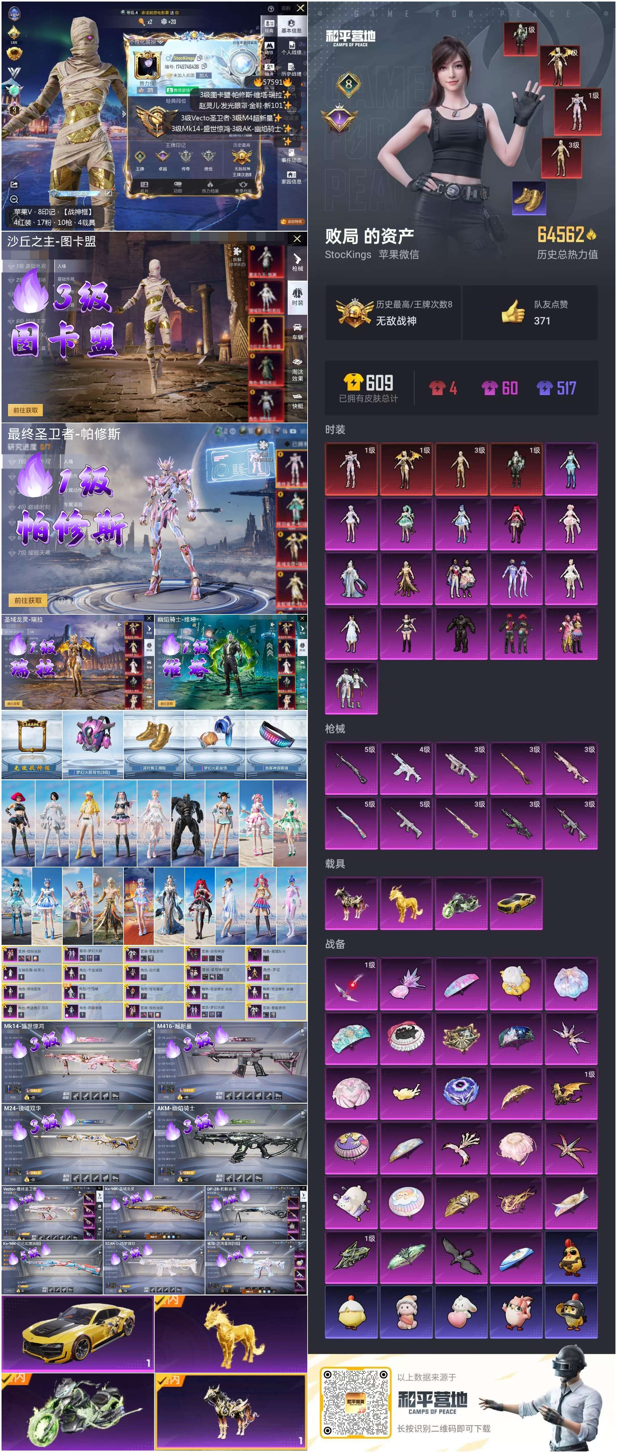 hs57591 苹果微信-8王牌印记-有战神框-4红装-17粉装-10特效呛-4载具-65815热力值-103套装-168呛皮-1卓越印记【4红装】沙丘之主-图卡盟/3级圣域龙灵-瑞拉/1级最终圣卫者-帕修斯/1级幽焰骑士-维塔/1级【17粉装】角色-异瞳寒姬角色-奇迹舞步 美琪套装-梦幻火箭角色-奇迹舞步 美雪角色-猩猩队长女娲后裔-赵灵儿角色-白兰星角色-荧海星豚角色