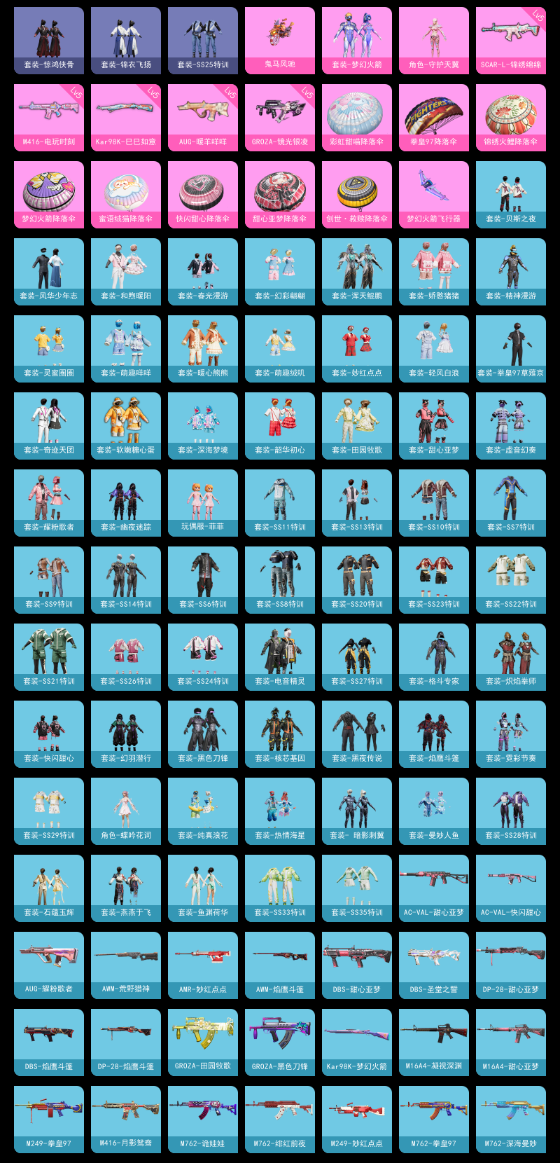 【和平精英】【txhp6061】2粉装,5特效呛,1载具,历史最高段位:超级王牌4星 王牌印记14次 热力值:57795,153套装,182呛械,214装备,125战备;套装:套装-梦幻火箭,角色-守护天翼,套装-特训学院,套装-猎鹰,套装-青年教官,套装-红色运动,套装-黄色运动,套装-蓝色运动,套装-黄色伏地魔,套装-白色伏地魔,套装-黑色伏地魔,套装-骑行爱好者,套装-竞技名士,套装-深蓝色名流,套装-酒红色名流,套装-黄色名流,套装-长空猛禽,套装-竞技勇士朋克,套装-蓝色守护者,套装-海岛探路者,套装-冷焰舞者,套装-特战装甲,套装-战地菁英,套装-甜蜜告白,套装-蓝彩潮人,套装-酷萌兔限定,套装-怒火燎原,套装-魅力单车,套装-绮丽涂鸦,套装-雪山征服者,套装-坚韧舞者,套装-夜莺强袭者,套装-都市魅力,套装-热血青春,套装-丛林猎人,套装-ss2特训,套装-雪山精英,套装-传奇侦探,套装-极地朋克,套装-幻世战舞者,套装-龙魂突击队,套装-冰川特警,套装-麻辣教官,套装-ss3特训,套装-ss4特训,套装-梦魇先生,套装-黑夜传说,套装-破蛋小黄鸡,套装-疯狂小兔子,套装-ss5特训,套装-圣诞大吉,套装-冰原使者,套装-凛冬战士,套装-金鼠迎春,套装-军械专家,套装-北国孤狼,套装-ss6特训,套装-拳皇97草薙京,套装-炽焰拳师,套装-格斗专家,套装-奇迹天团,套装-跃动心情,套装-ss7特训,套装-黑色刀锋,套装-核芯基因,套装-精神漫游,套装-霓虹街区,套装-软嫩糖心蛋,套装-ss10特训,套装-ss8特训,套装-白熊同盟,套装-萌黄之夏,套装-夏日音浪,套装-ss9特训,套装-风华少年志,套装-探宝勇士,套装-牛气满满,套装-韶华初心,套装-ss11特训,套装-战术大师,套装-牛气冲天,套装-耀粉歌者,套装-飞行日记,套装-ss13特训,套装-曼妙人鱼,套装-热情海星,套装-纯真浪花,套装-ss14特训,套装-电音精灵,套装-ss20特训,套装-浑天鲲鹏,套装-甜心亚梦,套装-虚音幻奏,套装-ss21特训,套装-暖心熊熊,套装-萌趣咩咩,套装-娇憨猪猪,套装-玉兔迎春,套装-ss22特训,套装-和煦暖阳,套装-田园牧歌,套装-轻风白浪,套装-光之冒险,套装-ss23特训,套装-灵蜜圈圈,套装-妙红点点,套装-幻彩翩翩,套装-王牌教练,套装-柠萌假日,套装-ss24特训,套装-龟仙人,套装-ss25特训,套装-惊鸿侠骨,套装-锦衣飞扬,套装-双彩绵绵,套装-深海梦境,套装-龙的传人,套装-ss26特训,套装-快闪甜心,套装-春光漫游,套装-空岛之星,套装-萌趣绒叽,套装-贝斯之夜,玩偶服-菲菲,套装-焰鹰斗篷,套装-幽夜迷踪,套装-幻羽潜行,套装-ss27特训,套装-幽幻花璃,套装-恋语绒绒,套装-老实芭蕉,套装-ss28特训,角色-蝶吟花词,套装暗影刺翼,套装-海盐绵绵冰,套装-ss29特训,套装-霓彩节奏,角色-无面战甲,套装-ss30特训,套装-暗夜风云,套装-蓝调潮影,套装-纯白跃动,套装-ss31特训,套装-鱼渊荷华,套装-石蕴玉辉,套装-燕燕于飞,套装-智谋强哥,套装-ss33特训,套装-巳巳如意,套装-ss32特训,套装-炫彩糖果,套装-ss34特训,套装-ss35特训;呛皮:5级scar-l-锦绣绵绵,scar-l-炫彩节奏,scar-l-玉兔迎春,scar-l-海盐豹豹,scar-l-乌木金纹,mk47-乌木金纹,mk47-妙红点点,m16a4-蓝色火焰,m16a4-凝视深渊,m16a4-甜心亚梦,m16a4-幻世战舞者,m16a4-乌木金纹,akm-灼热熔岩,akm-霓虹街区,akm-夜灯,akm-彩虹符号,akm-龙的传人,akm-霓彩节奏,akm-砺玉逐花,akm-乌木金纹,蜜獾-娇憨猪猪,蜜獾-天降萌叽,蜜獾-乌木金纹,m762-绯红前夜,m762-诡娃娃,m762-拳皇97,m762-深海曼妙,m762-天降萌叽,m762-乌木金纹,ac-val-甜心亚梦,ac-val-乌木金纹,ac-val-天降萌叽,ac-val-快闪甜心,5级m416-电玩时刻,m416-蓝色火焰,m416-红色方程式,m416-月影鸳鸯,m416-糯团青竹,m416-乌木金纹,famas-乌木金纹,5级aug-暖羊咩咩,aug-耀粉歌者,aug-异域银装,aug-冰晶雪宝,aug-乌木金纹,q-诡娃娃,q-纯真浪花,q-乌木金纹,5级groza-镜光银凌,groza-黑色刀锋,groza-田园牧歌,groza-无面战甲,groza-乌木金纹,awm-荒野猎神,awm-天降萌叽,awm-焰鹰斗篷,awm-纯真浪花,awm-乌木金纹,m24-冰封烈焰,莫辛纳甘-乌木金纹,莫辛纳甘-银碳小老虎,莫辛纳甘-蜜语绒猫,5级kar98k-巳巳如意,kar98k-梦幻火箭,kar98k-彩虹符号,amr-妙红点点,amr-乌木金纹,m200-惊鸿侠骨,m200-乌木金纹,win94-乌木金纹,mini14-金鼠迎春,mini14-梦幻火箭,mini14-炫彩节奏,mini14-耀粉歌者,mini14-乌木金纹,vss-华贵君王,vss-黑色刀锋,vss-田园牧歌,sks-夜灯,sks-糯团青竹,sks-乌木金纹,mk20-h-快闪甜心,mk20-h-星途旅人,mk20-h-狂鲨锋刃,mk20-h-乌木金纹,slr-娇憨猪猪,slr-彩虹符号,slr-守护天翼,mk14-乌木金纹,m417-惊鸿侠骨,mp5k-乌木金纹,ump45-蓝色火焰,ump45-生命誓言,ump45-粉色回忆,ump45-诡娃娃,ump45-乌木金纹,vect-生命誓言,vect-黑色刀锋,vect-彩虹符号,vect-田园牧歌,vect-焰鹰斗篷,vect-燕燕于飞,vect-乌木金纹,uzi-娇憨猪猪,uzi-天降萌叽,uzi-冰河战士,uzi-啾咪啾咪,uzi-霓彩节奏,uzi-炫彩糖果,uzi-乌木金纹,野牛-燕燕于飞,p90-快闪甜心,p90-巳巳如意,p90-乌木金纹,aks-74u-鸡智如我,汤姆逊-耀粉歌者,汤姆逊-纯真浪花,s1897-春暖花开,s1897-炫彩节奏,s12k-娇憨猪猪,s12k-垂柳戏鸭,s12k-幻世战舞者,s12k-玩趣呆呆,s12k-乌木金纹,s686-冰封烈焰,s686-蜜语绒猫,s686-巳巳如意,s686-乌木金纹,spas-12-田园牧歌,spas-12-燕燕于飞,spas-12-乌木金纹,dbs-甜心亚梦,dbs-圣堂之誓,dbs-焰鹰斗篷,dbs-乌木金纹,aa12-g-纯真浪花,dp-28-彩虹符号,dp-28-甜心亚梦,dp-28-焰鹰斗篷,dp-28-乌木金纹,mg3-幻世战舞者,mg3-乌木金纹,mg3-妙红点点,mg3-惊鸿侠骨,m249-拳皇97,m249-彩虹符号,m249-妙红点点,m249-无面战甲,m249-乌木金纹,pkm-啾咪啾咪,