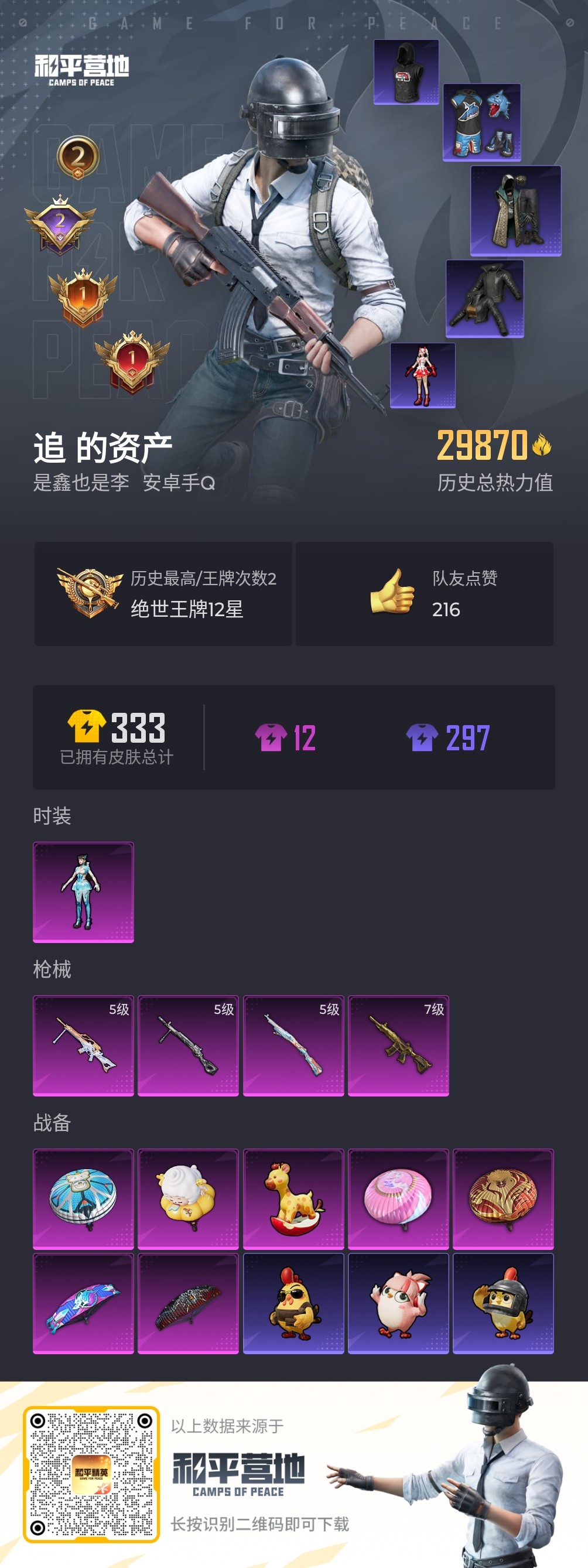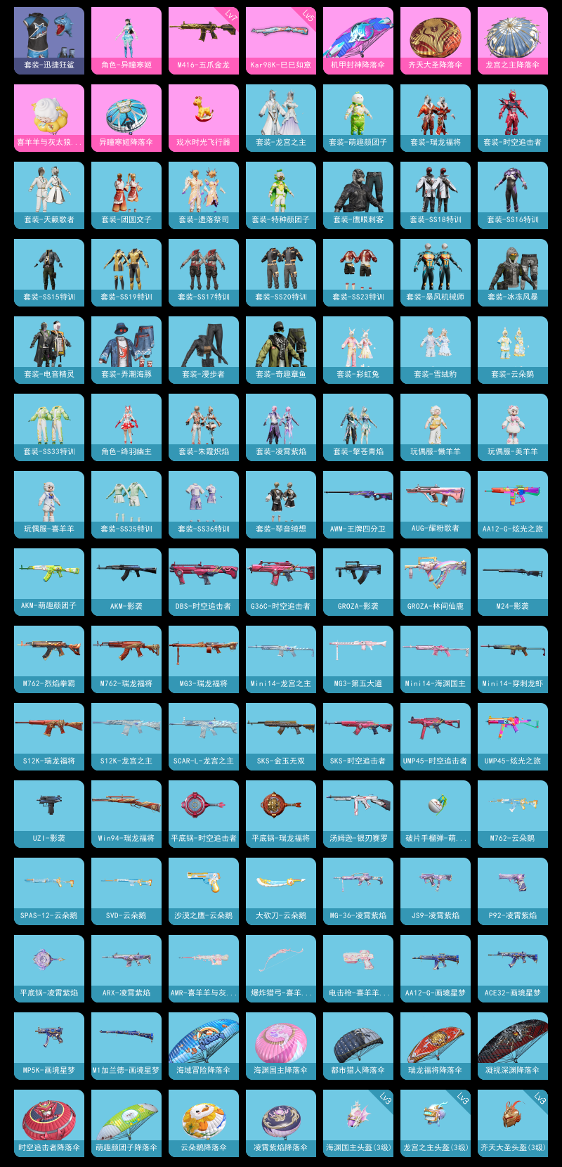 【和平精英】【txhp6073】1粉装,4特效呛,0载具,历史最高段位:绝世王牌12星 王牌印记2次 热力值:29870,72套装,95呛械,98装备,54战备;套装:角色-异瞳寒姬,套装-黄色运动,套装-蓝色运动,套装-白色伏地魔,套装-竞技名士,套装-湖蓝色名流,套装-长空猛禽,套装-漫步者,套装-蓝色守护者,套装-旭日情侣,套装-六六大吉,套装-灼焰舞者,套装-青羽突袭者,套装-滨海假日,套装-沙漠毒蛇,套装-鹰眼刺客,套装-冰冻风暴,套装-幻世战舞者,套装-奇趣章鱼,套装-弄潮海豚,套装-迅捷狂鲨,套装-甜蜜熊情侣,套装-缤纷果语,套装-滨海厨神,套装-冰川特警,套装-格斗先锋,套装-海上生明月,套装-白熊同盟,套装-夏日音浪,套装-探宝勇士,套装-萌趣颜团子,套装-特种颜团子,套装-战术大师,套装-ss18特训,套装-天籁歌者,套装-电音精灵,套装-吉莉礼服,套装-龙宫之主,套装-ss15特训,套装-ss16特训,套装-暴风机械师,套装-时空追击者,套装-ss17特训,套装-瑞龙福将,套装-团圆交子,套装-福星高照,套装-遗落祭司,套装-虎虎生威吉莉,套装-ss19特训,套装-ss20特训,套装-ss23特训,套装-柠萌假日,套装-漫游都市,角色-绛羽幽主,套装-ss31特训,套装-ss33特训,套装-云朵鹅,套装-巳巳如意,套装-彩虹兔,套装-雪绒豹,玩偶服-懒羊羊,玩偶服-喜羊羊,玩偶服-美羊羊,套装-元气之梦,套装-ss34特训,套装-擎苍青焰,套装-朱霞炽焰,套装-凌霄紫焰,套装-薄荷星砂,套装-ss35特训,套装-琴音绮想,套装-ss36特训;呛皮:7级m416-五爪金龙,m416-红色方程式,m416-糯团青竹,famas-霓彩脉冲,famas-乌木金纹,akm-影袭,akm-彩虹符号,akm-萌趣颜团子,akm-虎虎生威,akm-霓彩脉冲,groza-影袭,groza-林间仙鹿,g36c-时空追击者,g36c-乌木金纹,scar-l-红色方程式,scar-l-龙宫之主,m762-烈焰拳霸,m762-瑞龙福将,m762-天降萌叽,m762-云朵鹅,aug-耀粉歌者,ace32-画境星梦,m16a4-幻世战舞者,arx-凌霄紫焰,莫辛纳甘-乌木金纹,win94-瑞龙福将,win94-乌木金纹,m24-影袭,m24-乌木金纹,5级kar98k-巳巳如意,kar98k-红色方程式,kar98k-乌木金纹,amr-喜羊羊与灰太狼,awm-王牌四分卫,awm-天降萌叽,svd-云朵鹅,mk12-乌木金纹,mk14-乌木金纹,mk14-薄荷星砂,sks-金玉无双,sks-炫彩节奏,sks-时空追击者,mini14-穿刺龙虾,mini14-龙宫之主,mini14-海渊国主,slr-彩虹符号,m1加兰德-画境星梦,p90-巳巳如意,mp5k-画境星梦,ump45-蓝色火焰,ump45-时空追击者,ump45-炫光之旅,ump45-绒宝小鹅,aks-74u-鸡智如我,aks-74u-乌木金纹,uzi-影袭,uzi-炫彩节奏,uzi-啾咪啾咪,野牛-夜灯,野牛-乌木金纹,vect-生命誓言,js9-凌霄紫焰,汤姆逊-银刃赛罗,aa12-g-炫光之旅,aa12-g-画境星梦,s1897-乌木金纹,spas-12-云朵鹅,dbs-时空追击者,s12k-龙宫之主,s12k-瑞龙福将,s12k-霓彩脉冲,s686-生命誓言,m249-冰晶雪宝,m249-乌木金纹,mg3-瑞龙福将,mg3-幻世战舞者,mg3-第五大道,5级dp-28-豹影疾电,dp-28-彩虹符号,5级mg-36-沧焰双生,mg-36-凌霄紫焰,mg-36-薄荷星砂,电击呛-喜羊羊与灰太狼,p92-凌霄紫焰,沙墨之鹦-云朵鹅,平底锅-时空追击者,平底锅-瑞龙福将,平底锅-凌霄紫焰,大砍刀-云朵鹅,破片手留单-萌趣颜团子,破片手留单-呆爆全场,破片手留单-拽到爆炸,爆炸猎弓-喜羊羊与灰太狼,十子怒-异域银装,盐雾蛋-冰氧夏日;降落伞:戏水时光飞行器; 详情看图2印记(绝世)-2.9w热力值-1粉-4特 青羽上衣 漫步者 鲨鱼裤 满级五爪m4