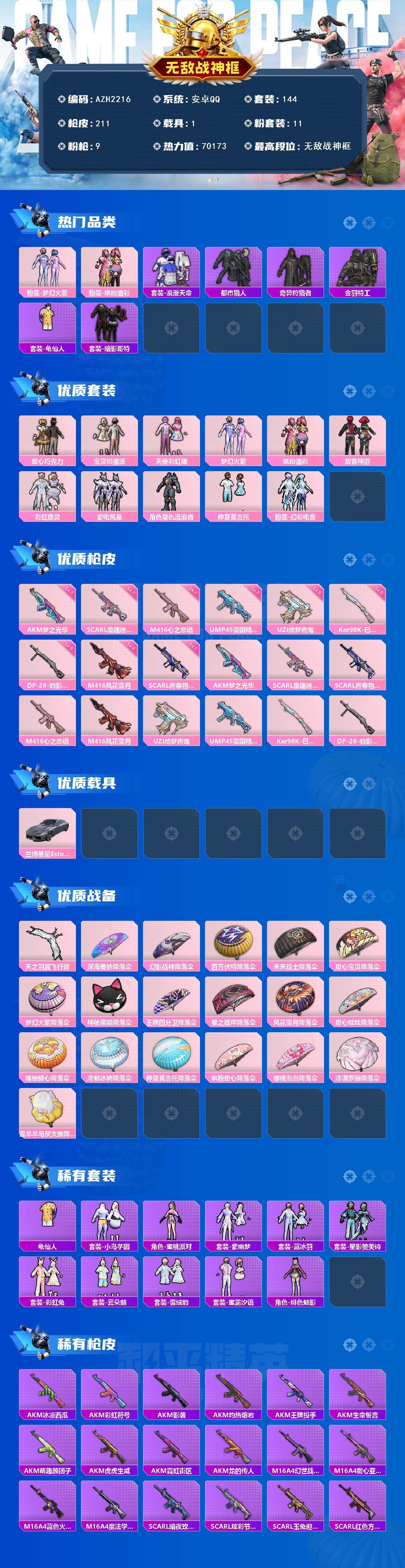 1载具-144套装-211呛皮-安卓 手q【无敌战神框 梦幻火箭巧克力三姐妹猪脸放客神游都市 满级梦之光华akm满级童趣迷兔scar-l满级心之恋语m416满级雪国精灵ump45 1载具】无敌战神框-11粉装-9特效呛-1载具-2粉色飞行器-70173热力值-14王牌印记-144套装-211呛皮 【热门品类】:粉装-梦幻火箭,粉装-缤纷油彩,套装-浪漫天命,套装-都市猎人,套装-奇异狩猎者,套装-金羽特工,套装-龟仙人,套装
