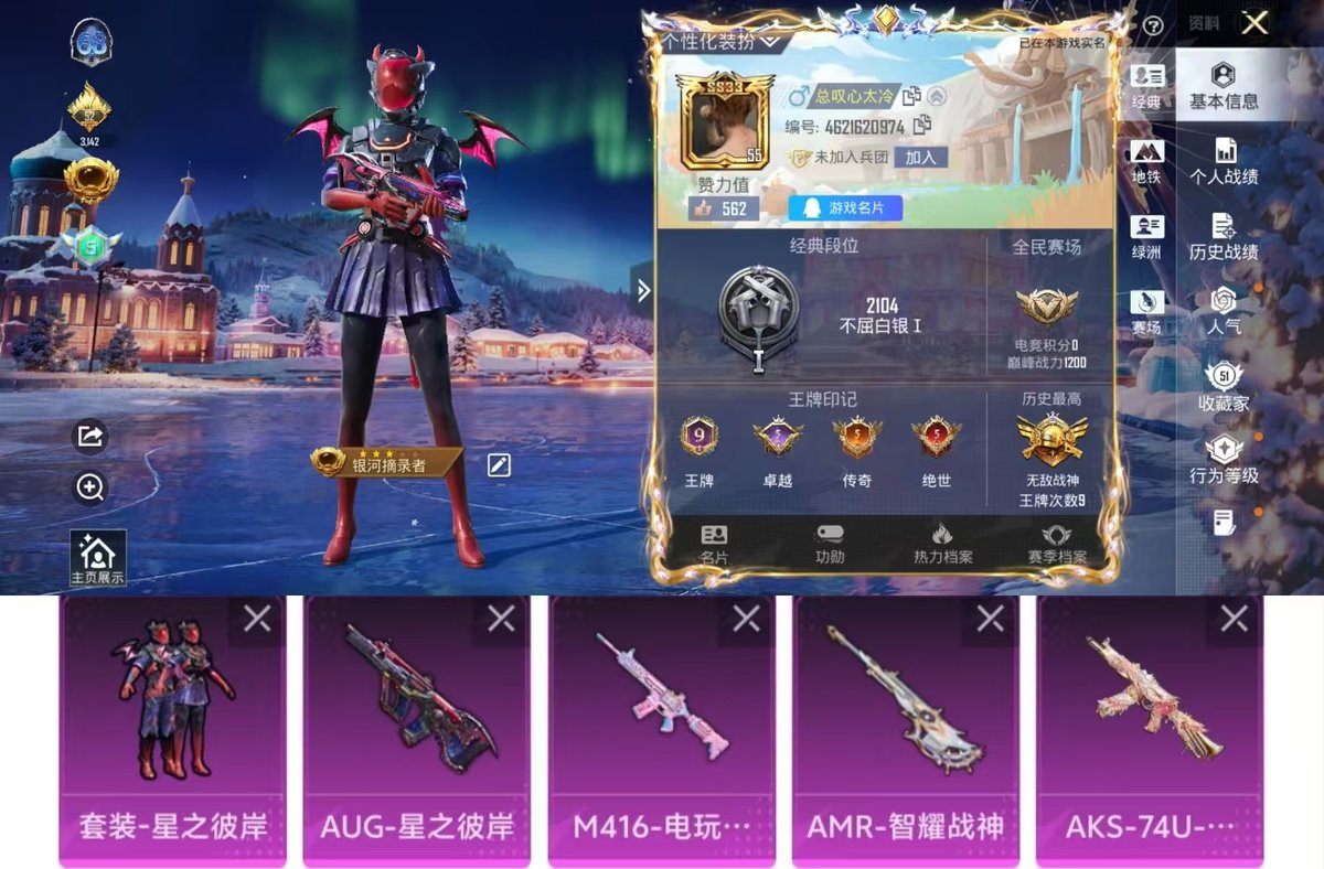 _2387643-无敌战神框实名:可修改时装数:348呛械数:135战备数:80热门装扮:星之彼岸萨利娅星穹咏叹调稀有呛皮:aug星之彼岸m416电玩时刻ump45量子极限kar98k-巳巳如意amr-智耀战神aks-74u-星穹咏叹调dp-28-豹影疾电