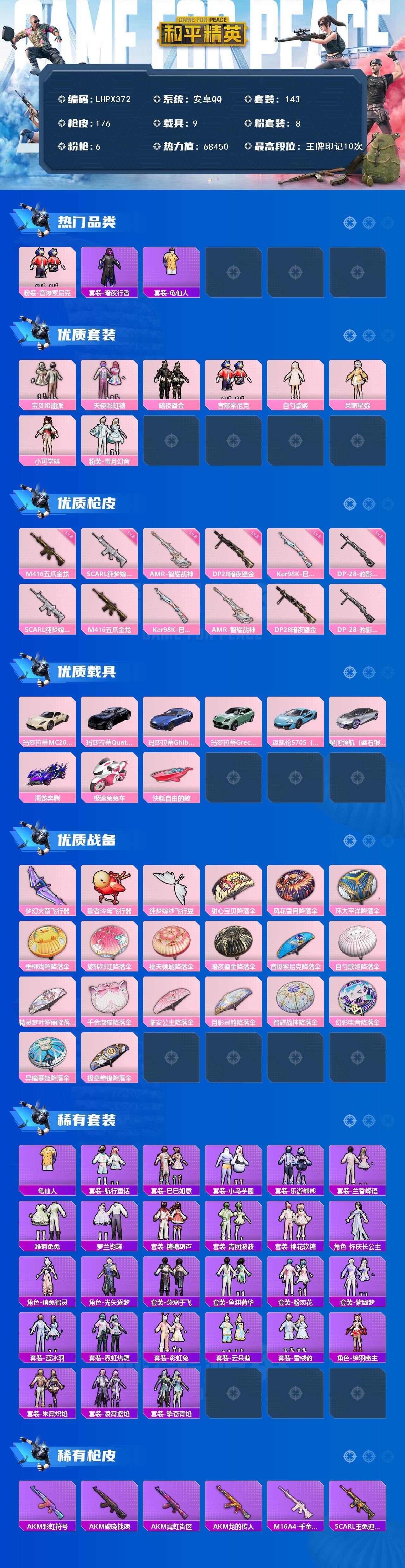 9载具-143套装-176呛皮-安卓 手q-8粉装-6特效呛-9载具-4粉色飞行器-68450热力值-10王牌印记-143套装-176呛皮 【热门品类】:粉装-音爆索尼克,套装-暗夜行者,套装-龟仙人 【粉色套装】:粉装-宝贝奶油派,粉装-天使彩虹糖,粉装-暗夜鎏金,粉装-音爆索尼克,角色-白勺歌姬,角色-呆萌星弥,角色-小可学妹
