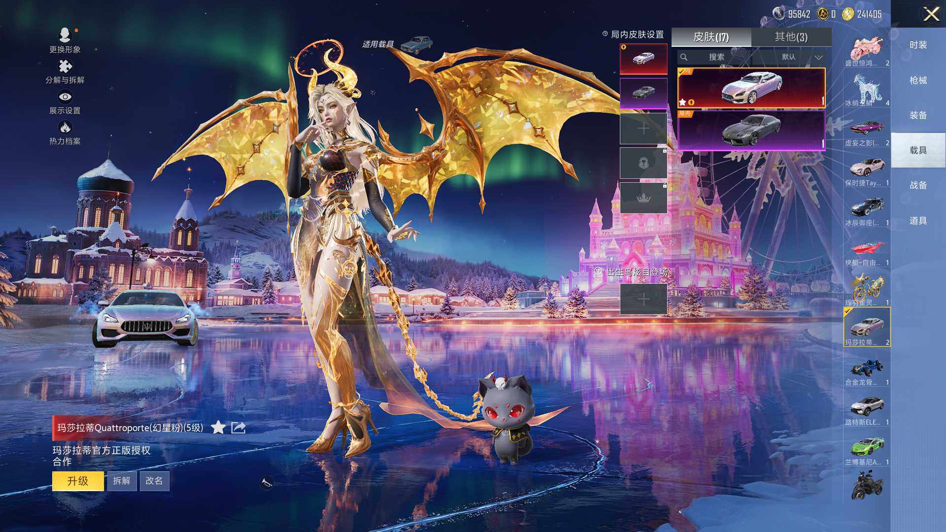 17载具-245套装-343呛皮-【特价出售/店主推荐】带1.3k红装碎片苹果 微信-4神装-42粉装-31特效呛-17载具-21粉色飞行器-热力值-19王牌印记-245套装-343呛皮 【红色载具】:玛莎拉蒂quattropte(幻星粉)五级 【红色神装等级】:魔童闹海-哪吒一级,圣域龙灵-瑞拉六级,金