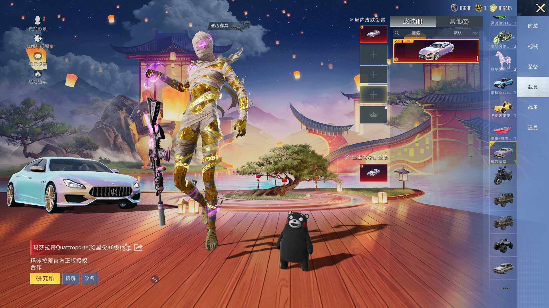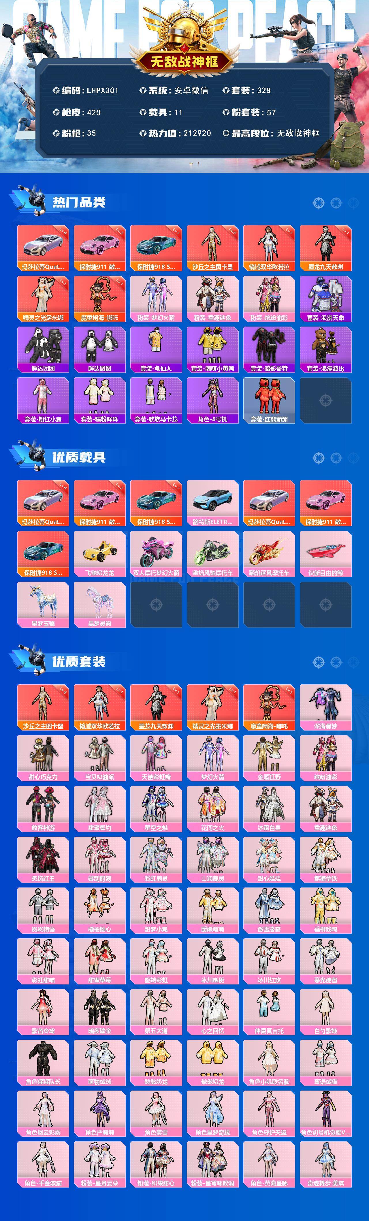 11载具-328套装-420呛皮-5套6级红装可随意切换!【特价出售/店主推荐】无敌战神框 安卓 微信-5神装-57粉装-35特效呛-11载具-25粉色飞行器-热力值-19王牌印记-328套装-420呛皮 【红色载具】:玛莎拉蒂quattropte(幻星粉)六级,保时捷911 敞篷版(小暴龙)三级,保时捷9