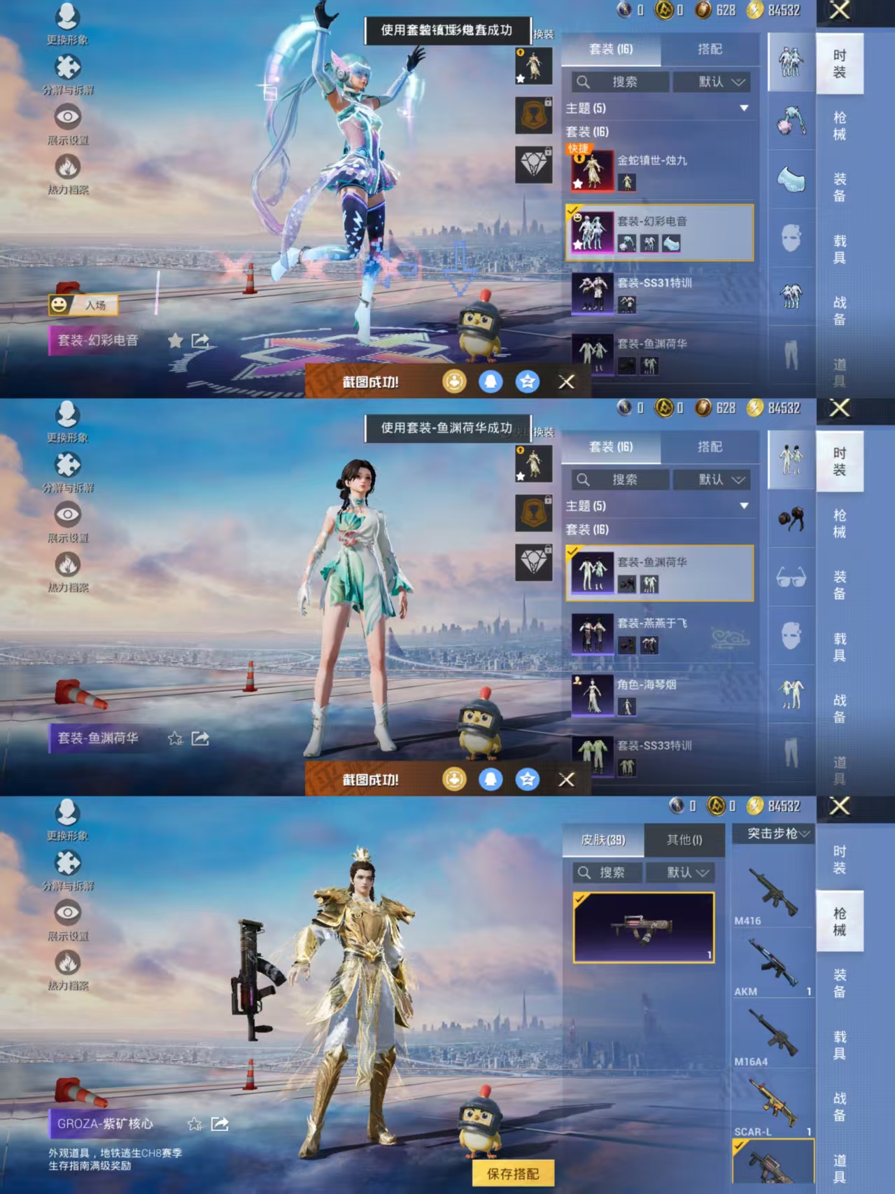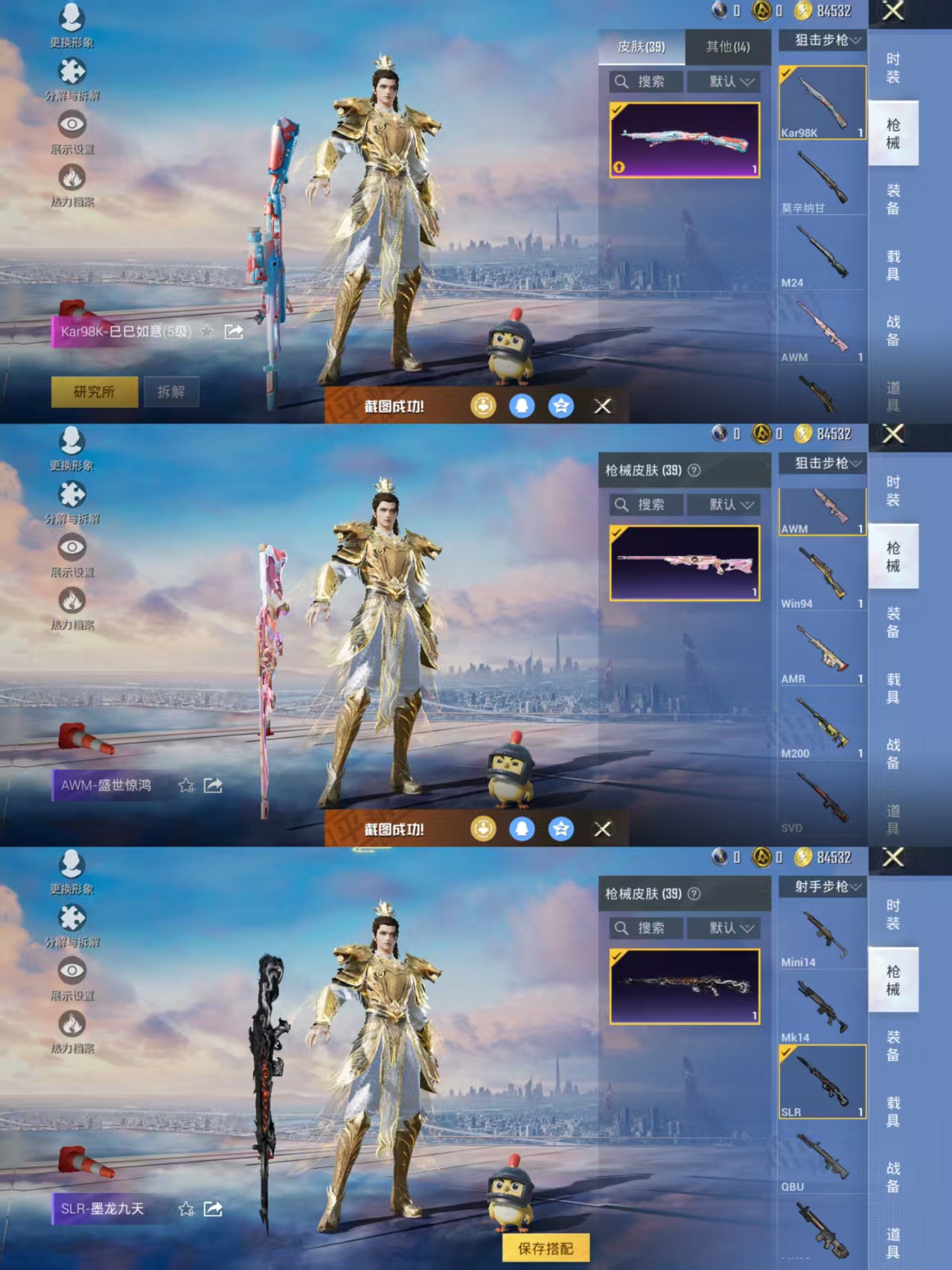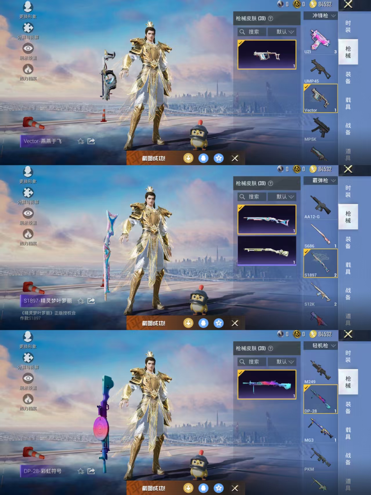 【神装-金蛇镇世1级】1粉装-1特效呛-37呛皮-16套装 【1粉装】 幻彩电音 【1特效呛】 kar98k-巳巳如意 【2头盔】 炫彩糖果头盔3级 异域银装头盔3级 【18背包】 智谋强哥背包3级 雪国风尚背包1级 巳巳如意背包3级 冷漠罗丽背包1级 炫彩糖果背包1级 炫彩糖果背包3级 炫彩糖果背包2级 诡娃娃背包2级 狂鲨锋刃背包