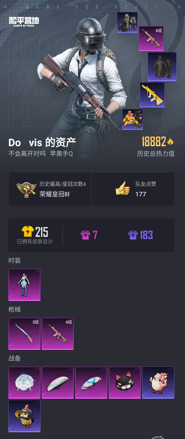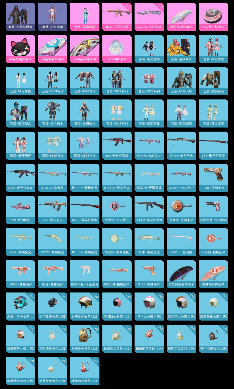 【和平精英】【lyhp20015】1粉装,2特效呛,0载具,历史最高段位:荣耀皇冠ⅲ 王牌印记-1次 热力值:18882,43套装,66呛械,59装备,32战备;套装:角色-异瞳寒姬,套装-黑色伏地魔,套装-登山爱好者,套装-竞技名士,套装-长空猛禽,套装-贵族骑装,套装-冰冻风暴,套装-怒火燎原,套装-魅力单车,套装-热血青春,套装-奇异狩猎者,套装-金耀舞者,套装-蓝调潮人,套装-甜蜜熊情侣,套装-青涩时光,套装-粉红小猪,套装-疯狂小兔子,套装-金鼠迎春,套装-鹤鸣,套装-ss10特训,套装-牛气满满,套装-原初圣火,套装-逆风勇士,套装-战术大师,套装-ss12特训,套装-耀粉歌者,套装-ss13特训,套装-吉莉礼服,套装-银月精灵,套装-香桃花海,套装-ss26特训,套装-春光漫游,套装-蝶变,套装-ss29特训,套装-雏菊兔兔,套装-萝兰蝴蝶,套装-ss30特训,套装-青团波波,套装-糖糖葫芦,套装-绒宝小鹅,套装-ss31特训,套装-ss35特训,套装-ss36特训;呛皮:6级m416-心之恋语,m416-红色方程式,m416-糯团青竹,ac-val-天降萌叽,ac-val-快闪甜心,m762-奇异狩猎者,m762-牛气冲天,m762-天降萌叽,m762-雏菊兔兔,q-原初圣火,q-彩虹符号,q-乌木金纹,m16a4-幻世战舞者,ace32-冰晶雪宝,aug-天降萌叽,akm-奇异狩猎者,scar-l-炫彩节奏,蜜獾-糖糖葫芦,m24-奇异狩猎者,3级kar98k-巳巳如意,kar98k-彩虹符号,amr-乌木金纹,awm-天降萌叽,awm-乌木金纹,m200-乌木金纹,mini14-原初圣火,mini14-炫彩节奏,mini14-马卡龙,mini14-耀粉歌者,mini14-香桃花海,mini14-雏菊兔兔,mk20-h-莲影清波,mk20-h-快闪甜心,mk20-h-星途旅人,mk20-h-糖糖葫芦,mk20-h-乌木金纹,mk12-乌木金纹,vss-香桃花海,p90-快闪甜心,p90-乌木金纹,ump45-糖糖葫芦,ump45-绒宝小鹅,汤姆逊-奇异狩猎者,汤姆逊-乌木金纹,野牛-雏菊兔兔,spas-12-乌木金纹,s686-奇异狩猎者,s686-生命誓言,s686-千金淑猫,mg-36-薄荷星砂,m249-破晓战魂,m249-彩虹符号,m249-乌木金纹,dp-28-原初圣火,mg3-幻世战舞者,r1895-雏菊兔兔,蝎式手呛-千金淑猫,p18c-原初圣火,p18c-糖糖葫芦,沙墨之鹦-快闪甜心,撬棍-冰晶雪宝,平底锅-原初圣火,平底锅-快闪甜心,平底锅-雏菊兔兔,平底锅-糖糖葫芦,破片手留单-星途旅人;降落伞:顶峰精英尾迹; 详情看图1粉装2特效呛 奇异狩猎者 异瞳寒姬 6级恋语m4