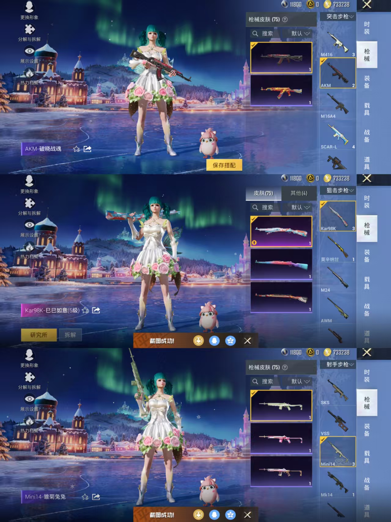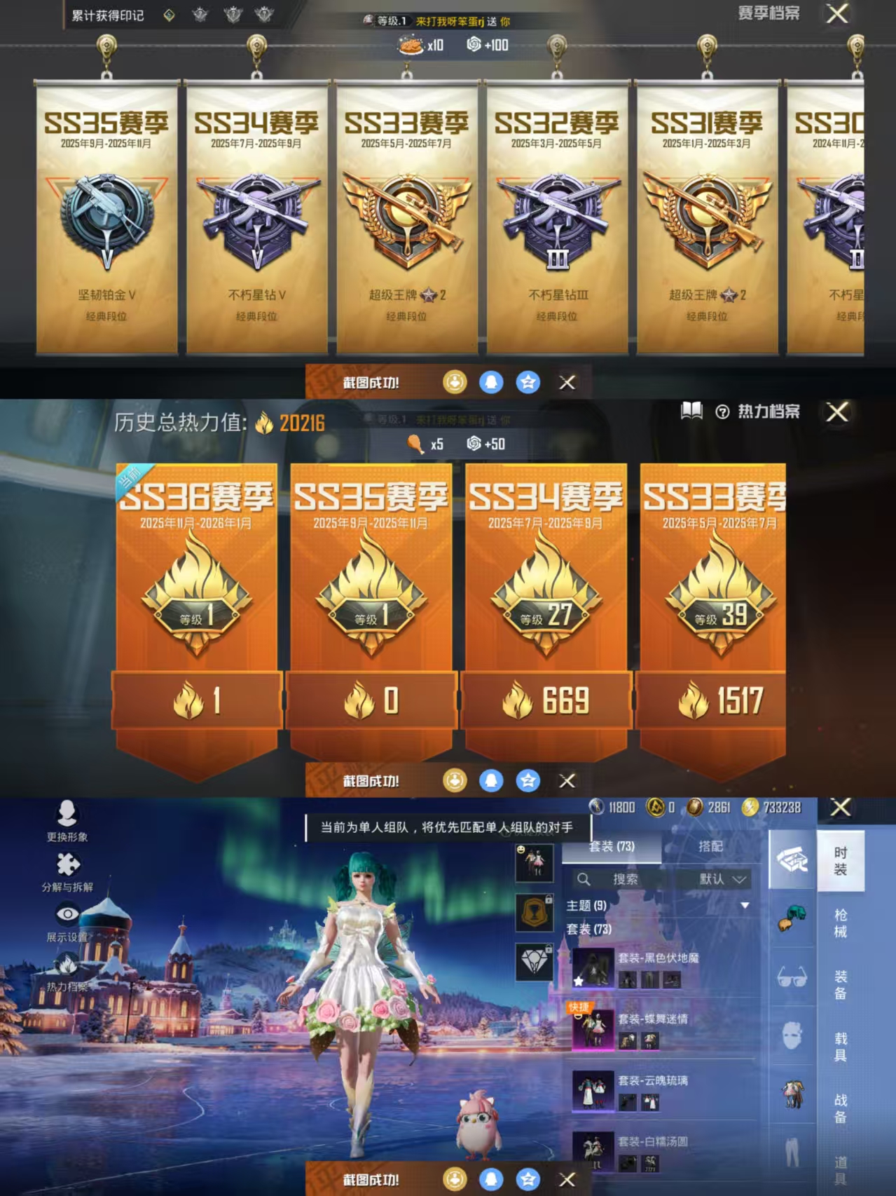 【深海小丑鱼双马尾身法号百搭】5王牌印记-1粉装-1特效呛-75呛皮-73套装 【1粉装】 蝶舞迷情 【1特效呛】 kar98k-巳巳如意 【1飞行器】 破刃行动尾迹 【4头盔】 雏菊兔兔头盔3级 龙的传人头盔3级 炫光之旅头盔3级 异域银装头盔3级 【33背包】 蝶变背包3级 巳巳如意背包3级 玉兔迎春背包1级 炫光之旅背包3级 海盐豹豹背包1级 炫光之旅