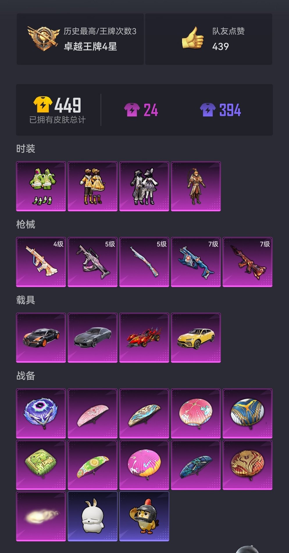 可二次实名【满级m4风花雪月4载具4粉装5特效呛】 苹果v区-46411热力值-3印记-72套装-140呛皮 【4载具】 兰博轿车灰色 兰博suv黄色 焰龙咆哮 布加迪威龙律动橙【4粉装】 恐龙拽拽 齐天大圣 黄伞悠悠 黑伞漫漫【5特效呛】 m416-风花雪月7级 vect-环太平洋7级 kar98k-巳巳如意5级 aug-暖羊咩咩4级 groza-镜光银凌5级【107热门】 军刀雅典娜 英勇保护者 团圆交子 瑞龙福将 豚鼠丹丹 m762-风花雪月 缤纷焰火 ss25特训 mk47-洛神天依 kar98k-红伞翩翩 awm-不夜海上花 akm-环太平洋 groza-田园牧歌 groza-恐龙拽拽 m762-天降萌叽 m762-彩虹符号 mk47-乌木金纹 dbs-彩虹符号 m249-彩虹符号 akm-虎虎生威 m416-暗夜行者 m416-蓝色火焰 groza-异彩先驱 groza-蓝莓炮弹 groza-彩虹符号 异彩先驱 虚音幻奏 甜心亚梦 甜蜜熊情侣 霓虹极客 灰色格斗者 淡雅花蕊 m762-瑞龙福将 恋语绒绒 怀庆长公主 ss18特训 ss17特训 ss19特训 蓝冰羽 ss29特训 ss30特训 青团波波 鱼渊荷华 糖糖葫芦 pkm-啾咪啾咪 m16a4-冰河战士 燕燕于飞 ss31特训 r1895-镭金极速 ss32特训 巳巳如意 紫幽梦 智谋强哥 战术大师 撬棍-炽纹蛇影 平底锅-许七安 awm-恐龙拽拽 mk20-h-星途旅人 mini14-炫彩节奏 短管霰弹-竹节火铳 撬棍-环太平洋 平底锅-空投萌叽 平底锅-瑞龙福将 mg3-乌木金纹 平底锅-异彩先驱 pkm-紫幽梦 平底锅-飞驰魅影 mk14-冰河战士 kar98k-顶峰精英 mini14-香桃花海 破片手留单-巳巳如意 平底锅-甜心亚梦 mk14-紫幽梦 scar-l-星途旅人 s1897-紫幽梦 蜜獾-糖糖葫芦 平底锅-糖糖葫芦 p92-紫幽梦 野牛-燕燕于飞 ump45-糖糖葫芦 星途旅人 mk20-h-糖糖葫芦 平底锅-紫幽梦 蝶变 破片手留单-星途旅人 香桃花海 spas-12-燕燕于飞 p18c-糖糖葫芦 vect-燕燕于飞 都市丽猫 蝎式手呛-燕燕于飞 街头风暴 十子怒-燕燕于飞 aks-74u-粉粉喵呜 vss-香桃花海 玩偶服-憨乐熊二 大砍刀-青龙偃月刀 撬棍-龙胆亮银呛 神秘黑猫 平底锅-田园牧歌 p90-巳巳如意 s686-巳巳如意 平底锅-惊鸿侠骨 mini14-镭金极速 暗夜行者 莫辛纳甘-镭金极速 镭金极速【2飞行器】 红色滑翔尾迹 齐天大圣飞行器【26背包】 神秘黑猫背包3级 蓝莓炮弹背包3级 瑞龙福将背包3级 异彩先驱背包3级 碧影闪光背包3级 冰河战士背包3级 蝶变背包3级 糖糖葫芦背包3级 香桃花海背包3级 临安公主背包3级 智谋强哥背包3级 异域银装背包3级 巳巳如意背包3级 恐龙拽拽背包3级 流星咚咚背包3级 红伞翩翩背包3级 飞驰魅影背包3级 甜心亚梦背包3级 暗夜玫瑰背包3级 紫翼圣骑背包3级 环太平洋背包3级 梦幻火箭背包3级 童趣迷兔背包3级 龟仙人龟壳背包3级 莲影清波背包3级 龙行天下背包3级 营地id:447130235