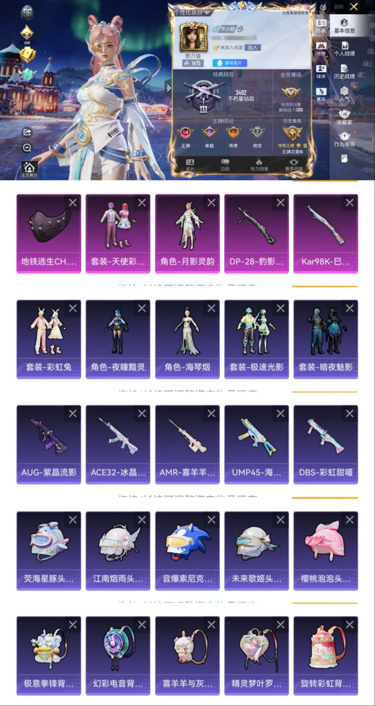 0载具-135套装-136呛皮-hm6410一体号-安卓q区-2粉装2特效2飞行器 巡查实习生iii-【可二次 地铁满天赋 2粉装 天使彩虹糖 月影灵韵 2特效呛 送王者52皮】-43288热力值-14王牌印记-135套装-136呛皮-星钻iii-游戏64级 1太阳0违规 【优质套装】: 天使彩虹糖 月影灵韵 【特效呛等级】:kar98k-巳巳如意五级kar98k-巳巳如意 【优质武器皮肤】: k