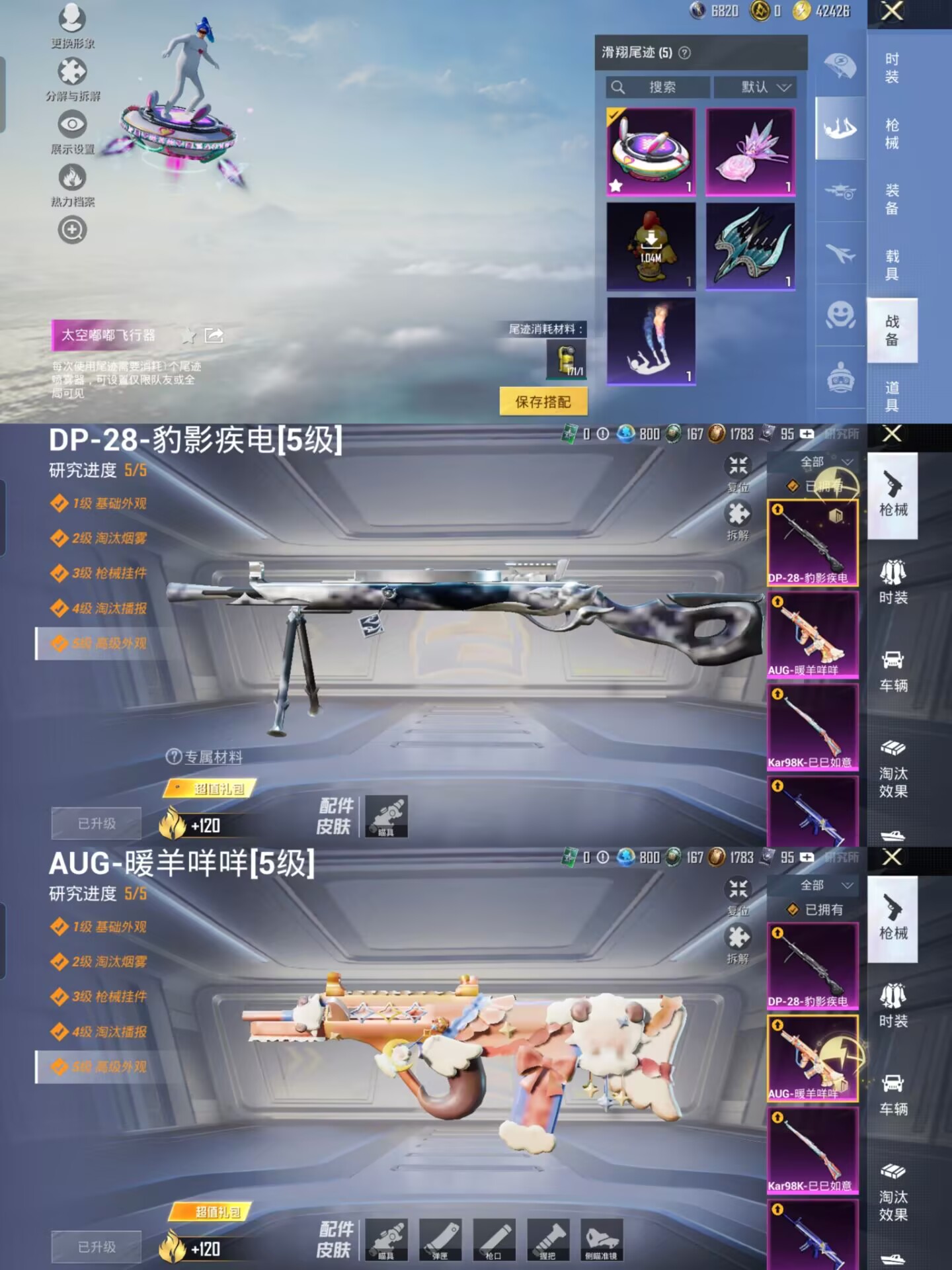 【梦幻火箭 小白龙 红眼罩 兔斯基 深海 浪漫天命】7王牌印记-2粉装-6特效呛-146呛皮-93套装-1载具 【1载具】 鬼马风驰 【2粉装】 梦幻火箭 新星烈龙(小白龙) 【6特效呛】 aug-暖羊咩咩 dp-28-豹影疾电 kar98k-巳巳如意 scar-l-青春物语 m416-五爪金龙 kar98k-伏魔团 【5飞行器】 鸡智如我飞行器 炫彩糖果飞行器 顶峰精英尾迹