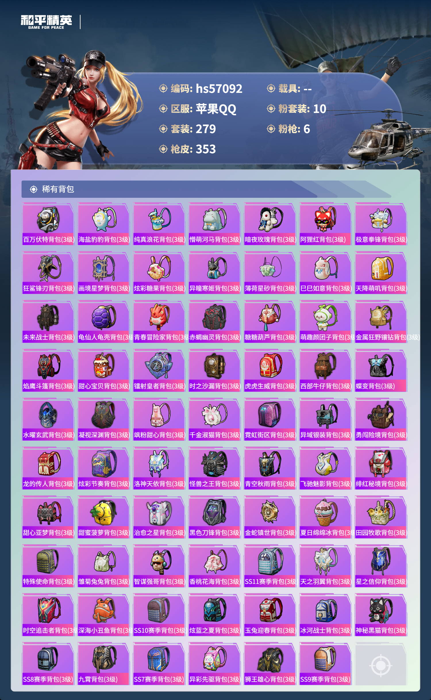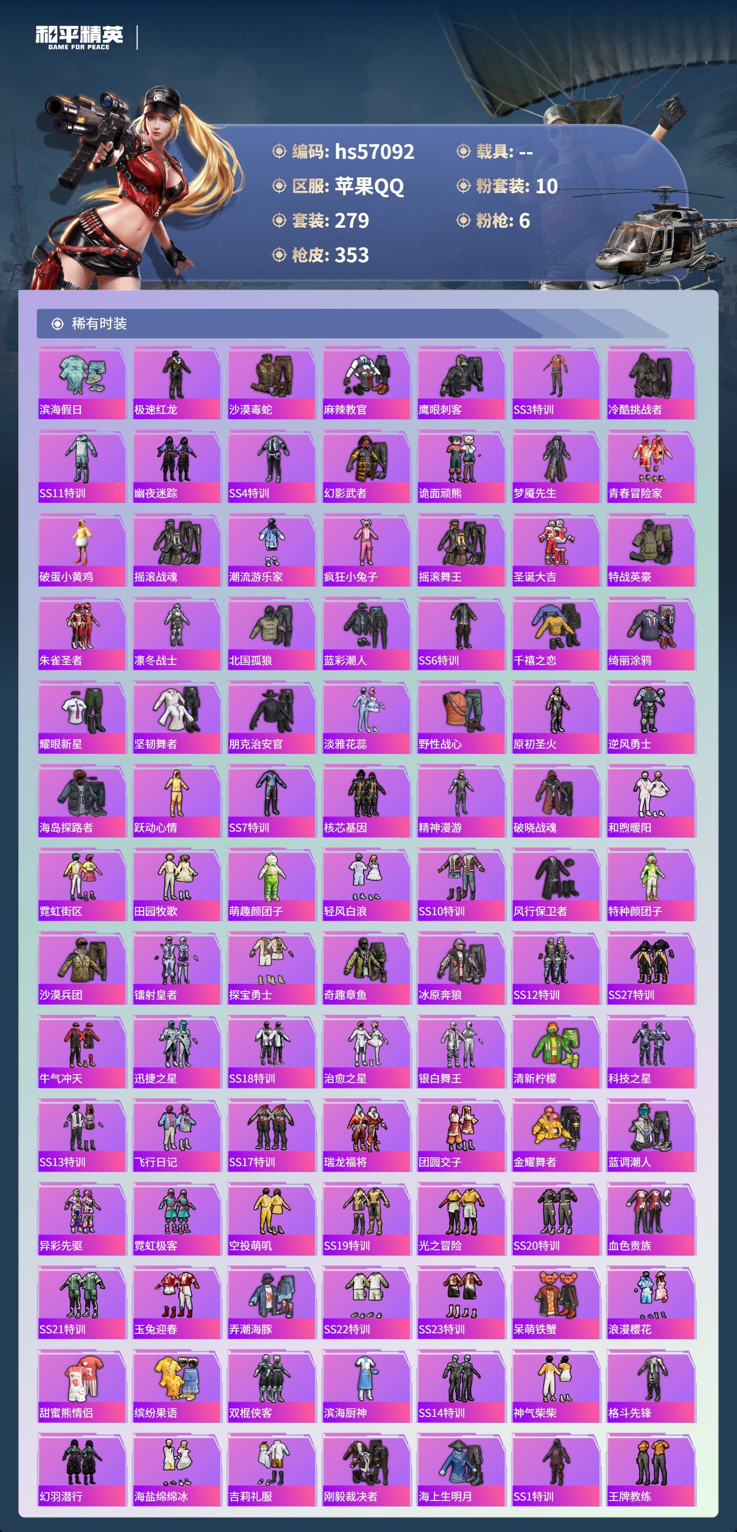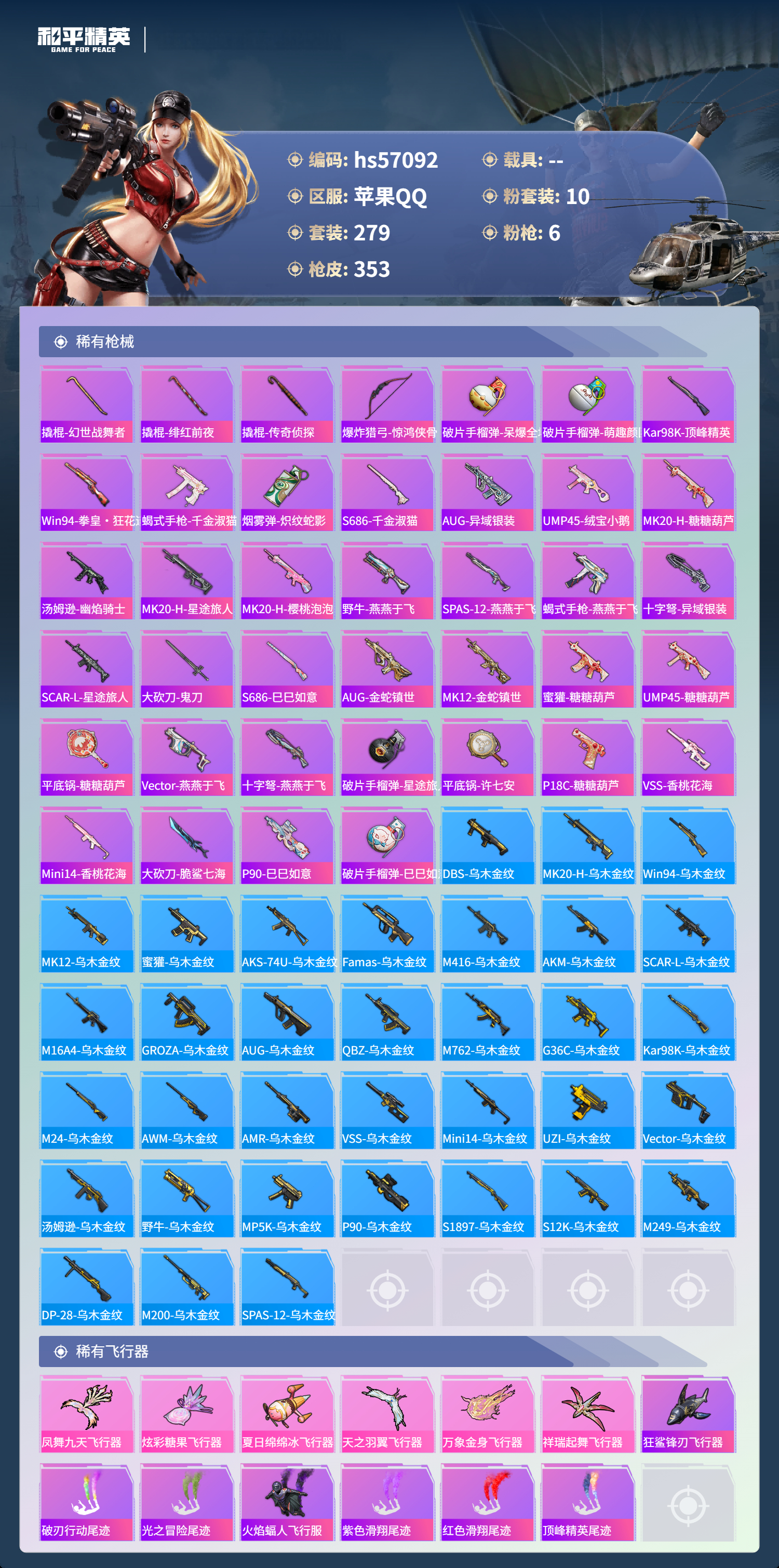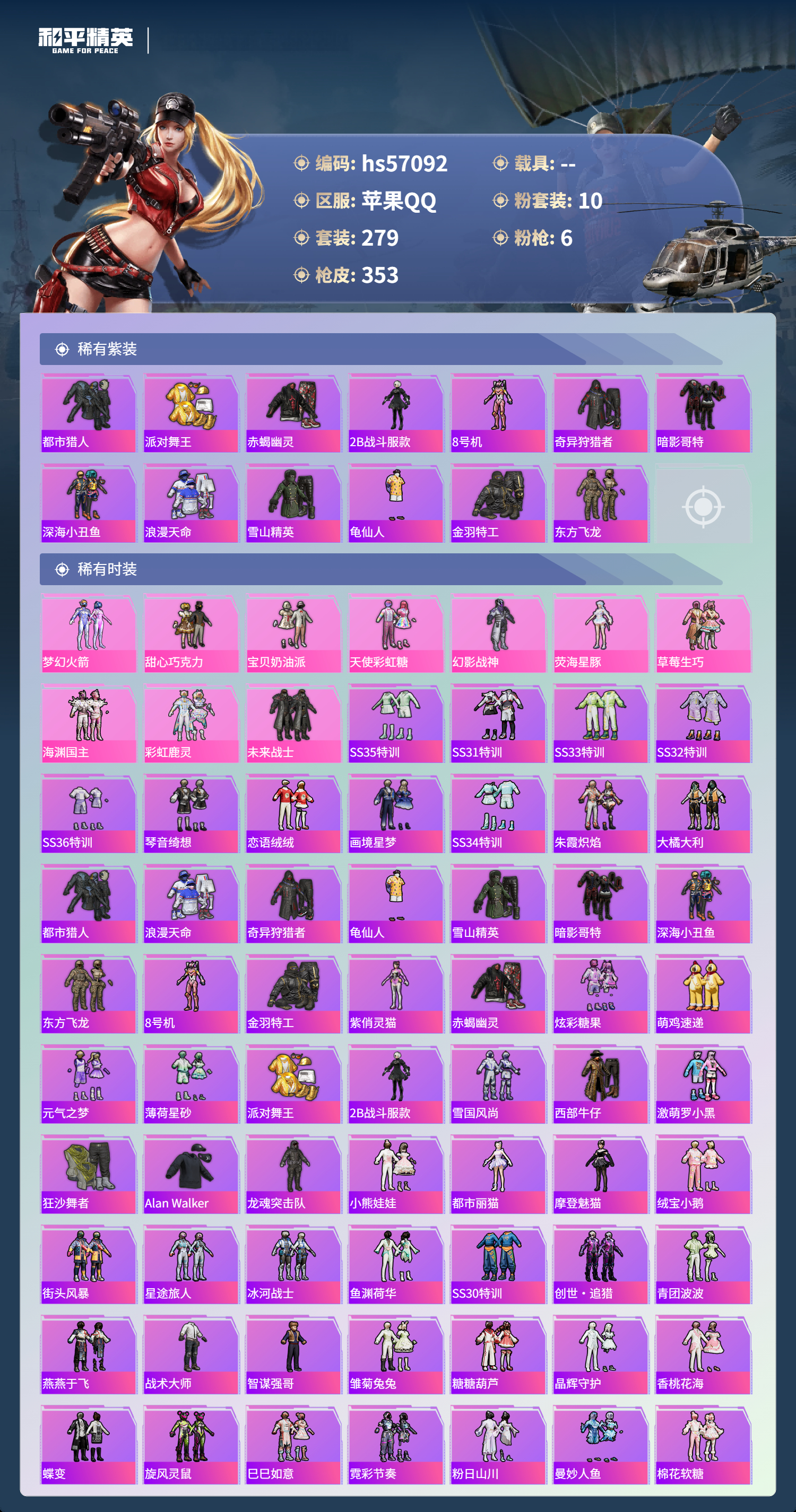 hs57092 苹果手q-19王牌印记-10粉装-6特效呛-热力值-279套装-353呛皮-2卓越印记-1传奇印记【10粉装】套装-未来战士套装-彩虹鹿灵套装-草莓生巧套装-海渊国主套装-幻影战神角色-荧海星豚套装-梦幻火箭套装-天使彩虹糖套装-甜心巧克力套装-宝贝奶油派【6特效呛】akm-甜心宝贝/7级m416-五爪金龙/7级dp-28-豹影疾电/5级m1