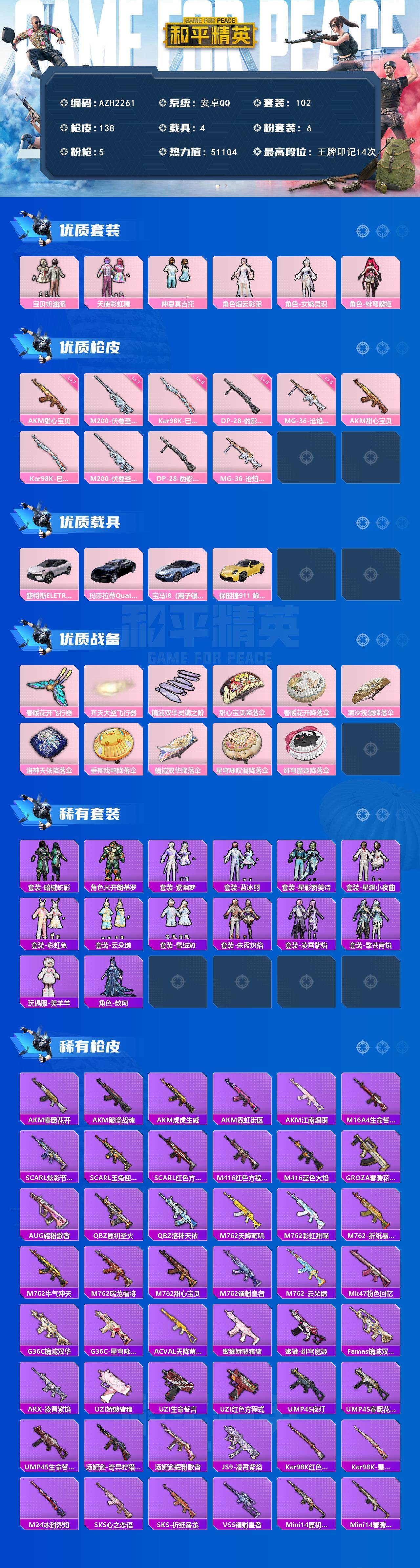 4载具-102套装-138呛皮-安卓 手q【14印记 宝贝奶油派 天使彩虹糖 仲夏莫吉托 女娲灵识 美羊羊 满级甜心宝贝akm 满级伏羲圣卦m200 4载具】6粉装-5特效呛-4载具-5粉色飞行器-51104热力值-14王牌印记-102套装-138呛皮 【粉色套装】:粉装-宝贝奶油派,粉装-天使彩虹糖,粉装-仲夏莫吉托,角色-烟云彩露,角色-女娲灵识,角色-绯穹魔姬 【粉色呛皮等级】:akm-甜心宝贝七级,kar98k-