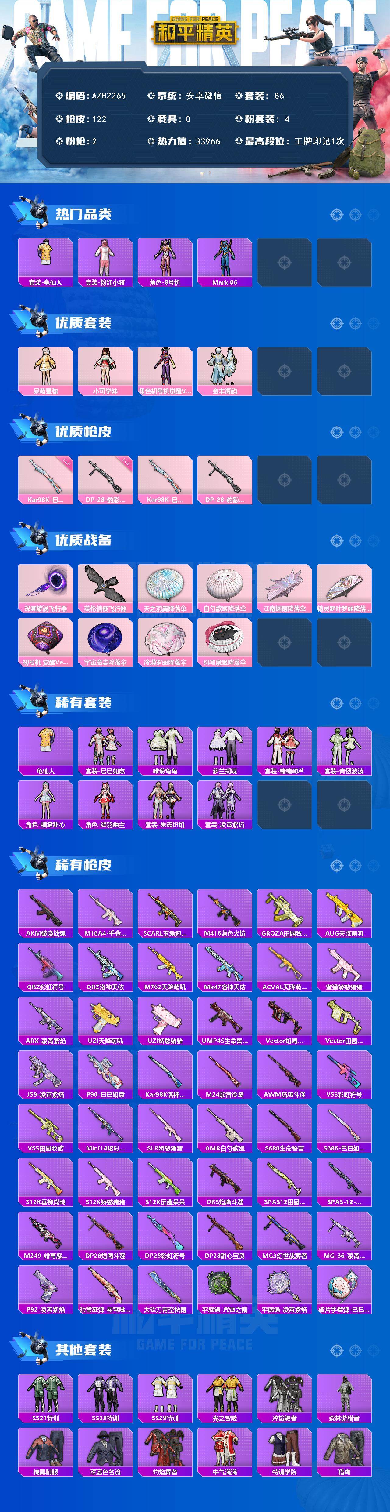 0载具-86套装-122呛皮-【azh2265】安卓 微信【小可学妹 呆萌星弥 初号机 觉醒ver. 兔兔小魔女】4粉装-2特效呛-0载具-2粉色飞行器-33966热力值-1王牌印记-86套装-122呛皮 【热门品类】:套装-龟仙人,套装-粉红小猪,角色-8号机,角色-mark.06 【粉色套装】:角色-呆萌星弥,角色-小可学妹