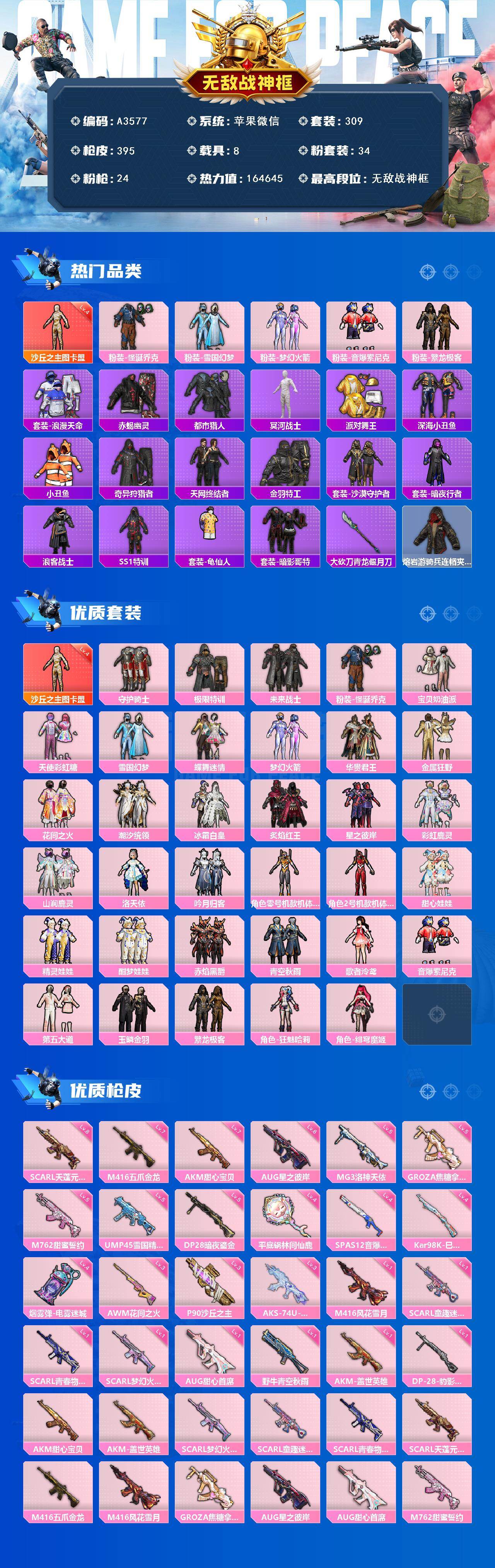 [15491194]苹果 【极品神装号 沙丘之主-图卡盟四级/怪诞乔克/雪国幻梦/都市猎人/冥河战士/派对舞王/akm-甜心宝贝七级/兰博基尼aventad svj(翡翠绿)】微信-无敌战神框-1神装-34粉装-24特效呛-8载具-8粉色飞行器-164645热力值-24王牌印记-309套装-395呛皮 【红色神装等级】:沙丘之主-图卡盟四级 【红色角色神装】:沙丘之主-图卡盟 【热门品类】:粉装-怪诞乔克,粉装-雪国幻梦,粉装-梦幻火箭,粉装-音爆索尼克,粉装-繁龙极客,套装-浪漫天命,套装-赤蝎幽灵,套装-都市猎人,套装-冥河战士,套装-派对舞王,套装-深海小丑鱼,套装-小丑鱼,套装-奇异狩猎者,套装-天网终结者,套装-金羽特工,套装-沙漠守护者,套装-暗夜行者,套装-浪客战士,套装-ss1特训,套装-龟仙人,套装-暗影哥特,大砍刀-青龙偃月刀,熔岩游骑兵连帽夹克 【粉色套装】:粉装-守护骑士,粉装-极限特训,粉装-未来战士,粉装-怪诞乔克,粉装-宝贝奶油派,粉装-天使彩虹糖,粉装-雪国幻梦,粉装-蝶舞迷情,粉装-梦幻火箭,粉装-华贵君王,粉装-金属狂野,粉装-花间之火,粉装-潮汐统领,粉装-冰霜白皇,粉装-炙焰红王,粉装-星之彼岸,粉装-彩虹鹿灵,粉装-山涧鹿灵,角色-洛天依,粉装-吟月归客,角色-零号机款机体服,角色-2号机款机体服,粉装-甜心娃娃,粉装-精灵娃娃,粉装-酣梦娃娃,粉装-赤焰黑爵,粉装-青空秋雨,角色-歌者泠鸢,粉装-音爆索尼克,粉装-第五大道,粉装-玉鳞金羽,粉装-繁龙极客,角色-狂魅哈莉,角色-绯穹魔姬 【粉色呛皮等级】:akm-甜心宝贝七级,akm-盖世英雄一级,scar-l-梦幻火箭一级,scar-l-童趣迷兔一级,scar-l-青春物语一级,scar-l-天蓬元帅八级,m416-五爪金龙七级,m416-风花雪月一级,groza-焦糖拿铁五级,aug-星之彼岸六级,aug-甜心首席一级,m762-甜蜜誓约五级,ump45-雪国精灵五级,野牛-青空秋雨一级,aks-74u-无垠阁三级,p90-沙丘之主三级,kar98k-巳巳如意四级,awm-花间之火三级,spas-12-音爆索尼克四级,dp-28-暗夜鎏金五级,dp-28-豹影疾电一级,mg3-洛神天依五