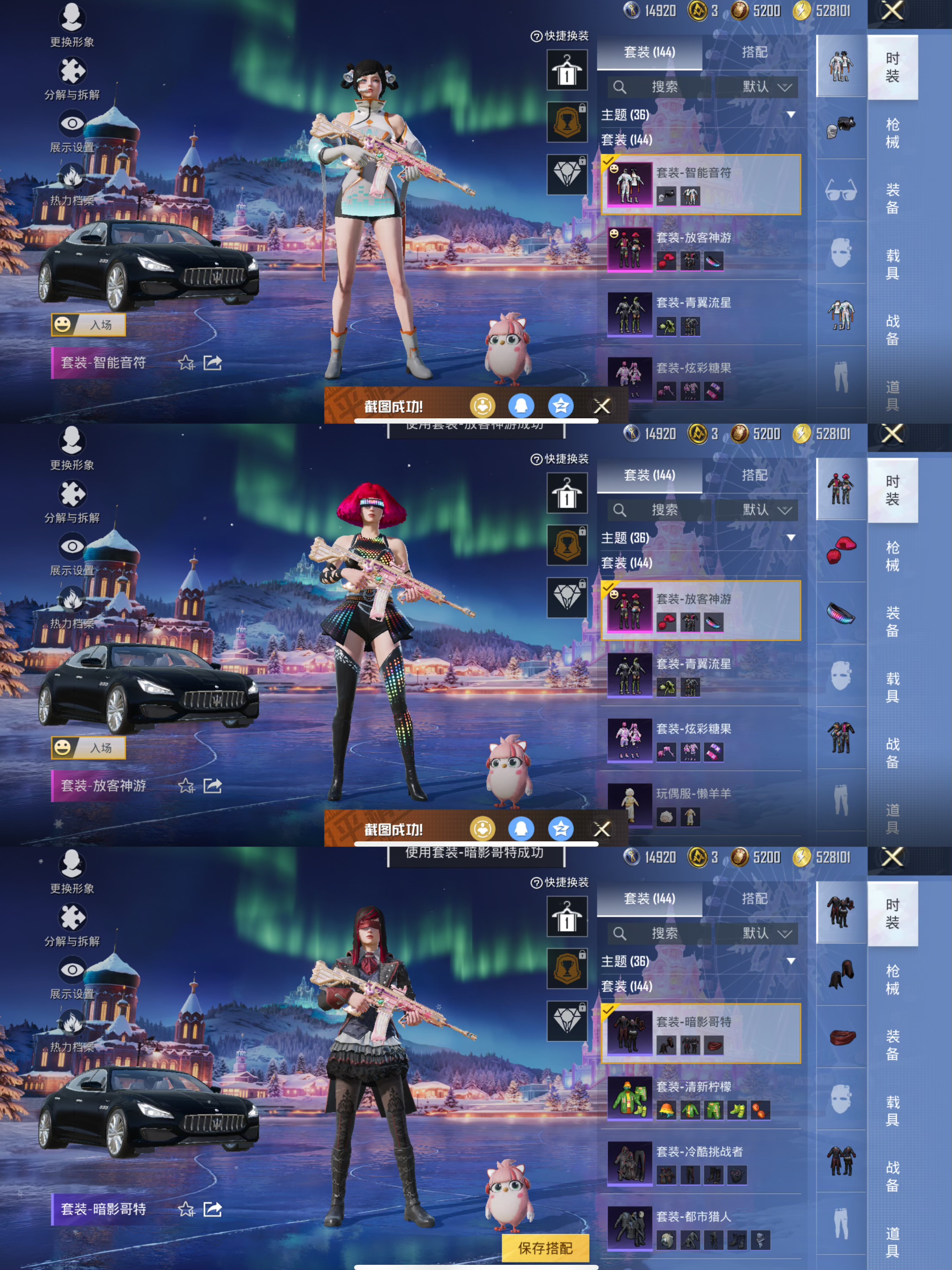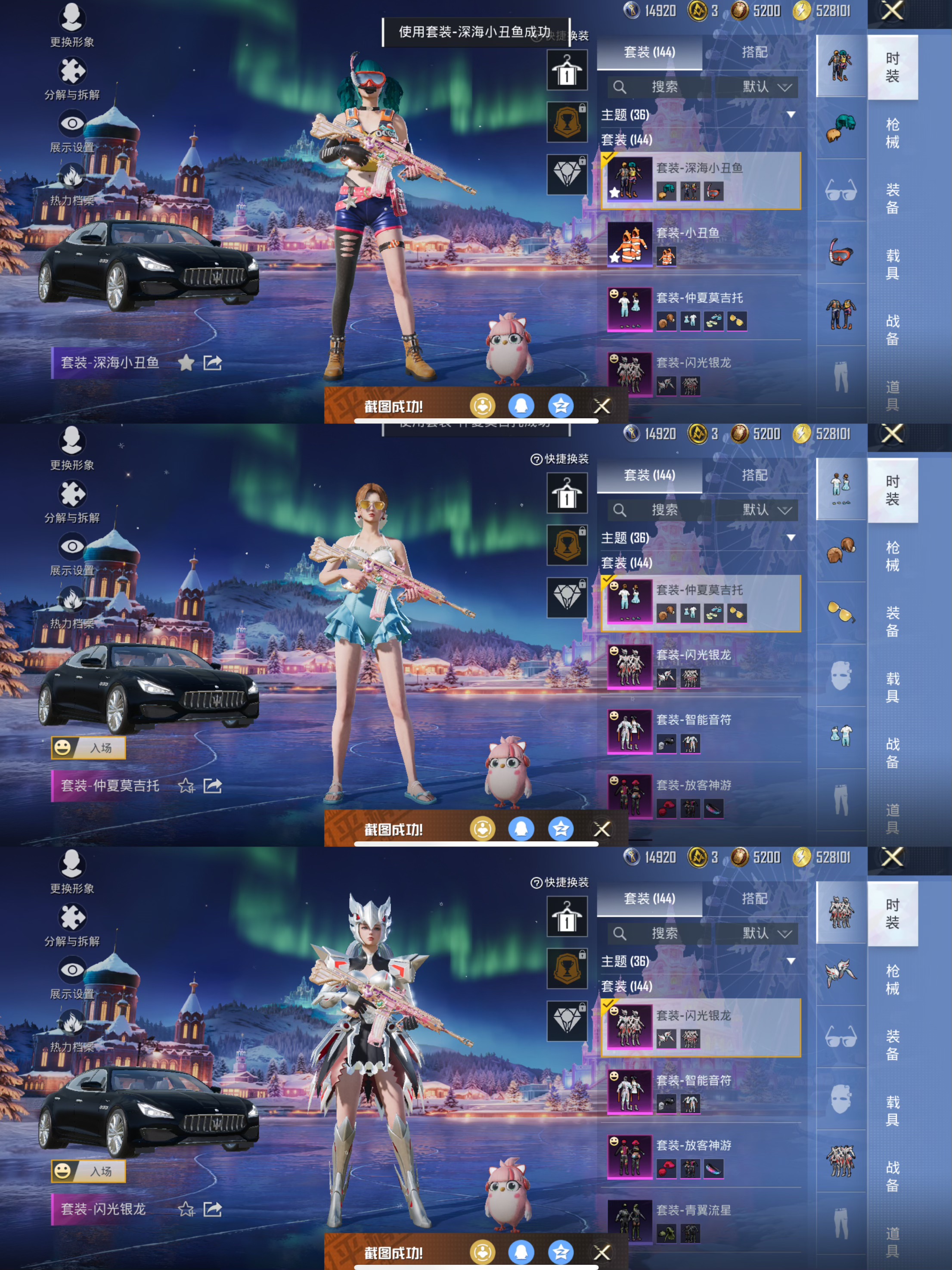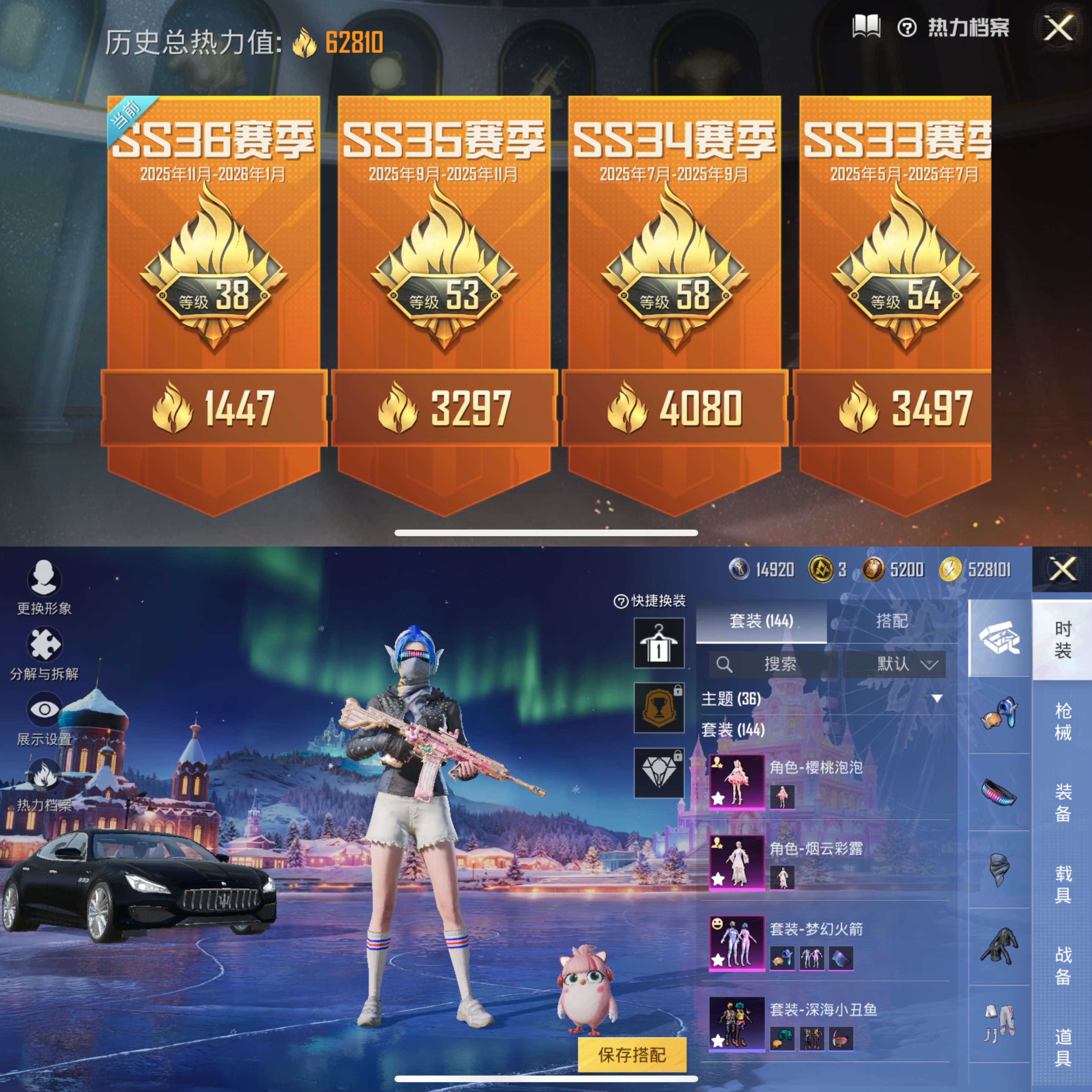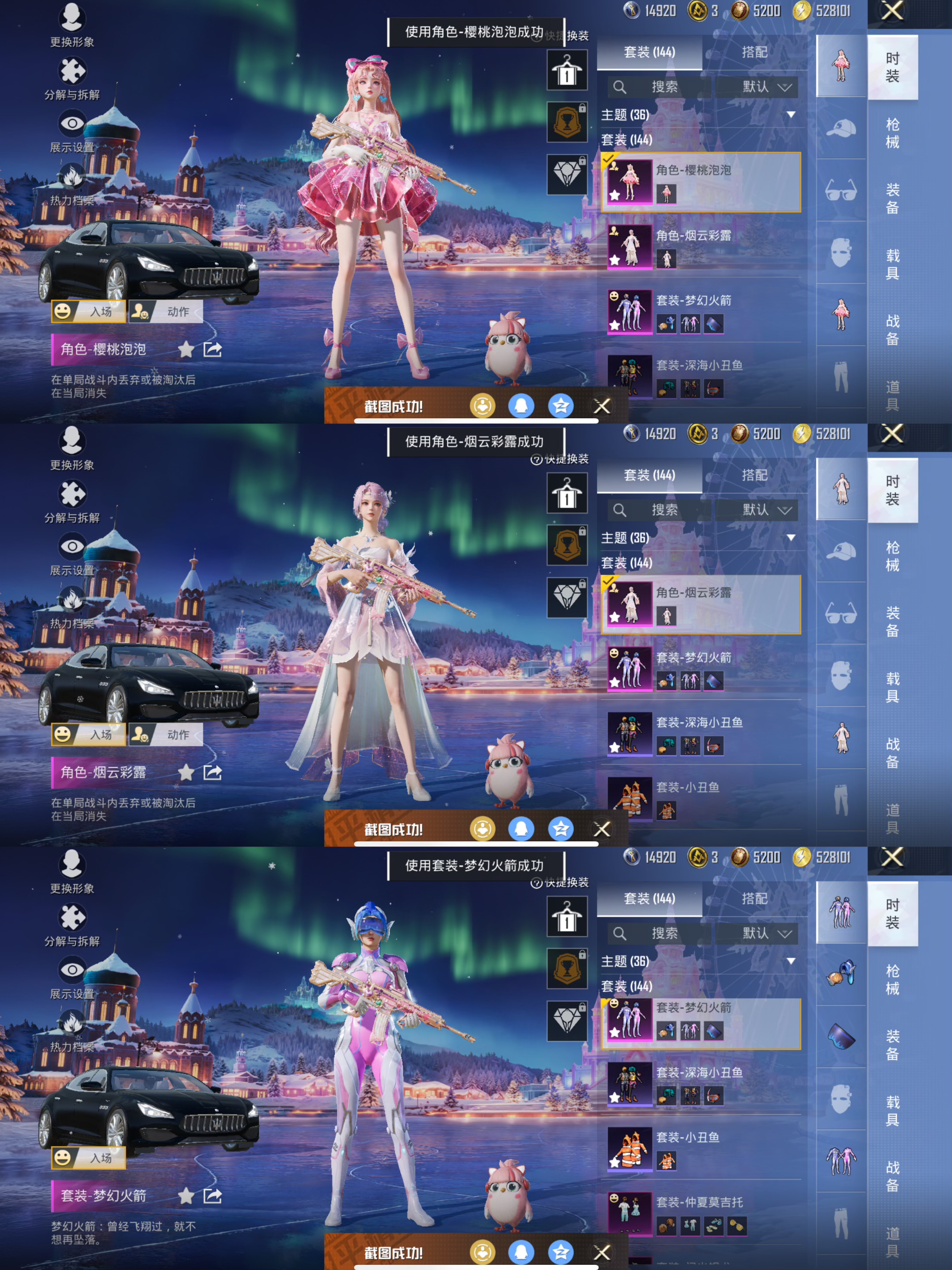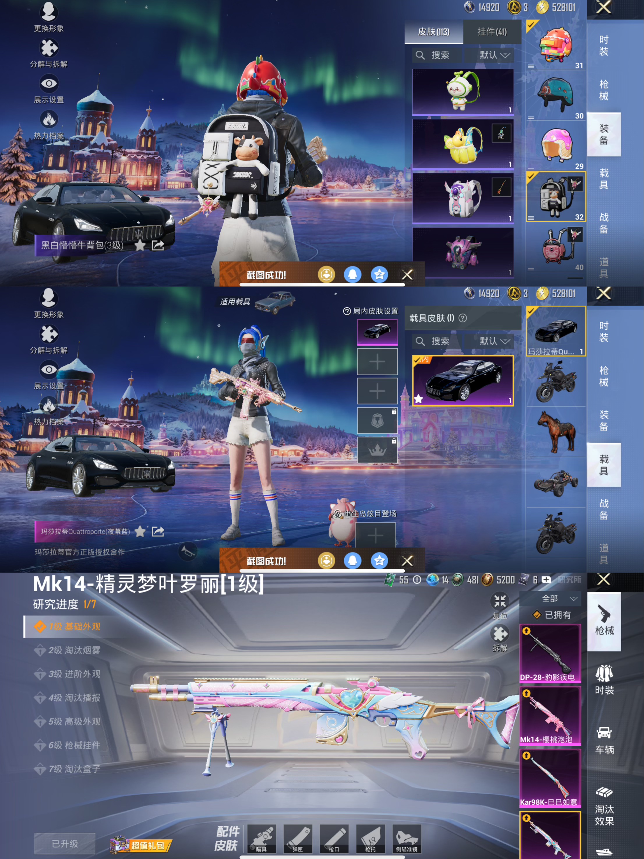 1载具-144套装-211呛皮-【男神素材身法号 梦幻火箭 红眼罩 放客神游 都市猎人 深海小丑鱼 心之恋语满级 激萌罗小黑】13王牌印记-7粉装-7特效呛-211呛皮-144套装-1载具 【1载具】 玛莎拉蒂q蓝色 【7粉装】 烟云彩露 樱桃泡泡 仲夏莫吉托 梦幻火箭 放客神游 闪光银龙 智能音符 【7特效呛】 mk14-樱桃泡泡 dp-28-豹影疾电 kar98k-巳巳如意 mk14-精灵梦叶罗丽 mk