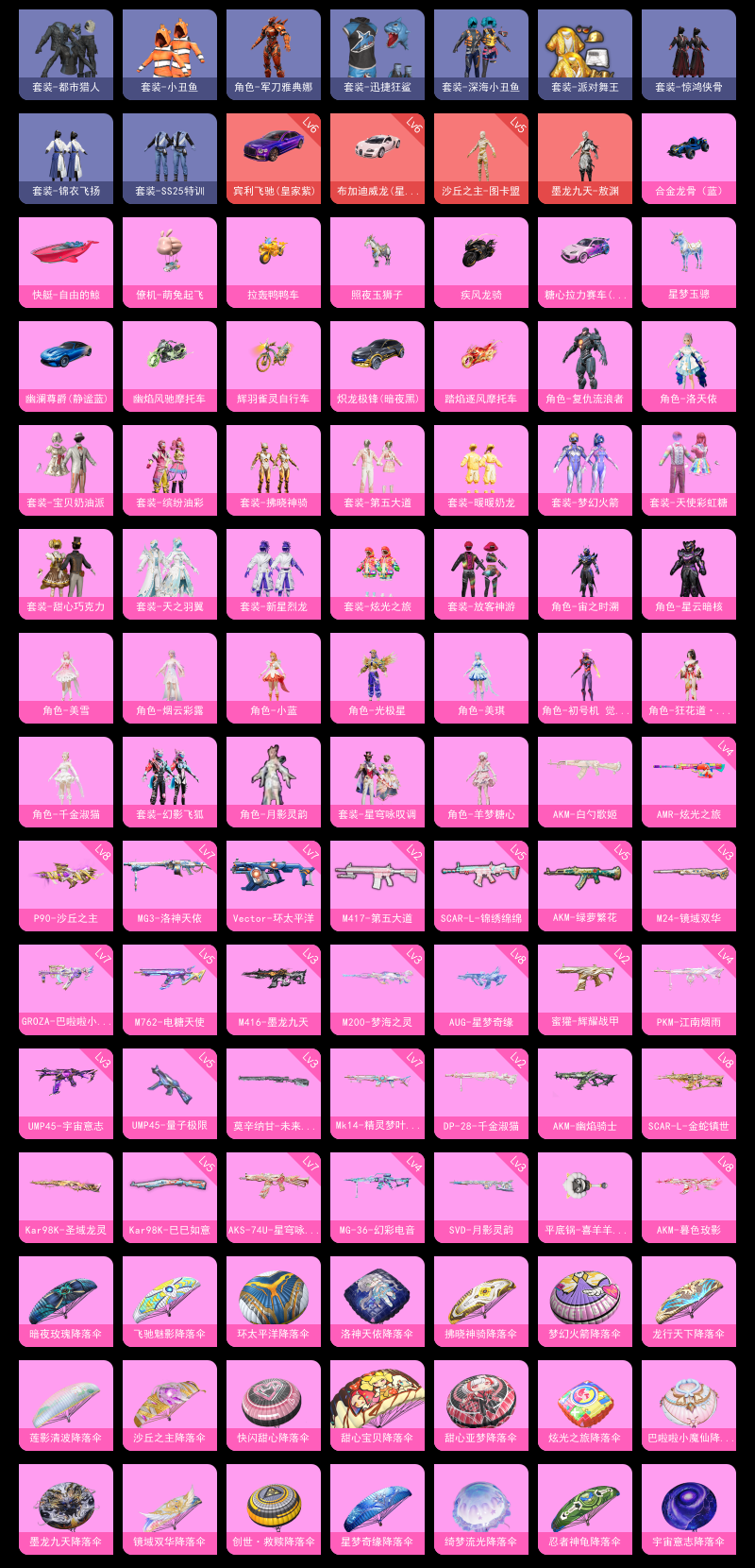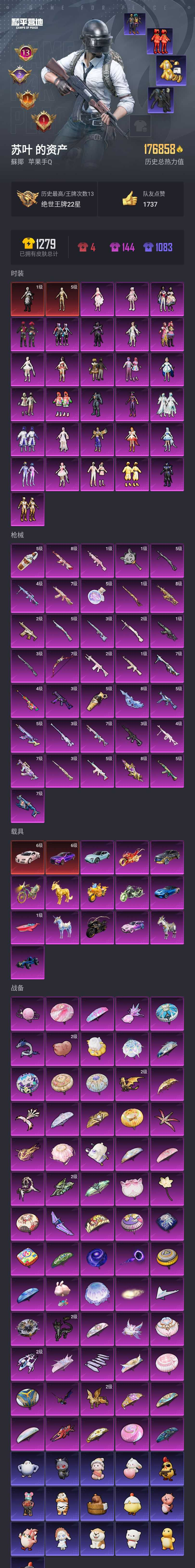 【和平精英】【lyhp20087】29粉装,36特效呛,16载具,历史最高段位:绝世王牌22星 王牌印记13次 热力值:176878,199套装,320呛械,502装备,211战备;套装:沙丘之主-图卡盟,墨龙九天-敖渊,套装-甜心巧克力,套装-宝贝奶油派,套装-天使彩虹糖,套装-梦幻火箭,套装-缤纷油彩,套装-放客神游,套装-新星烈龙,套装-天之羽翼,角色-洛天依,角色-复仇流浪者,套装-第五大道,角色-宙之时溯,角色-星云暗核,套装-拂晓神骑,套装-炫光之旅,套装-暖暖奶龙,角色-烟云彩露,角色-光极星,角色-小蓝,角色-美雪,角色-美琪,角色-初号机 觉醒ver.,角色-狂花道·不知火舞,角色-千金淑猫,套装-幻影飞狐,角色-月影灵韵,套装-星穹咏叹调,角色-羊梦糖心,角色-绝对恒星,套装-竞技名士,套装-酒红色名流,套装-黄色名流,套装-猛禽,套装-长空猛禽,套装-漫步者,套装-时尚圣诞,套装-都市猎人,套装-特战装甲,套装-战地督导,套装-春日漫步,套装-鹰眼刺客,套装-冰冻风暴,套装-街头潮人,套装-热血青春,套装-沙漠兵团,套装-派对舞王,套装-幻世战舞者,套装-弄潮海豚,套装-迅捷狂鲨,套装-呆萌铁蟹,套装-深海小丑鱼,套装-缤纷果语,套装-滨海厨神,套装-龙魂突击队,套装-格斗先锋,套装-太极红客,套装-小丑鱼,套装-破蛋小黄鸡,套装-疯狂小兔子,套装-玲珑飞花,套装-超能拳王,套装-战术大师,套装-热情海星,套装-纯真浪花,套装-ss14特训,套装-天籁歌者,套装-电音精灵,套装-吉莉礼服,套装-ss15特训,角色-英勇保护者,套装-ss17特训,套装-瑞龙福将,套装-团圆交子,角色-军刀雅典娜,套装-飞驰魅影,套装-音速流光,套装-甜心亚梦,套装-虚音幻奏,套装-红熊茄茄,套装-光之冒险,套装-绯格组合,套装-莱茵河畔,套装-香榭午后,套装-王牌教练,套装-柠萌假日,套装-华灯初上,套装-龟仙人,套装-ss25特训,套装-惊鸿侠骨,套装-锦衣飞扬,套装-香桃花海,套装-深海梦境,套装-果汁能量,套装-龙的传人,套装-冰河战士,套装-ss26特训,套装-快闪甜心,套装-春光漫游,套装-空岛之星,套装-明鸳圣池,套装-贝斯之夜,角色-忠猛周仓,套装-焰鹰斗篷,套装-幽夜迷踪,套装-幻羽潜行,套装-ss27特训,套装-恋语绒绒,套装-老实芭蕉,套装-ss28特训,角色-蝶吟花词,角色-湖雨初晴,玩偶服-卖崽青蛙,角色-拉斐尔,角色-极地流光,角色-粉雾星云,角色-白光莹,角色-情公主,角色-冰公主,角色-银尘,角色-mark.06,套装-街头风暴,套装-海盐绵绵冰,套装-蝶变,套装-创世·追猎,套装-小熊娃娃,套装-ss29特训,套装-雏菊兔兔,角色-狂花道·雅典娜,角色-狂花道·娜可露露,套装-萝兰蝴蝶,角色-紫俏灵猫,套装-先驱飞行员,套装-火种守卫者,套装-异域银装,角色-摩登魅猫,角色-都市丽猫,套装-星途旅人,套装-闪电轻猫,套装-旋风灵鼠,角色-许七安,角色-俏兔智灵,角色-临安公主,套装-ss30特训,套装-青团波波,套装-棉花软糖,角色-光矢逐梦,套装-糖糖葫芦,套装-梦域神使,套装-绒宝小鹅,套装-ss31特训,套装-鱼渊荷华,套装-燕燕于飞,套装-智谋强哥,角色-风玲,套装-紫幽梦,套装-粉恋花,套装-ss33特训,角色-猎影月神,套装-云朵鹅,套装-巳巳如意,套装-ss32特训,套装-彩虹兔,套装-青翼流星,套装-蓝冰羽,套装-顶瓜瓜,套装-雪绒豹,套装-狂鲨锋刃,套装-大橘大利,套装-极速光影,套装-星渊小夜曲,套装-霓虹热舞,套装-炫彩糖果,套装-星影赞美诗,玩偶服-懒羊羊,玩偶服-喜羊羊,玩偶服-美羊羊,套装-元气之梦,套装-ss34特训,套装-擎苍青焰,套装-朱霞炽焰,套装-凌霄紫焰,套装-薄荷星砂,套装-ss35特训,套装-午间小调,套装-秘语星愿,套装-风迹短诗,套装-琴音绮想,套装-粉黛兰香,角色-超感刻度,套装-画境星梦,套装-书海巡游,角色-甜心蒙太奇,套装-阳光菠萝,套装-ss36特训,套装-雪国风尚,套装-绿头鱼,套装-萌鸡速递;呛皮:2级蜜獾-辉耀战甲,蜜獾-天降萌叽,蜜獾-精灵梦叶罗丽,蜜獾-糖糖葫芦,蜜獾-风迹短诗,蜜獾-冰澜龙吟,蜜獾-乌木金纹,famas-墨龙九天,famas-镜域双华,famas-霓彩脉冲,famas-乌木金纹,m16a4-甜心亚梦,m16a4-冰河战士,m16a4-千金淑猫,1级akm-白勺歌姬,5级akm-绿萝繁花,1级akm-幽焰骑士,8级akm-暮色玫影,akm-影袭,akm-春暖花开,akm-涂鸦街区,akm-虎虎生威,akm-环太平洋,akm-龙的传人,akm-江南烟雨,akm-玄冥寒域,akm-霓彩脉冲,q-洛神天依,q-飞驰魅影,q-纯真浪花,q-咆哮狼行,5级scar-l-锦绣绵绵,8级scar-l-金蛇镇世,scar-l-生命誓言,scar-l-拳皇·狂花道,scar-l-星途旅人,scar-l-青云稚梦,scar-l-海盐豹豹,5级m762-电糖天使,m762-甜心宝贝,m762-瑞龙福将,m762-彩虹符号,m762-第五大道,m762-雏菊兔兔,m762-果冻柠檬,m762-云朵鹅,8级aug-星梦奇缘,aug-甜蜜菠萝,aug-幻影战神,aug-异域银装,aug-月影灵韵,aug-金蛇镇世,aug-绝对恒星,aug-冰晶雪宝,7级groza-巴啦啦小魔仙,groza-影袭,groza-春暖花开,groza-绯红回忆,groza-海盐豹豹,g36c-镜域双华,g36c-星穹咏叹调,g36c-乌木金纹,ac-val-甜心亚梦,ac-val-乌木金纹,ac-val-快闪甜心,ac-val-梦海之灵,ac-val-宇宙意志,mk47-洛神天依,mk47-乌木金纹,mk47-炫光之旅,mk47-风迹短诗,arx-凌霄紫焰,3级m416-墨龙九天,m416-红色方程式,ace32-画境星梦,ace32-冰晶雪宝,1级kar98k-圣域龙灵,5级kar98k-巳巳如意,kar98k-影袭,kar98k-梦幻火箭,kar98k-彩虹符号,kar98k-洛神天依,kar98k-飞驰魅影,kar98k-顶峰精英,kar98k-星穹咏叹调,3级svd-月影灵韵,svd-云朵鹅,win94-瑞龙福将,win94-拳皇·狂花道,win94-乌木金纹,3级m24-镜域双华,m24-影袭,m24-幻彩电音,m24-乌木金纹,3级莫辛纳甘-未来领航者,莫辛纳甘-风迹短诗,3级m200-梦